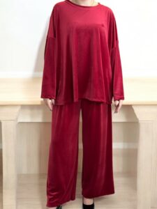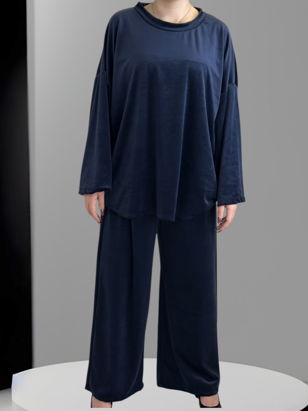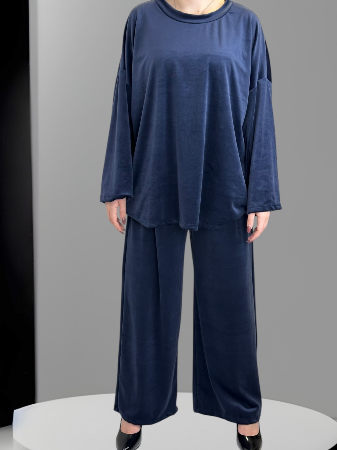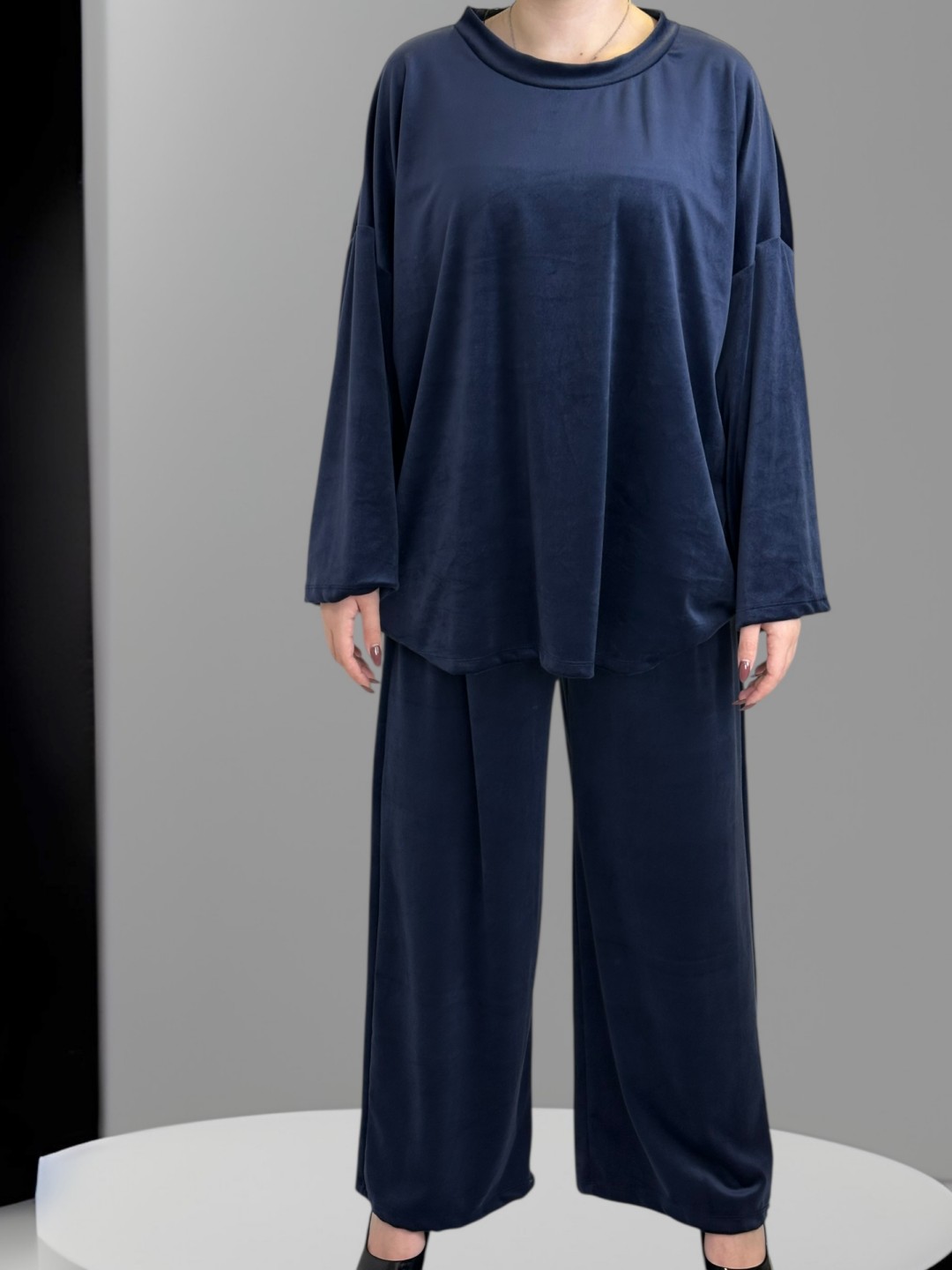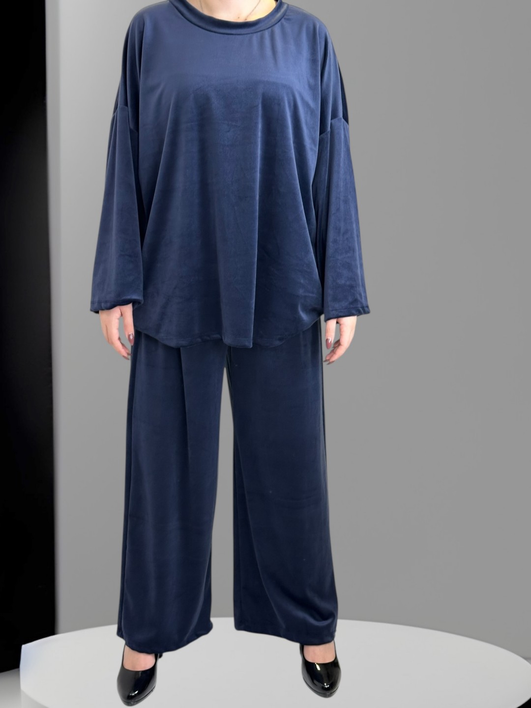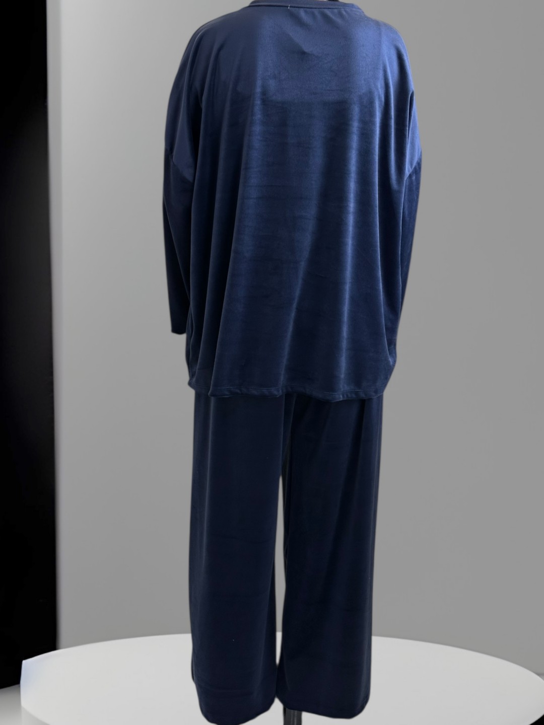 Βελούδινο Σετ με απαλή υφή plus size, για να αισθάνεσαι λαμπερή και άνετη ταυτόχρονα. Σύνθεση 94% poliester και 6% elastan για απόλυτη εφαρμογή. One size που εφαρμόζει τέλεια σε κάθε διάσταση.