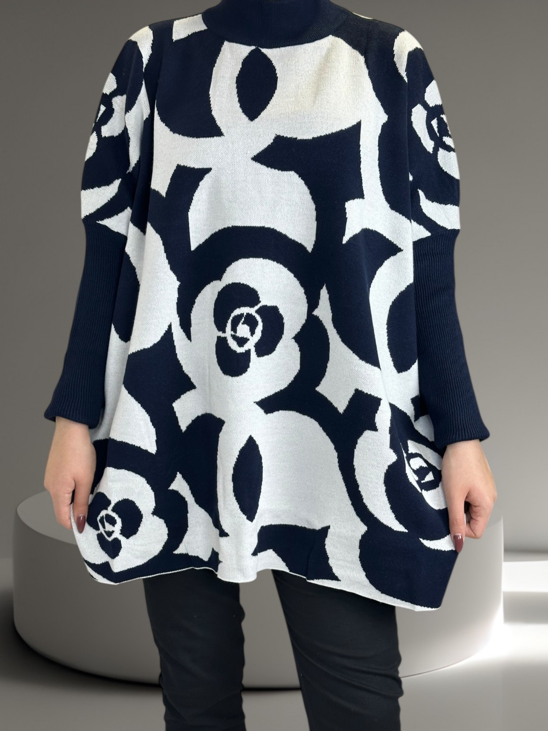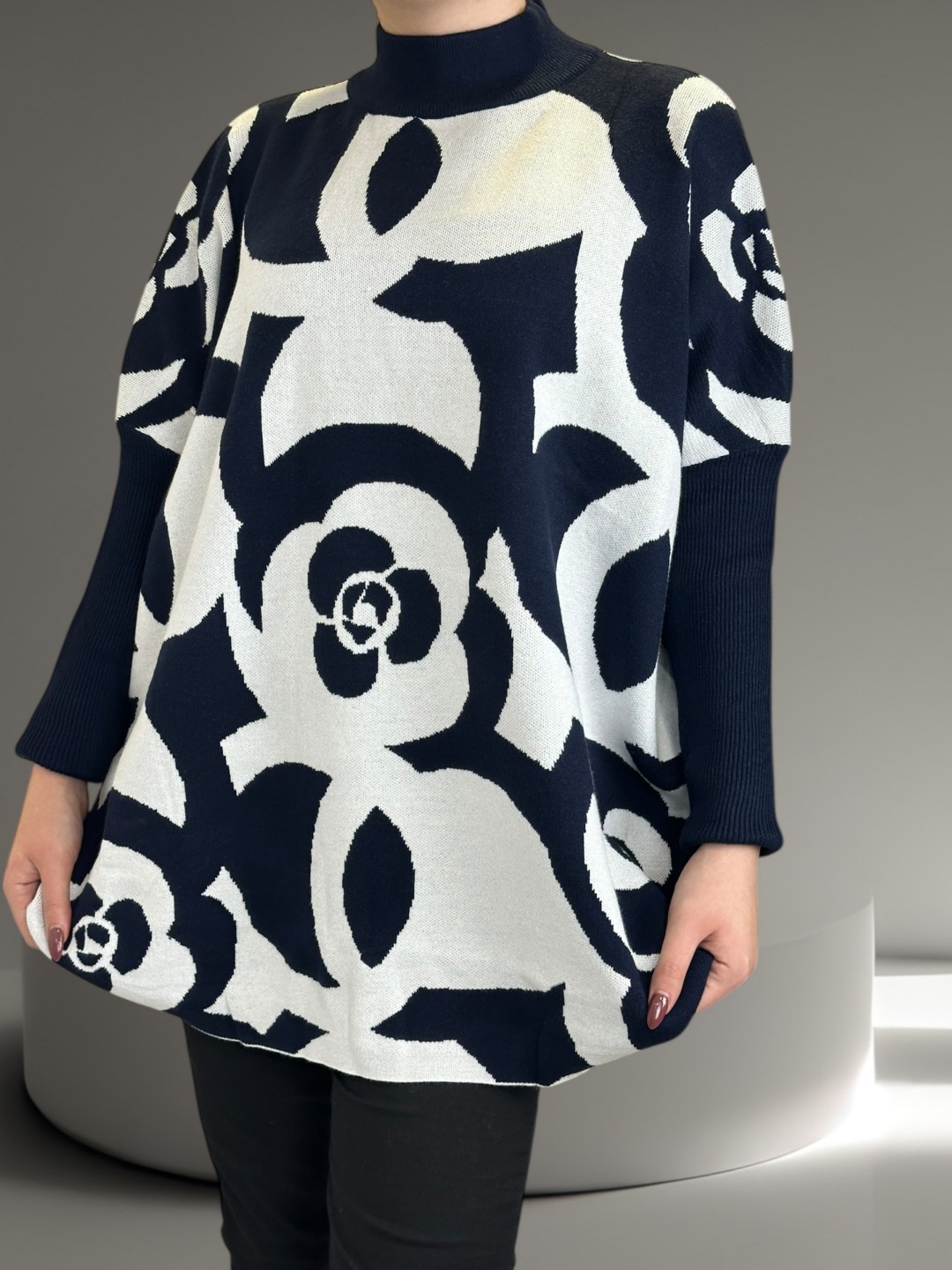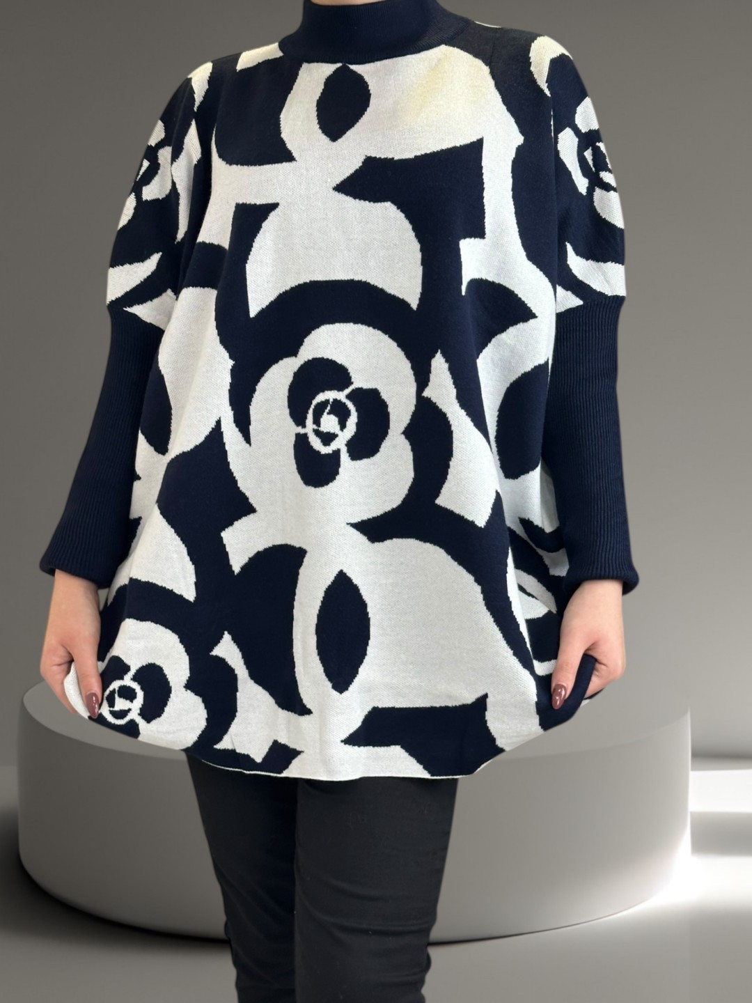 Γοητευτικό plus size πουλόβερ με εντυπωσιακά γεωμετρικά μοτίβα. Ιδανικό για μοντέρνο στυλ που τραβάει πάντα την προσοχή. Με άνετη εφαρμογή, είναι κατασκευασμένο από 30% viscoza, 40% poliamide, 20% poliester, 10% elastan, εφαρμόζει τέλεια και δίνει πανέμορφη σιλουέτα. Διατίθεται σε One size.