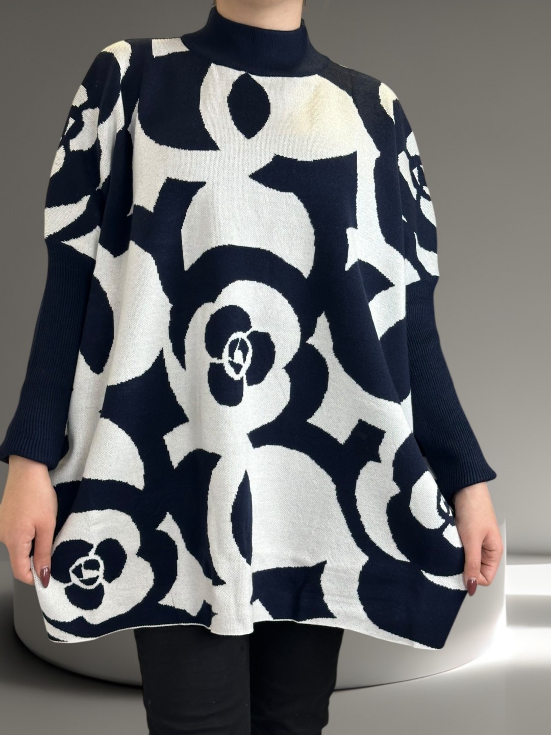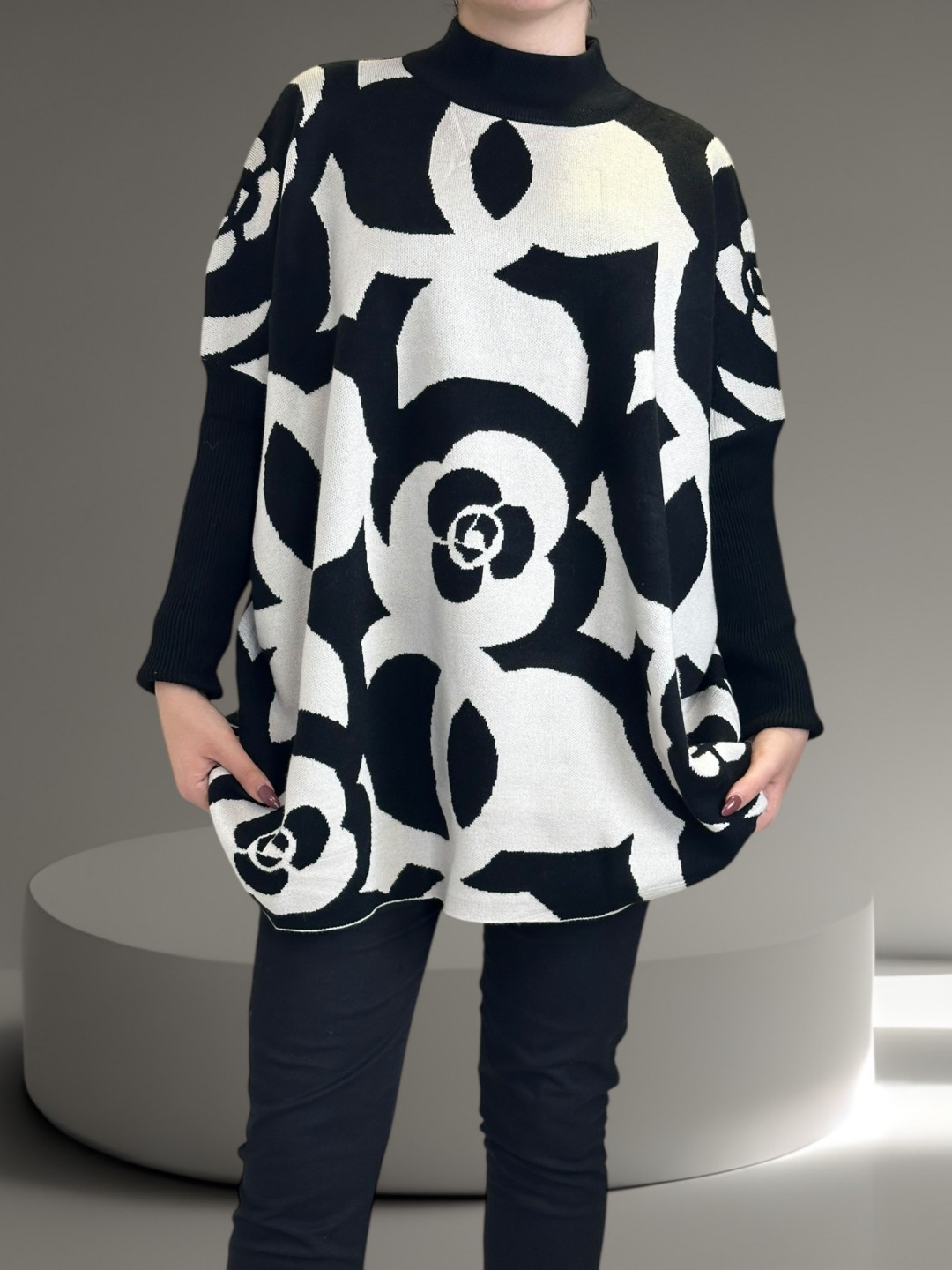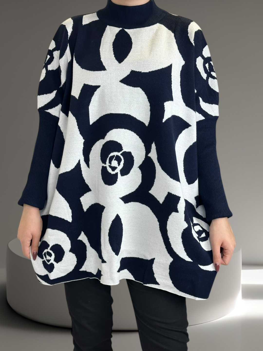 Γοητευτικό plus size πουλόβερ με εντυπωσιακά γεωμετρικά μοτίβα. Ιδανικό για μοντέρνο στυλ που τραβάει πάντα την προσοχή. Με άνετη εφαρμογή, είναι κατασκευασμένο από 30% viscoza, 40% poliamide, 20% poliester, 10% elastan, εφαρμόζει τέλεια και δίνει πανέμορφη σιλουέτα. Διατίθεται σε One size.