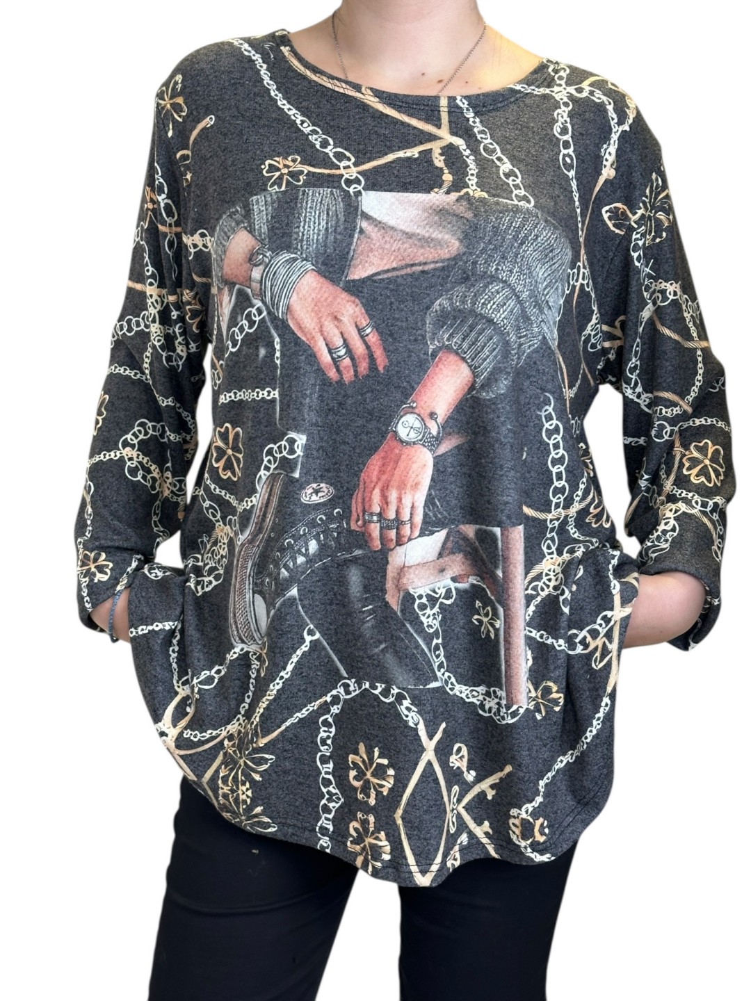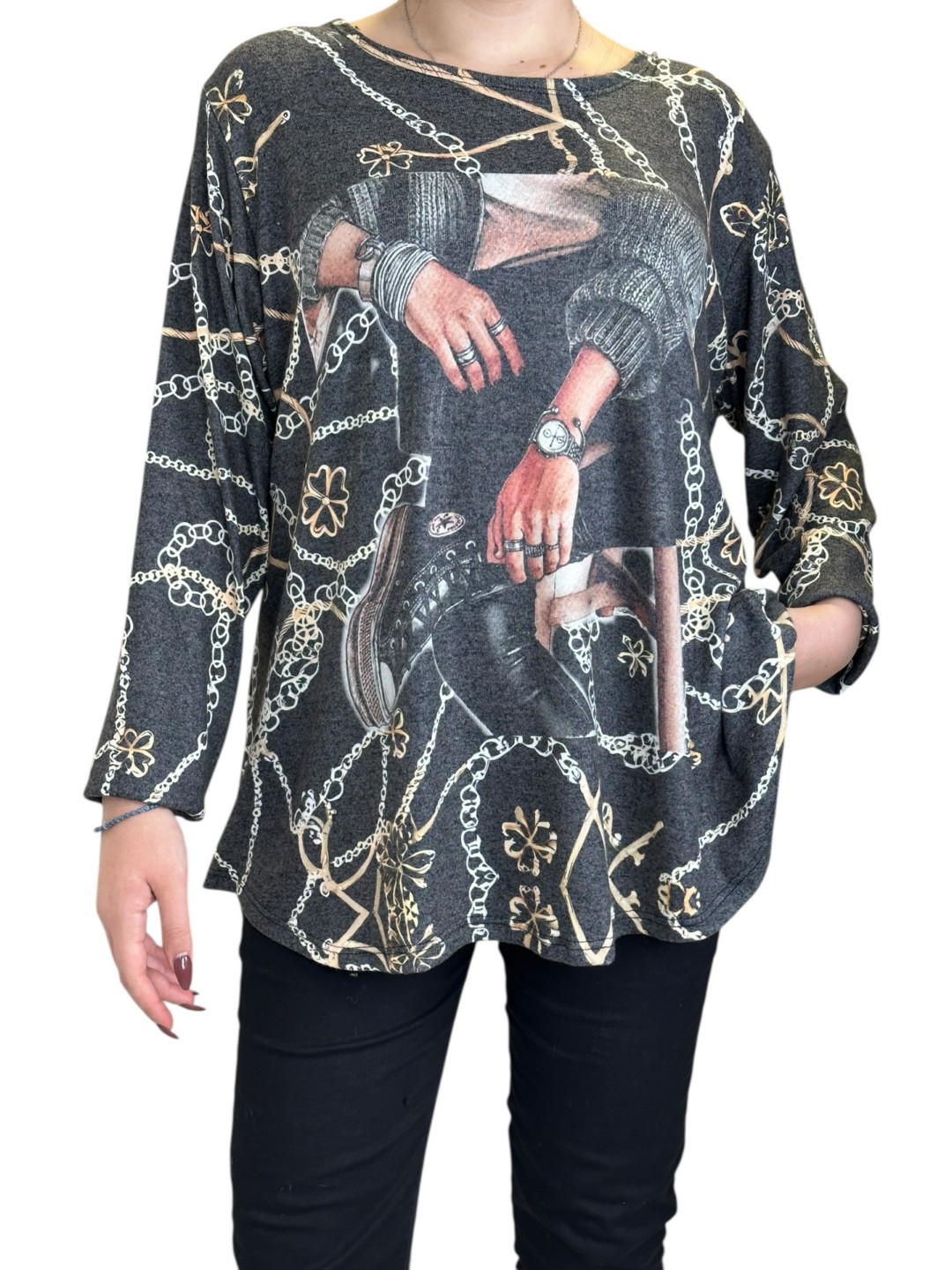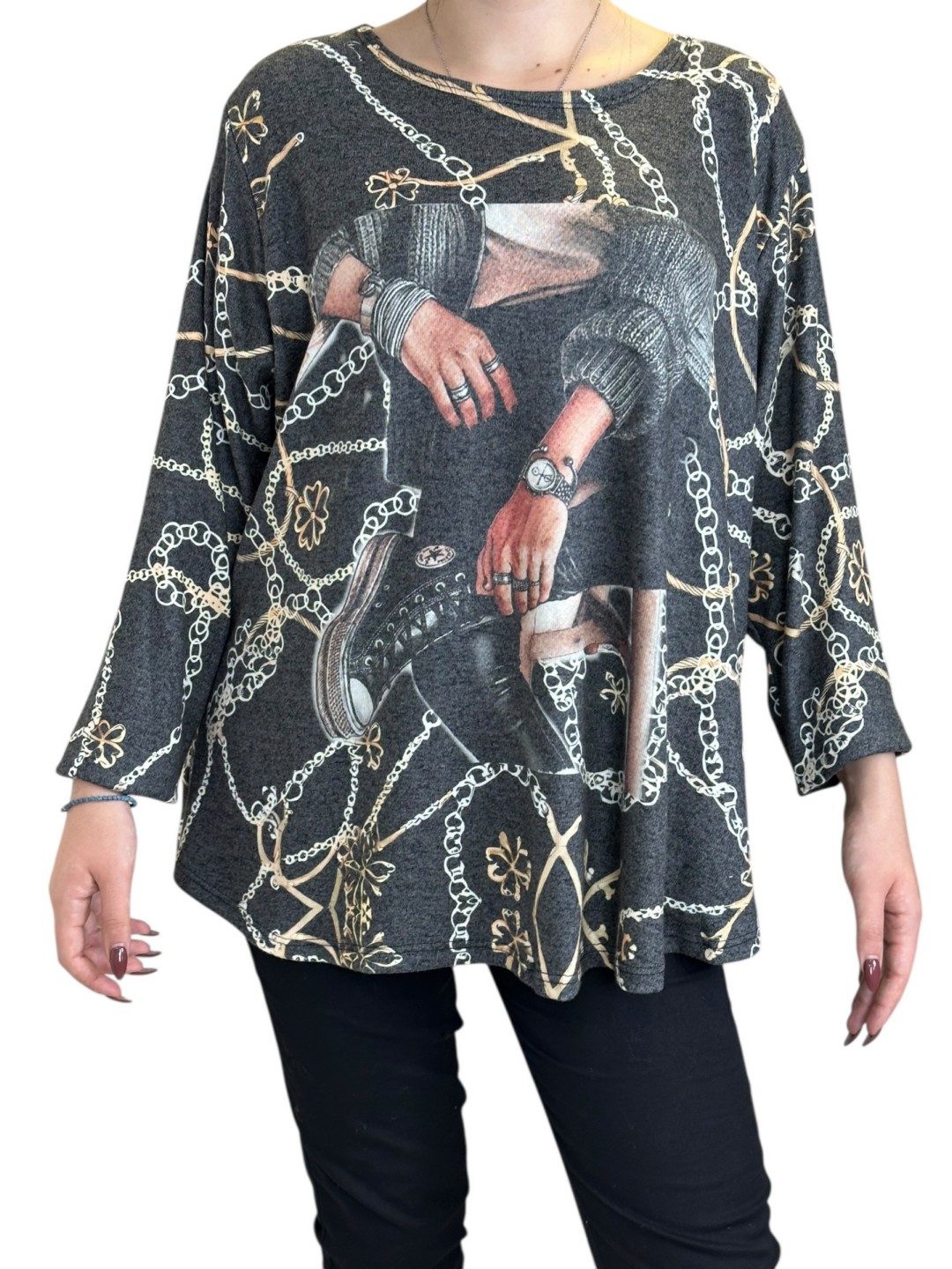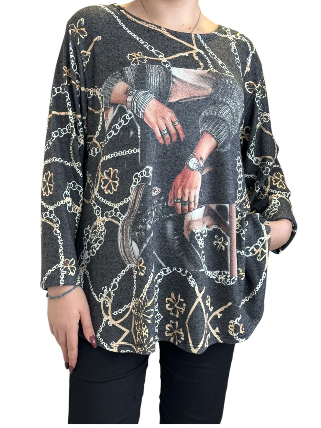 Μπλούζα plus size, κατασκευασμένη από 65% viscoze, 30% poliester και 5% elastan για άνεση και προσαρμογή σε κάθε σωματότυπο. Διαθέσιμη σε μέγεθος One size, κάνει υπέροχα σε όλες τις γυναίκες!