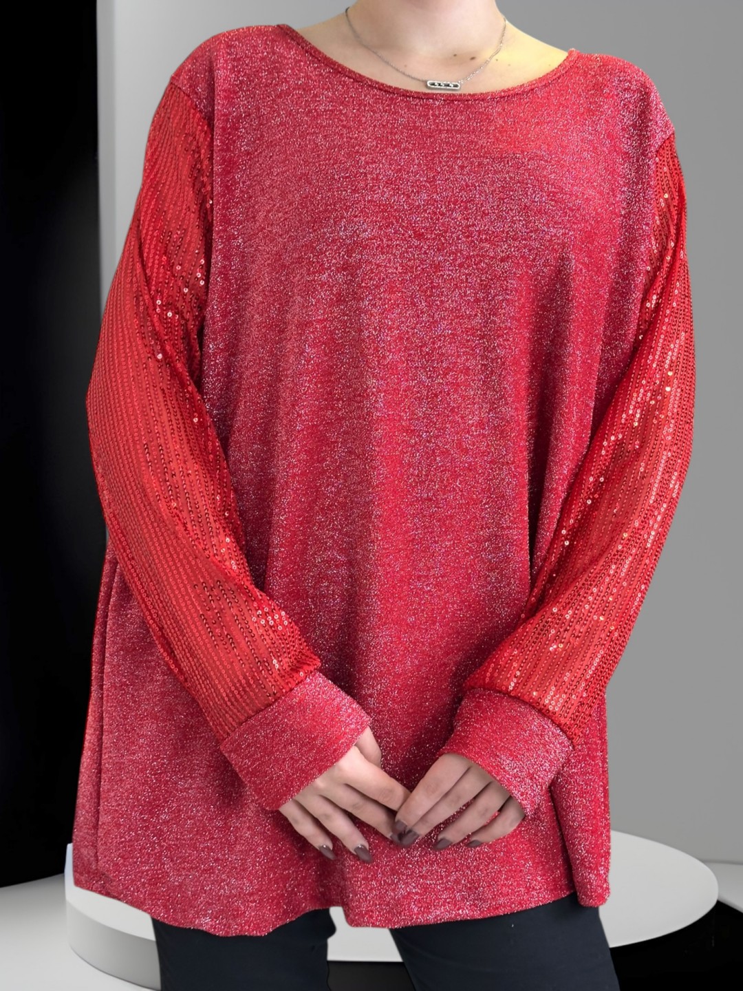 Μπλούζα Λούρεξ με Λαμπερές Παγέτες στα Μανίκια