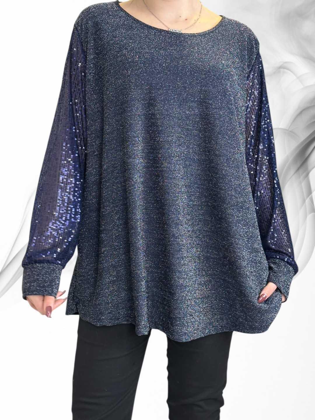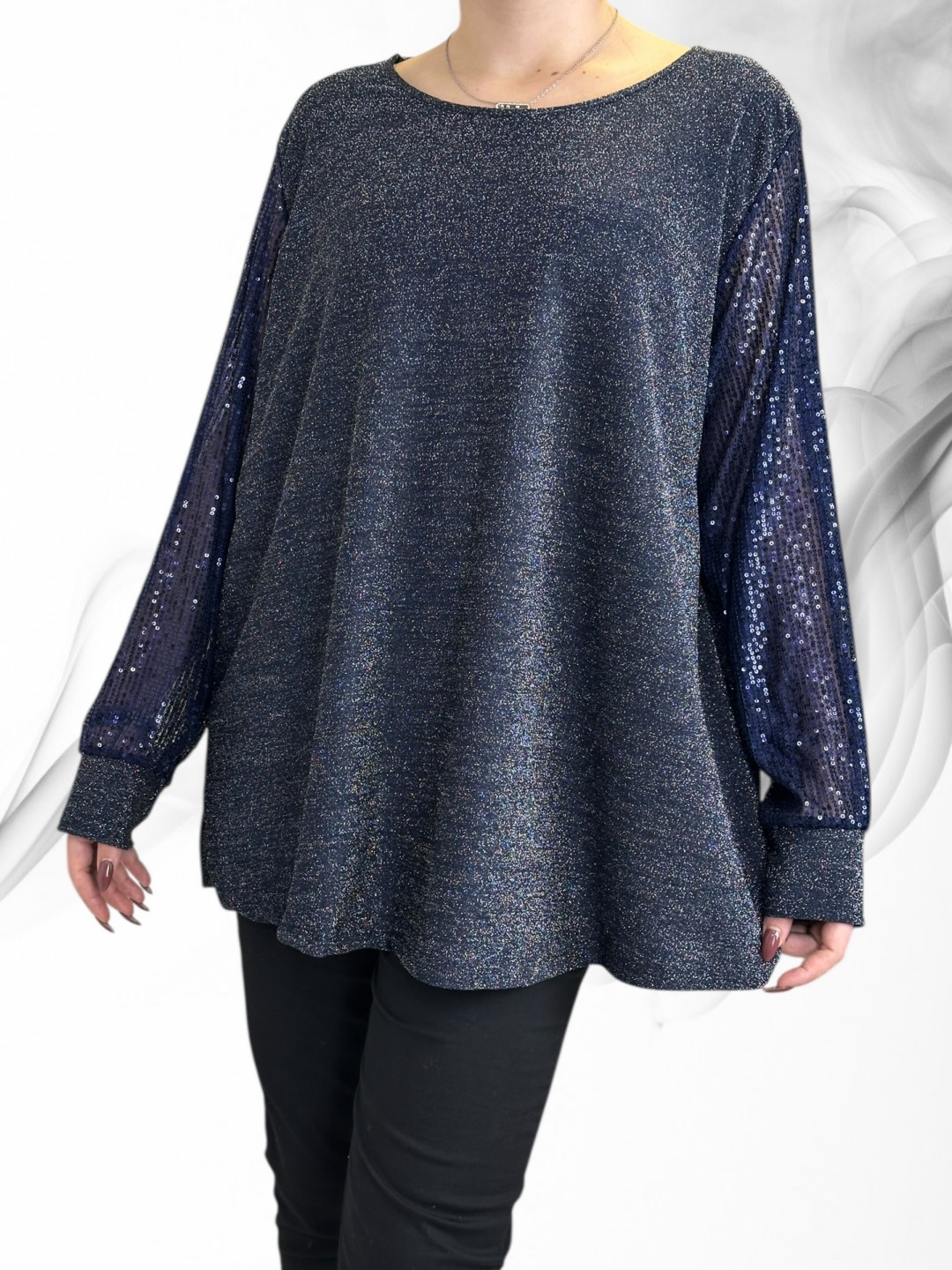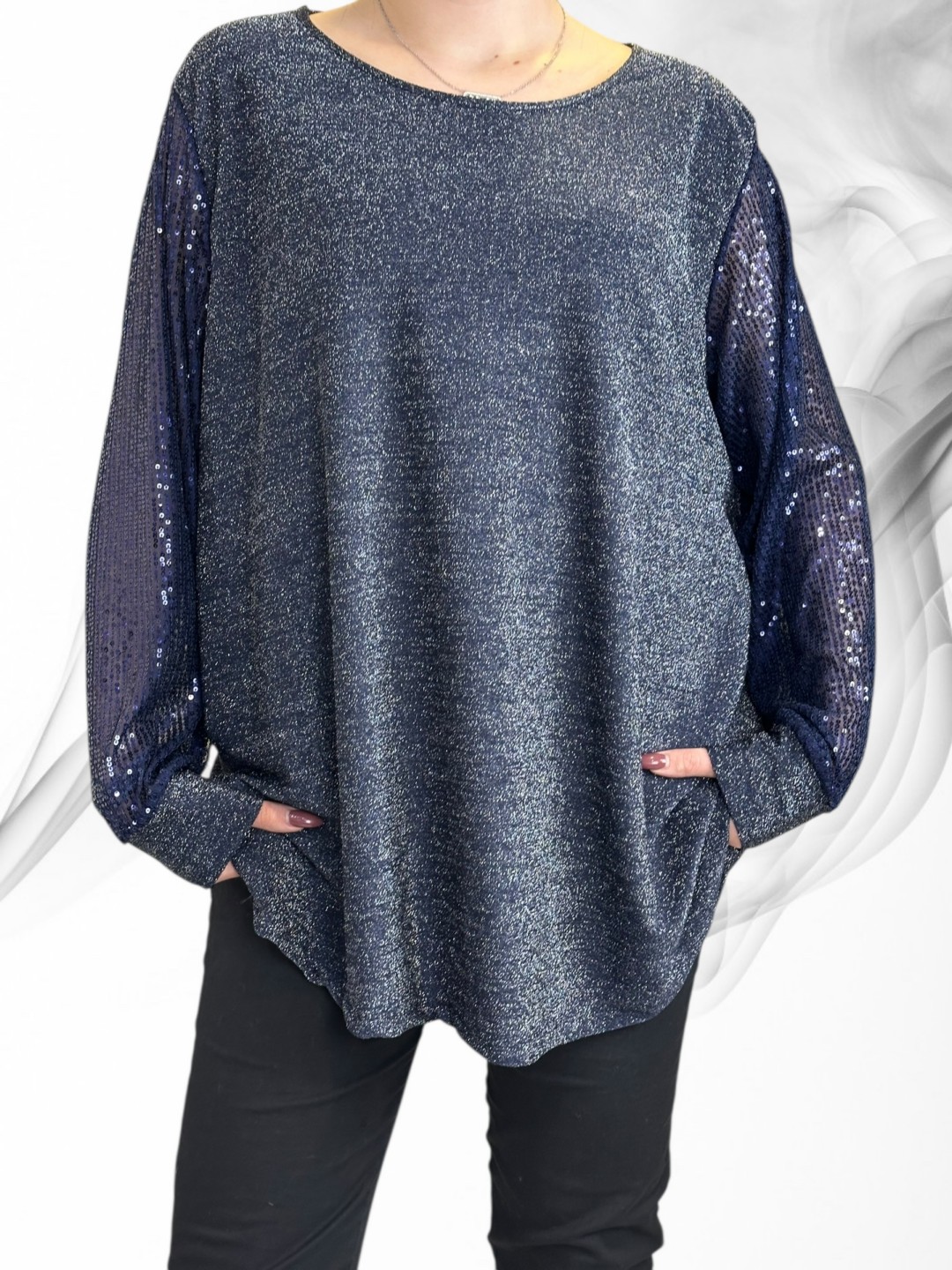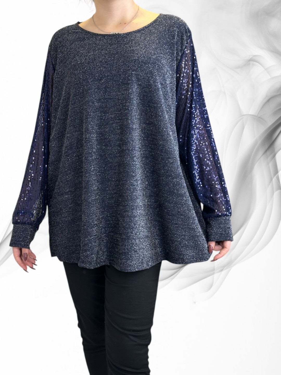 Μπλούζα Λούρεξ με Λαμπερές Παγέτες στα Μανίκια