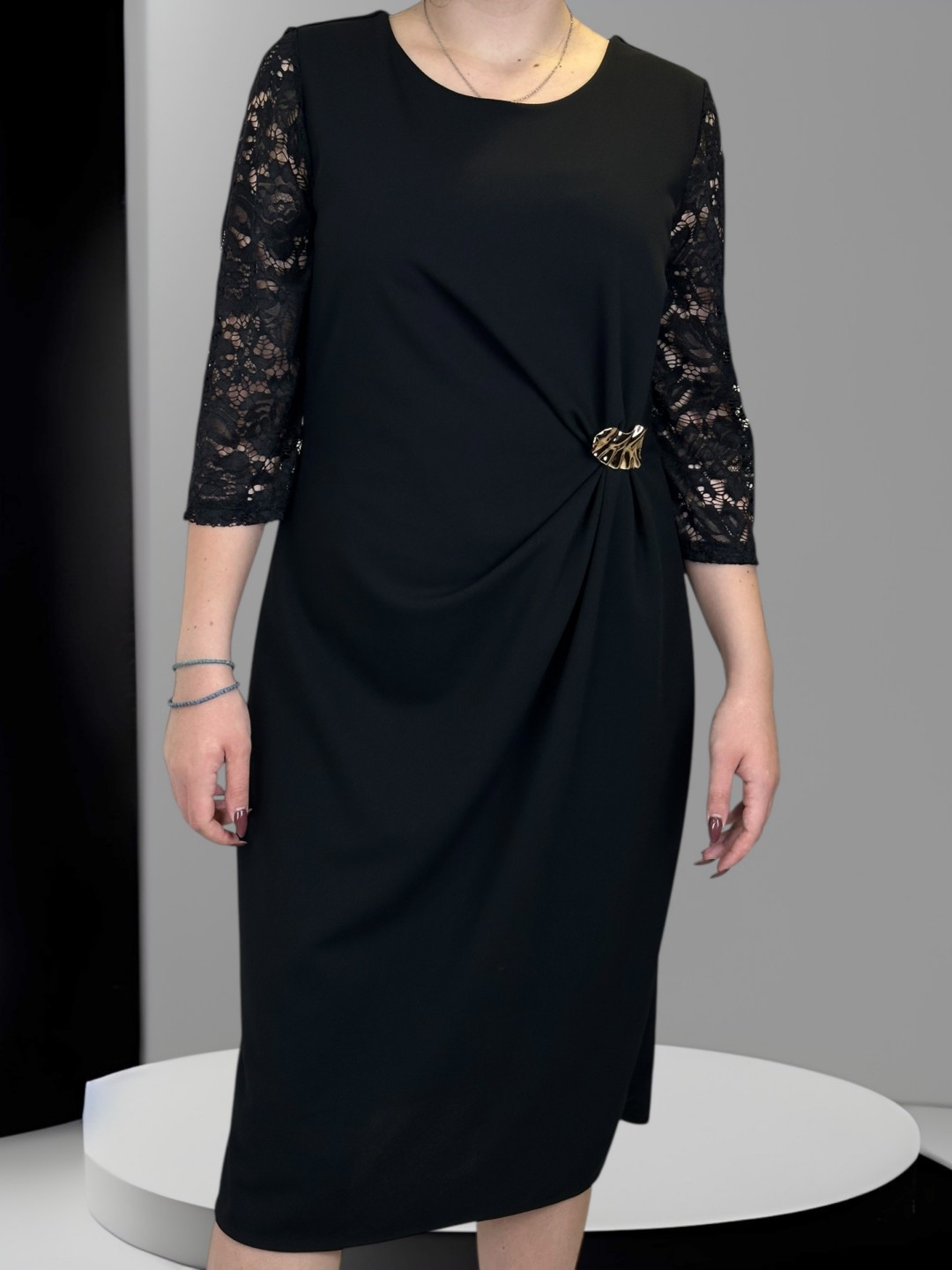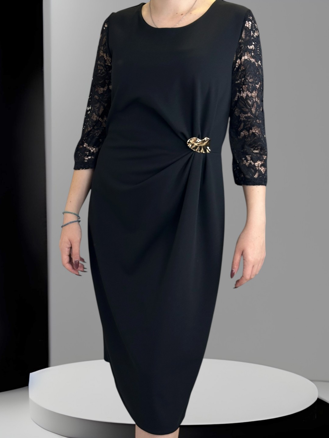 Απογείωσε την θηλυκότητά σου με αυτό το φόρεμα plus size με ρομαντική δαντέλα στα μανίκια. Χάρη στην σύνθεσή του από 95% poliester και 5% ελαστάν, χαρίζει ευκολία κινήσεων. Είναι One size, ταιριάζει σε όλες!