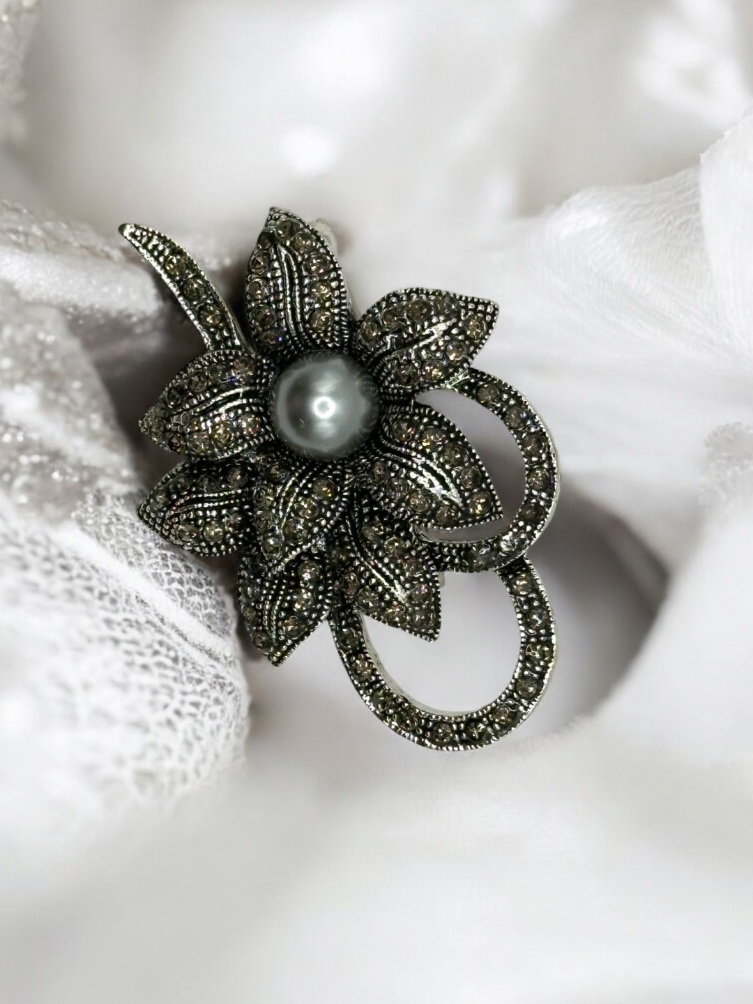 Μαύρη καρφίτσα με σχέδιο λουλουδιού, ιδανική για προσθήκη λάμψης σε κάθε σύνολο. One size, ταιριάζει άνετα σε όλες τις plus size σιλουέτες. Προσθέστε αυτό το εντυπωσιακό κόσμημα στην κοσμηματοθήκη σας.