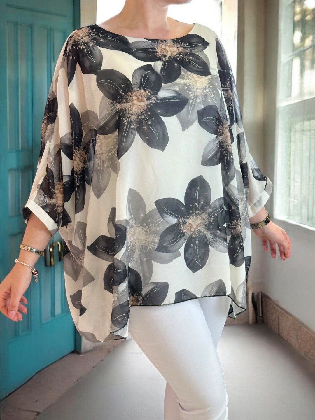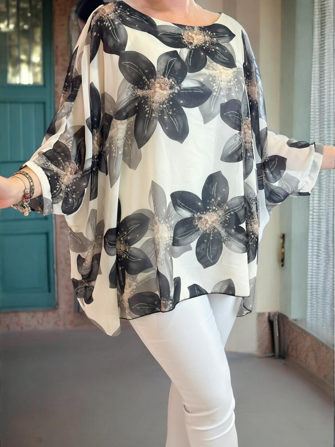 Αέρινη μπλούζα μουσελίνα με λουλουδάτο σχέδιο