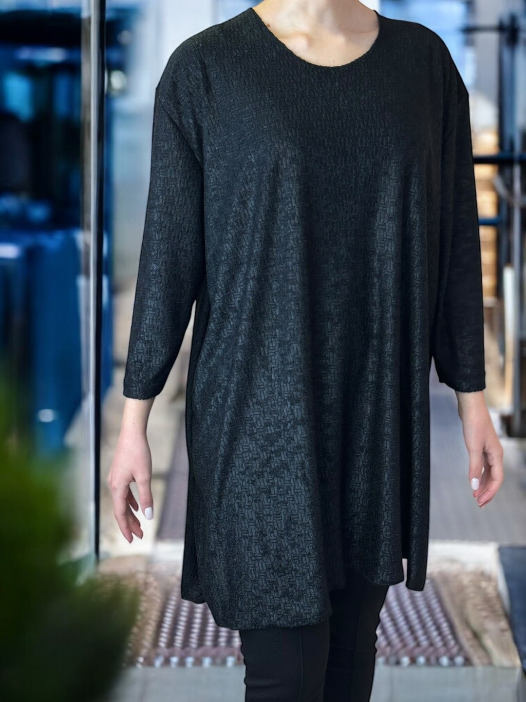 Απογείωσε το στιλ σου με αυτό το ανάγλυφο μπλουζοφόρεμα plus size. Με όμορφα τρουακάρ μανίκια που προσθέτουν αίσθηση κομψότητας. Διαθέσιμο σε one size για να ταιριάζει τέλεια σε κάθε σωματότυπο.