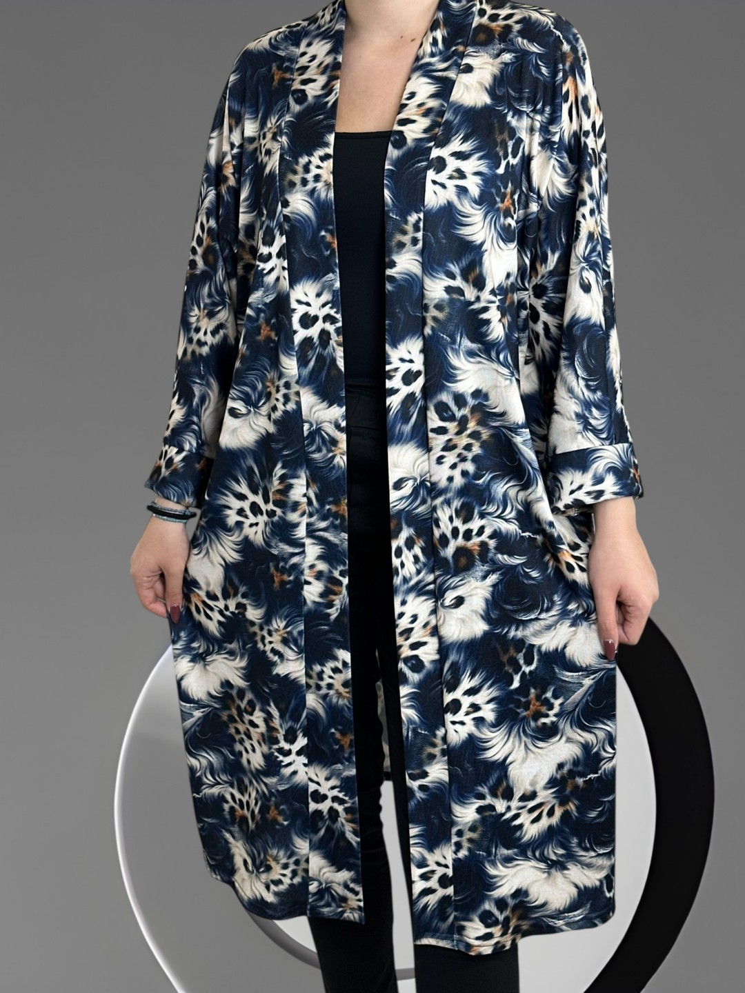Αναδείξτε την άνεσή σας με αυτήν την στιλάτη plus size ζακέτα. Κατασκευασμένη από 95% poliester και 5% elastan, παρέχει άνεση και ελαστικότητα. Διαθέσιμη σε One size που ταιριάζει σε όλους.