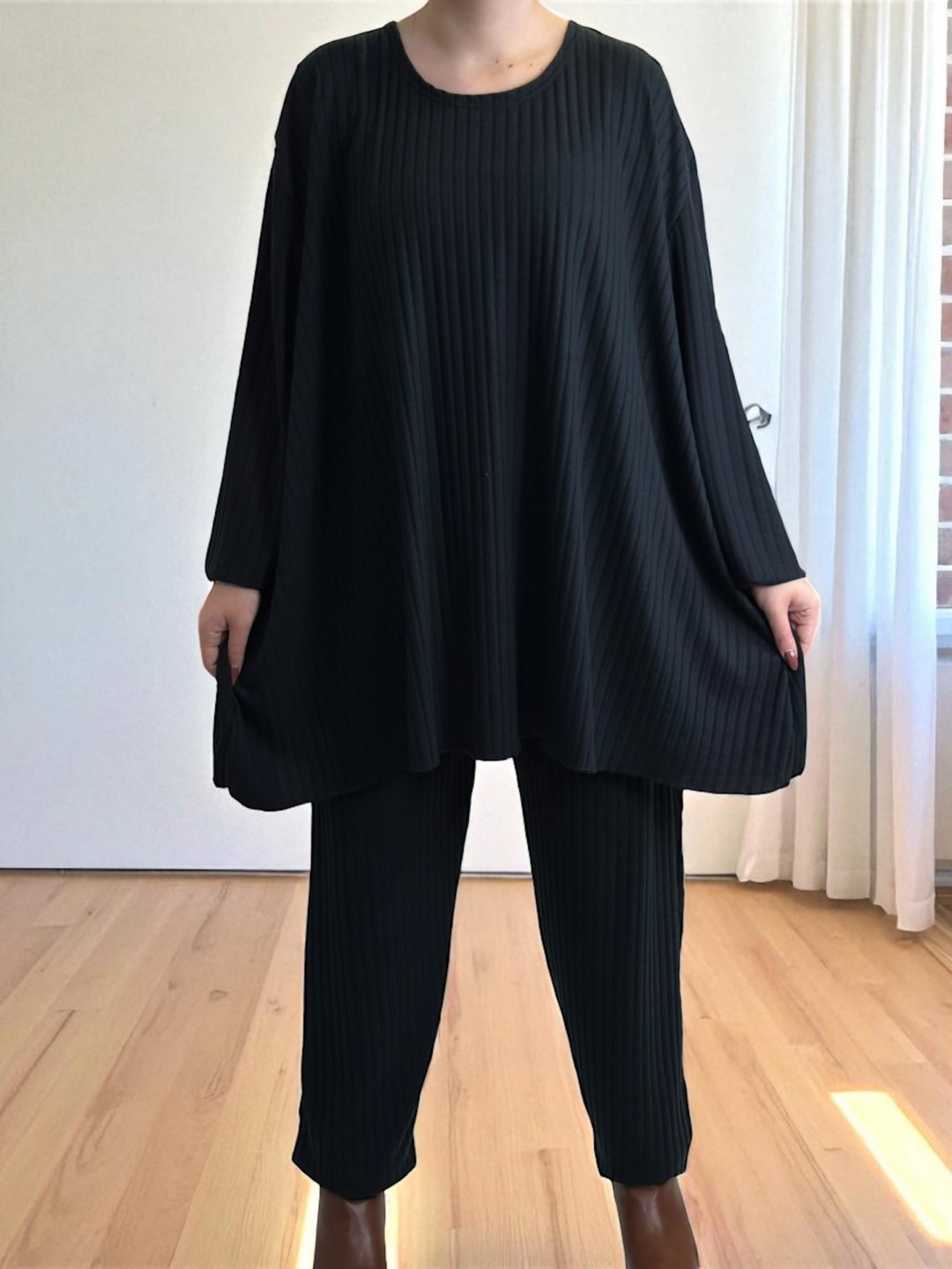 Αναδείξτε την ελευθερία σας με το άνετο, plus size σετ πουλόβερ σε minimal σχεδιασμό. One size μεγέθος που ταιριάζει σε όλες. Ιδανικός συνδυασμός στιλ και άνεσης.