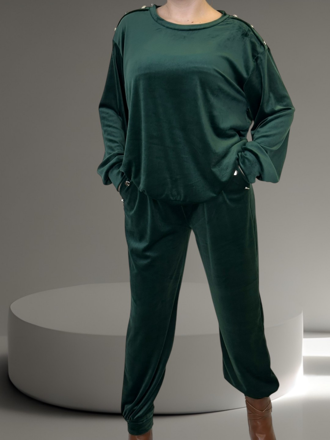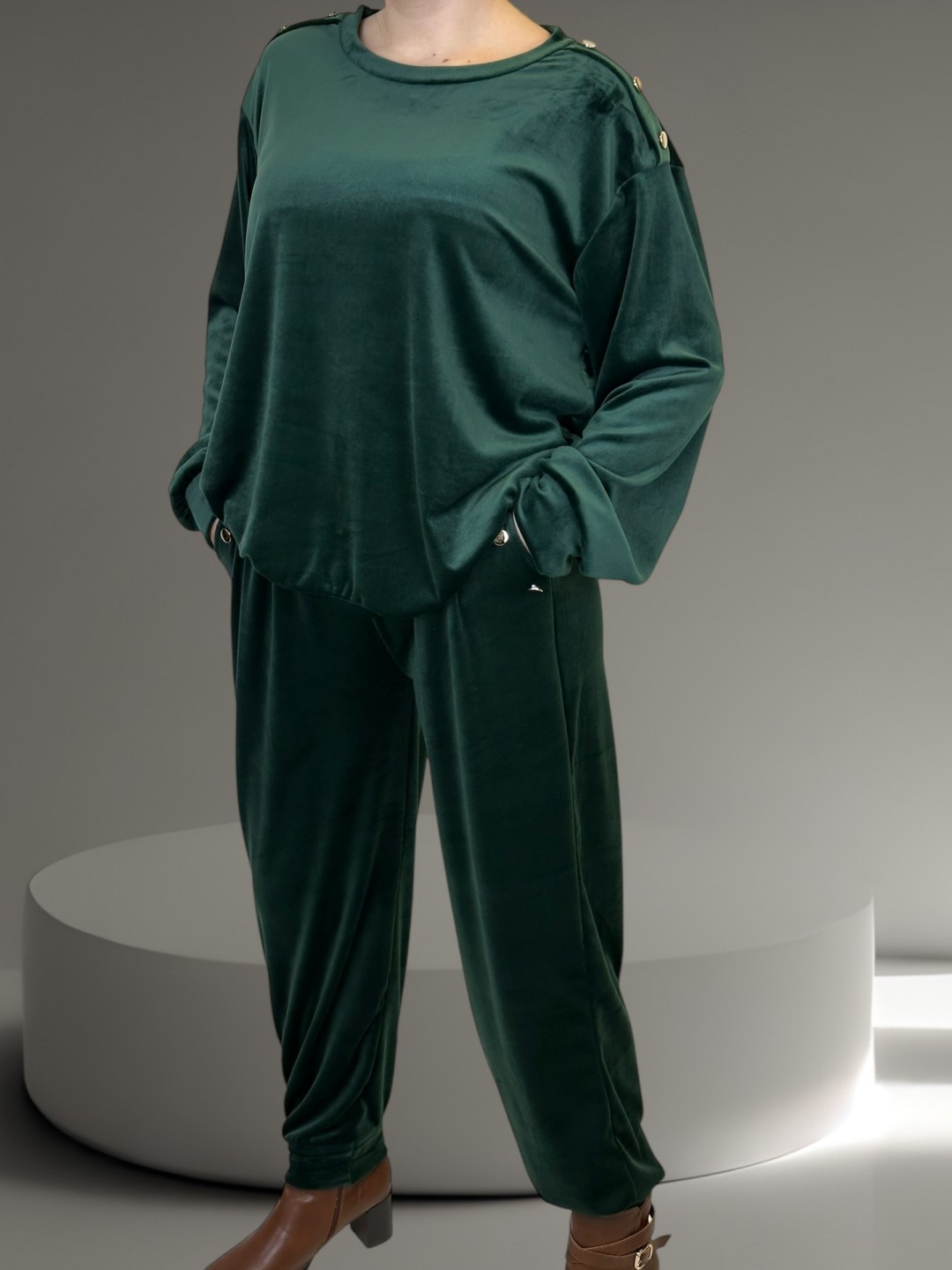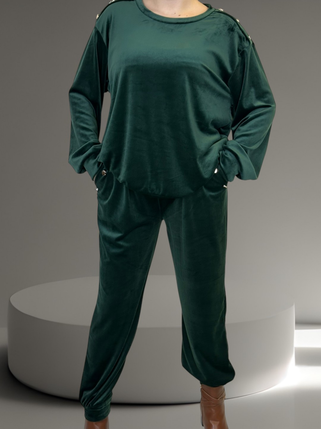 Άνετο βελούδινο σετ με διακοσμητικά κουμπιά