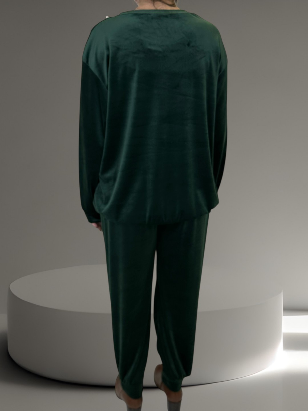 Απολαύστε την άνεση και την πολυτέλεια του μαλακού βελούδινου σετ plus size. Διαθέτει διακοσμητικά κουμπιά για πρόσθετη λεπτομέρεια. Ιδανικό για όσους επιθυμούν χαλάρωση με στυλ. One size fits all.
