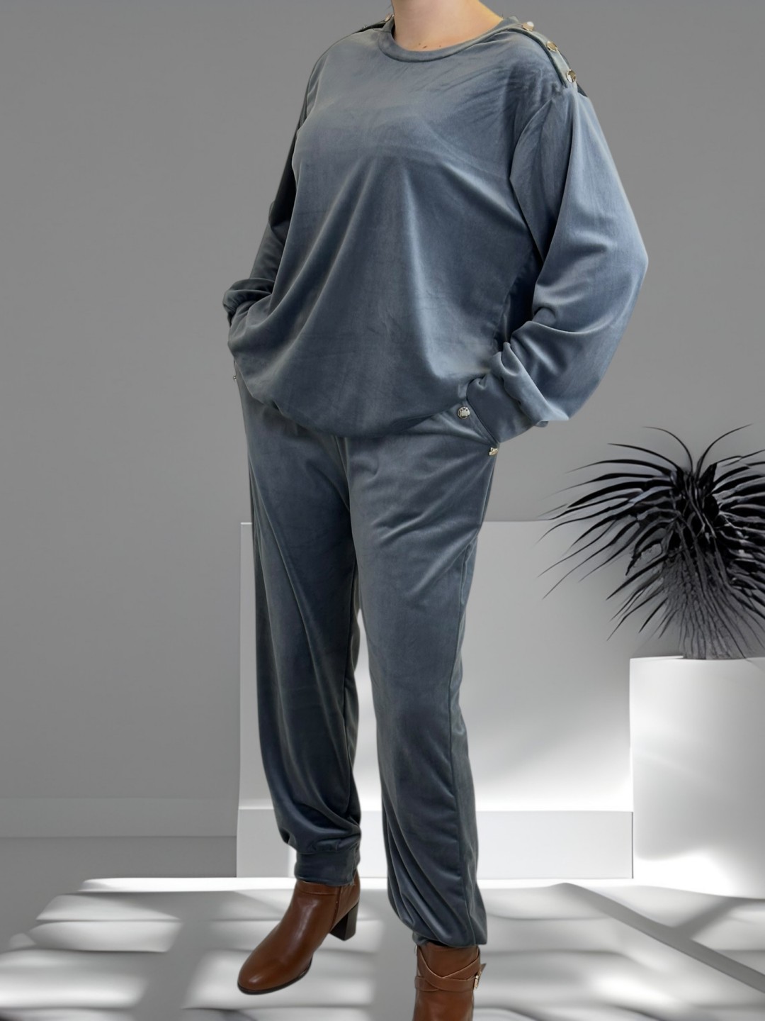 Άνετο βελούδινο σετ με διακοσμητικά κουμπιά