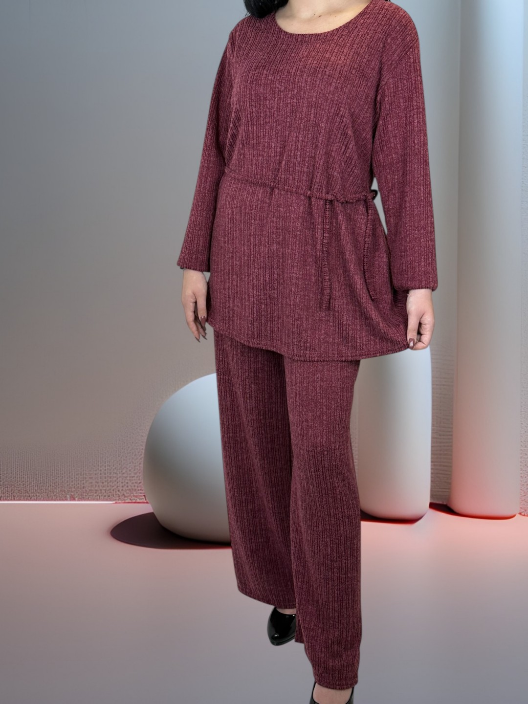 Ανανεώστε τη γκαρνταρόμπα σας με αυτό το ευφυώς σχεδιασμένο, απαλό σετ plus size για γυναίκες. Συνδυάζει εξαιρετικά την άνεση με το στυλ, ενώ η λεπτή ζώνη υπογραμμίζει τη σιλουέτα σας. Διατίθεται σε μέγεθος One size, για απόλυτη εφαρμογή.