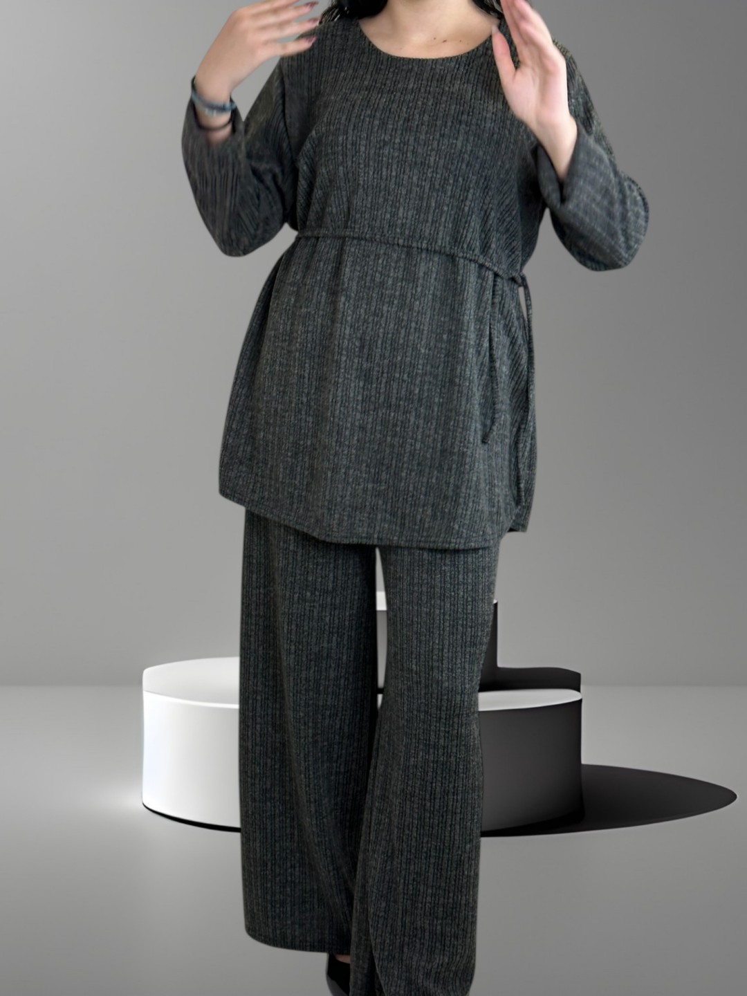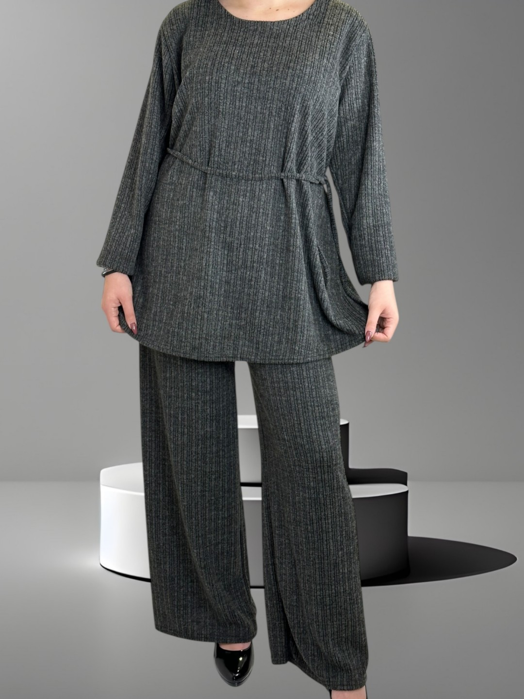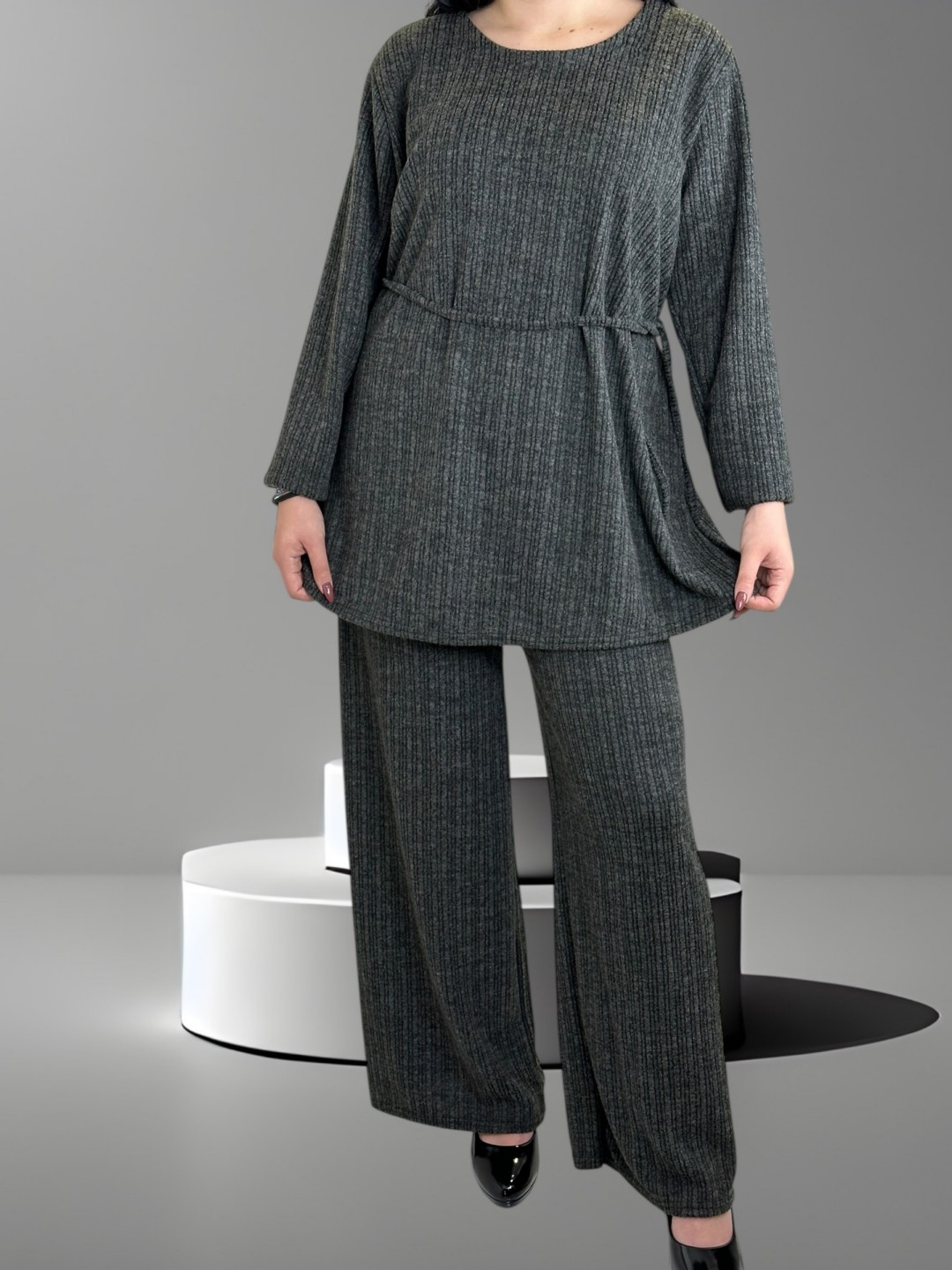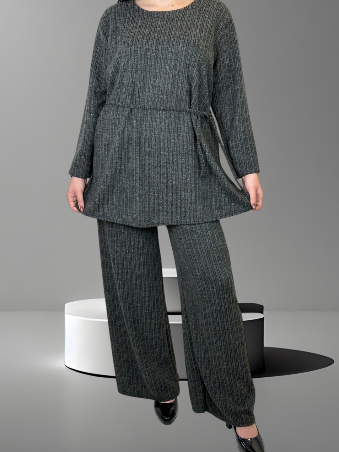Αποκτήστε στυλ και βελτιώστε την καθημερινή σας εμφάνιση με το απαλό plus size σετ με λεπτή ζώνη. Διαθέσιμο σε one size που εφαρμόζει τέλεια σε κάθε σωματότυπο για κομψό και πρακτικό look.