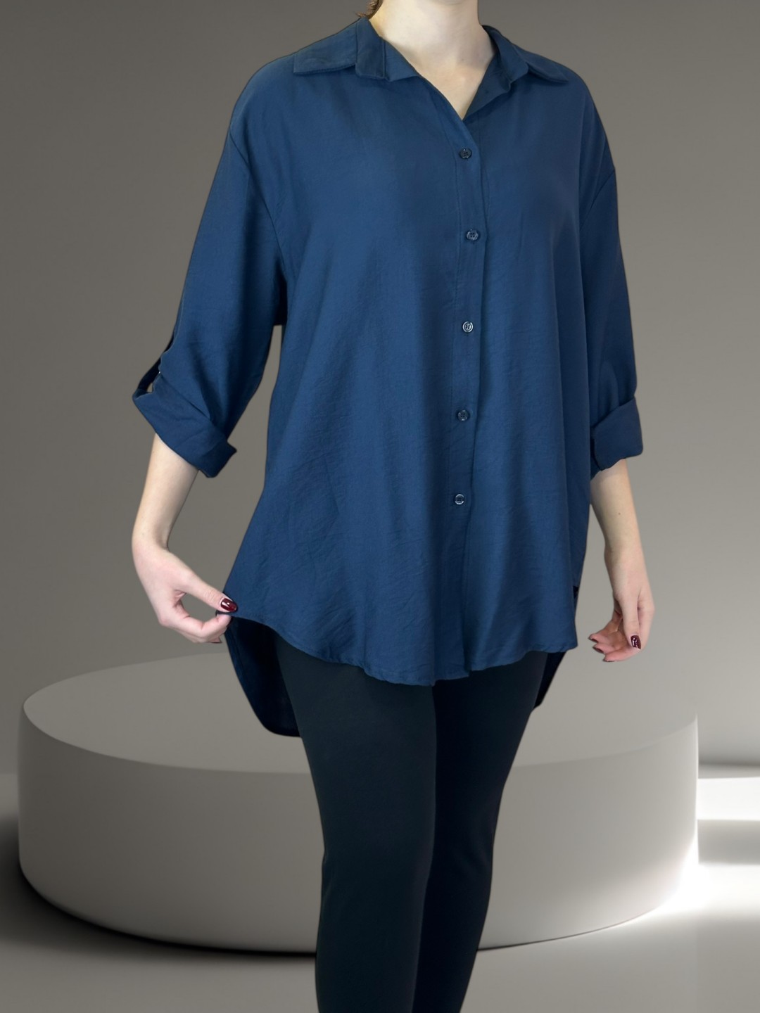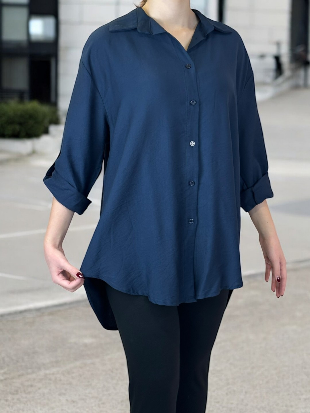 Απογείωσε το κομψό στυλ με αυτό το ασύμμετρο πουκάμισο plus size. Ιδανικό για εντυπωσιακές εμφανίσεις, αυτό το πουκάμισο είναι κατασκευασμένο από 95% πολυεστέρα και 5% ελαστάν για ανεπανάληπτη άνεση και εφαρμογή. Διαθέσιμο σε μέγεθος One size.