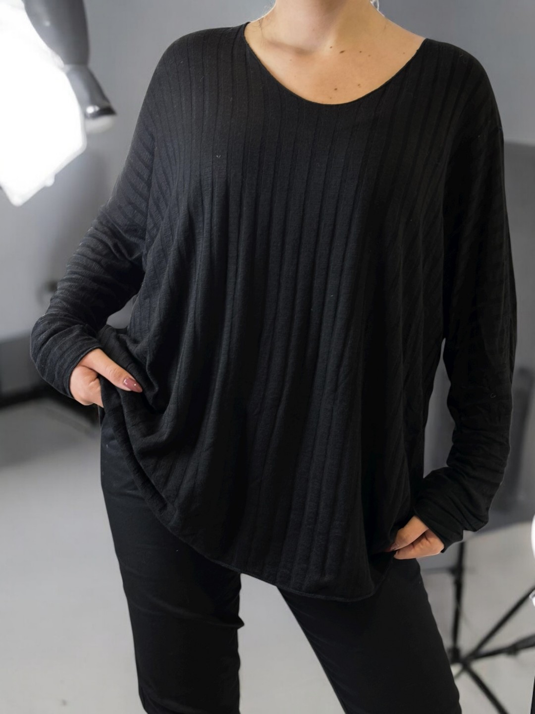 Αποκτήστε την plus size Basic ριμπ μπλούζα σε μαύρο. Με άνετη γραμμή και ευέλικτο design, αυτή η πολυτελής μπλούζα προσφέρει κομψότητα χωρίς κόπο. Το μέγεθος One Size ταιριάζει σε όλες και είναι ιδανική για το καθημερινό ντύσιμο.