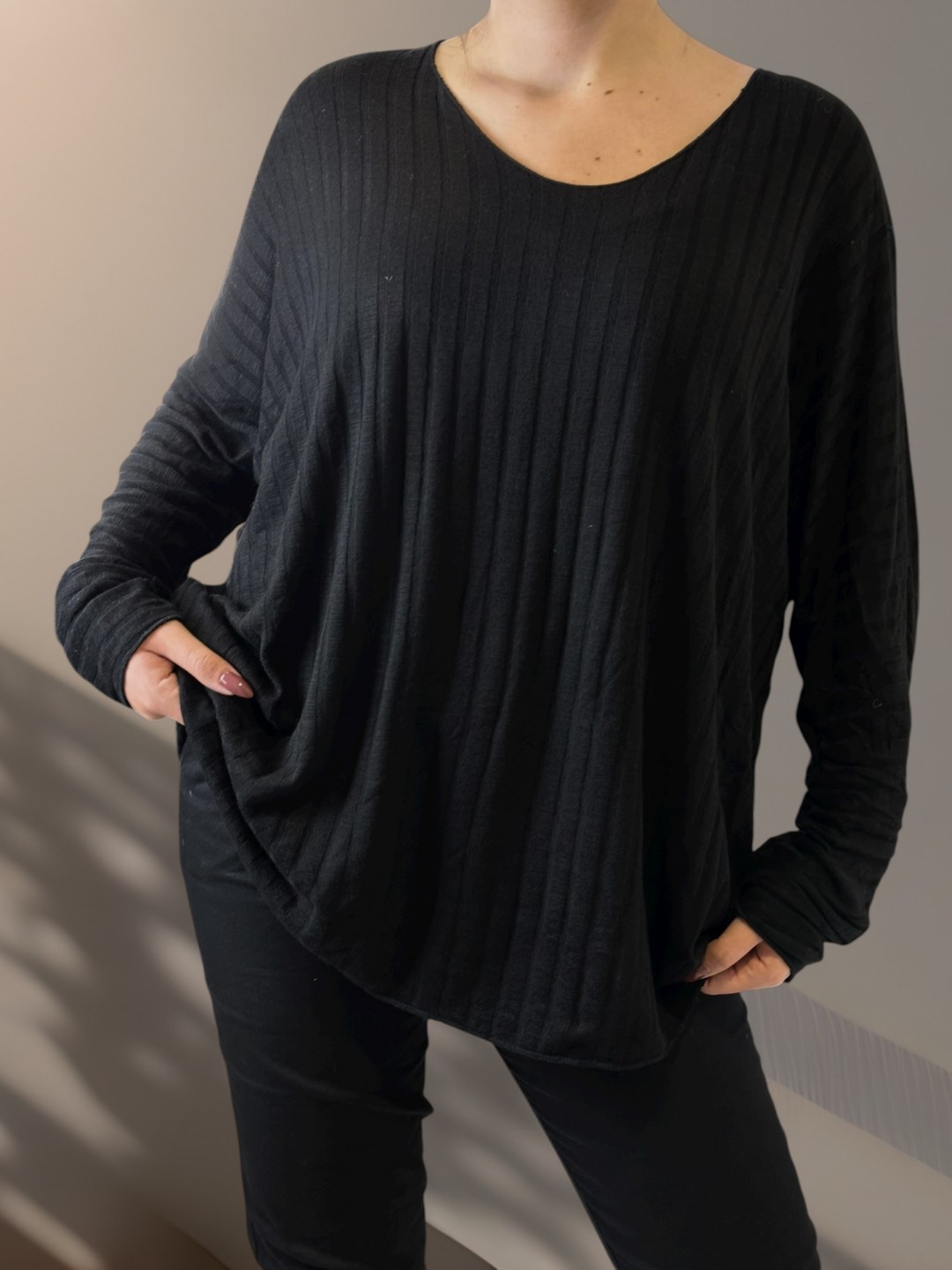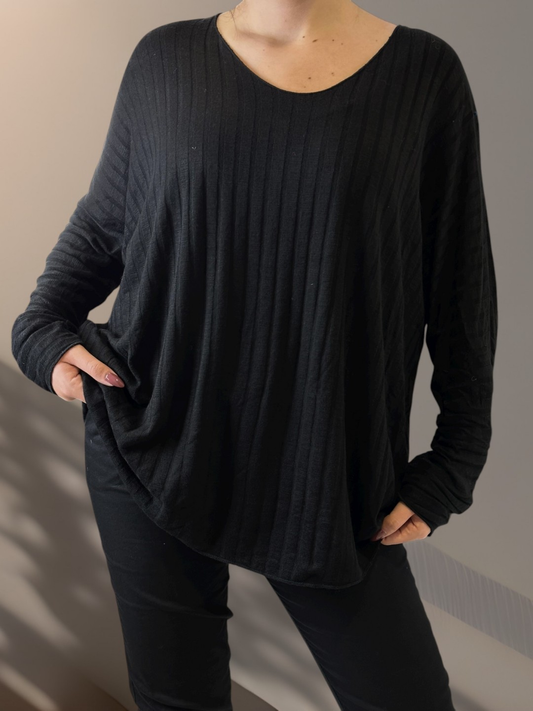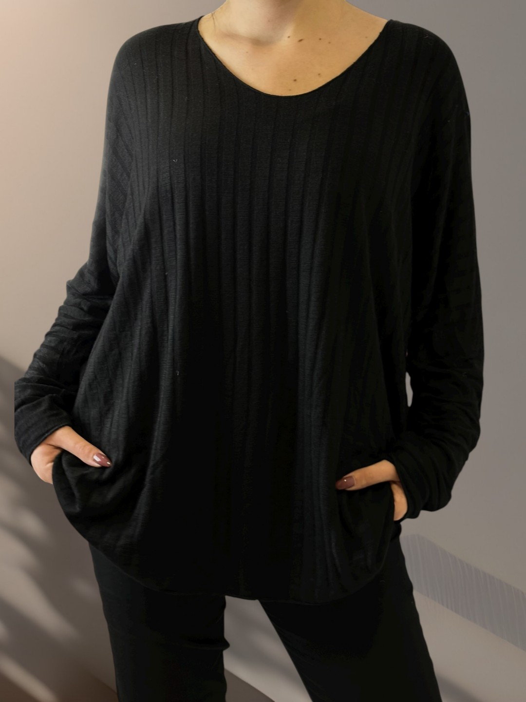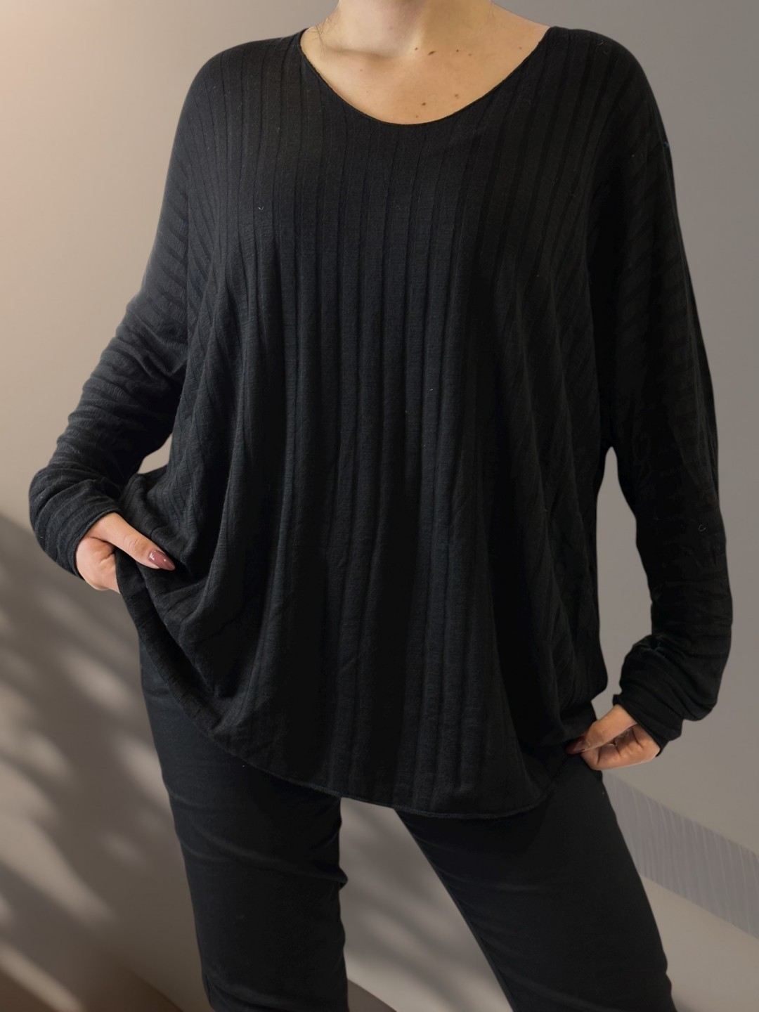 Basic ριμπ μπλούζα σε μαύρο