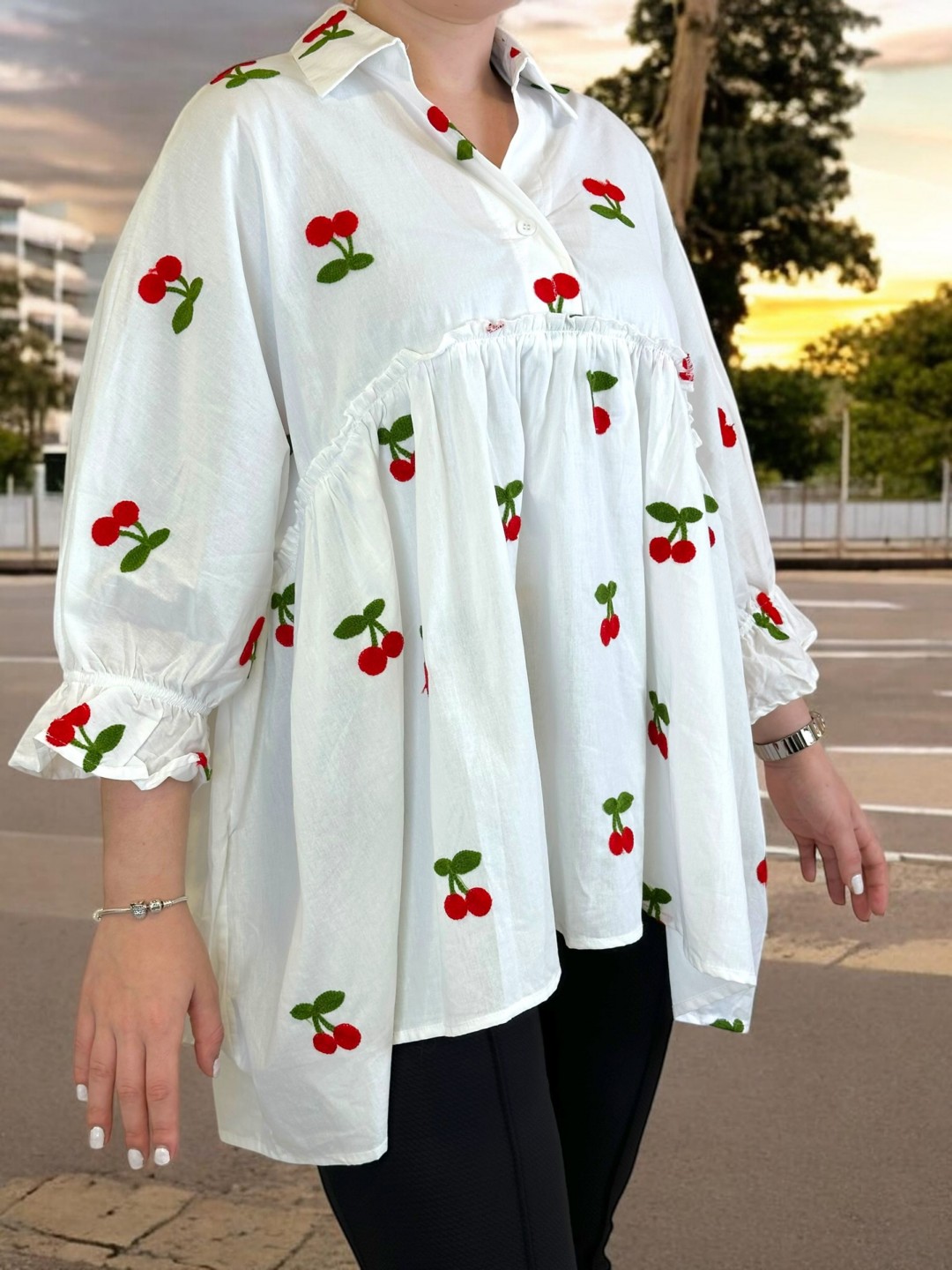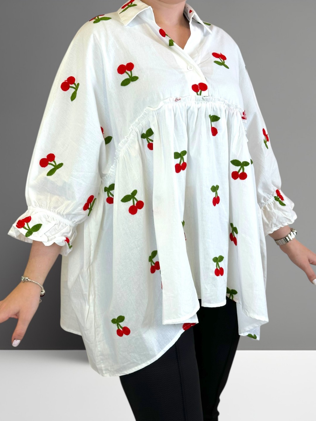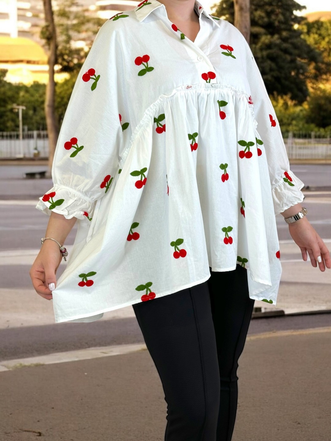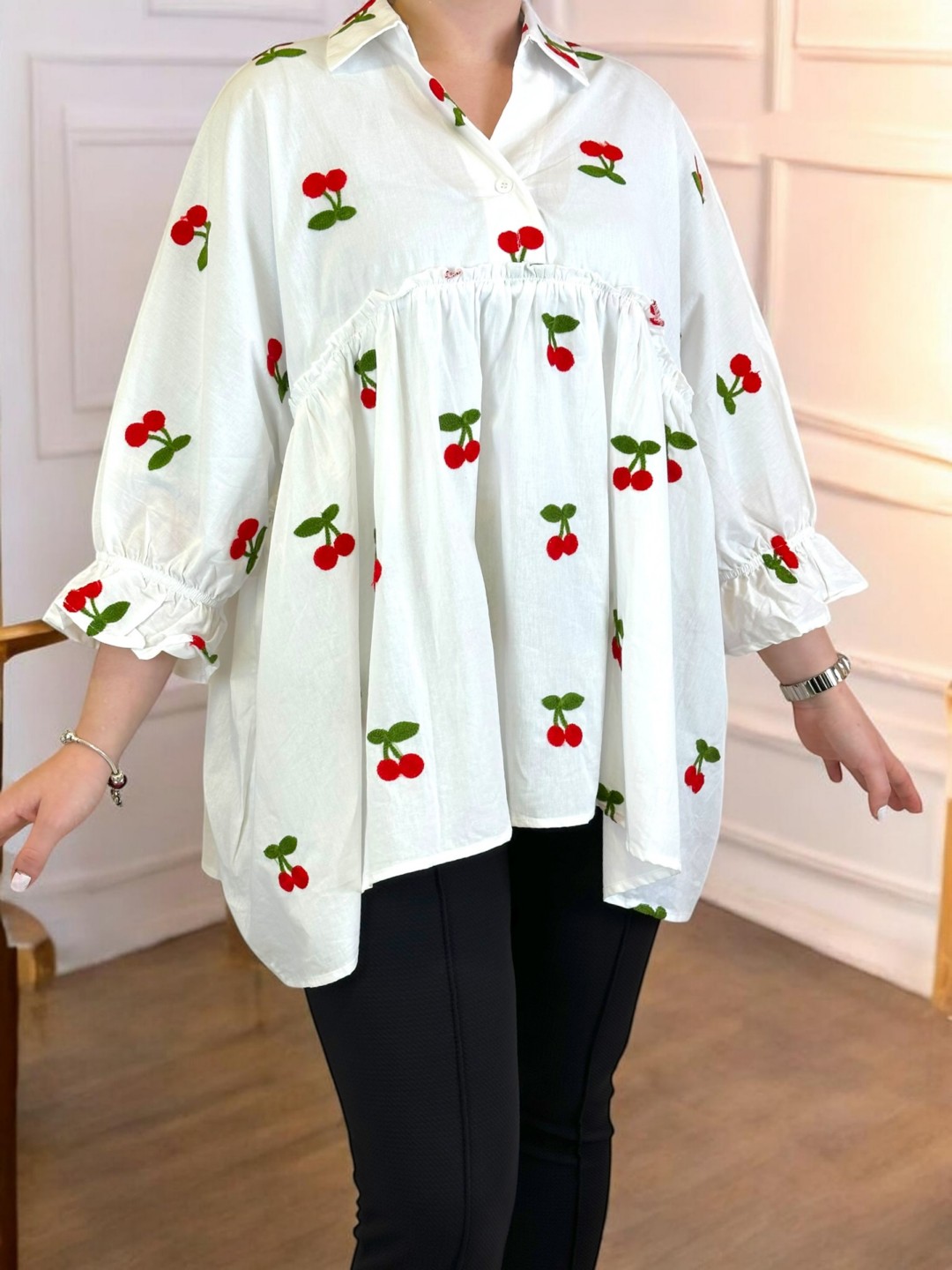 Ρομαντικό πουκάμισο με βολάν και κεντητό σχέδιο