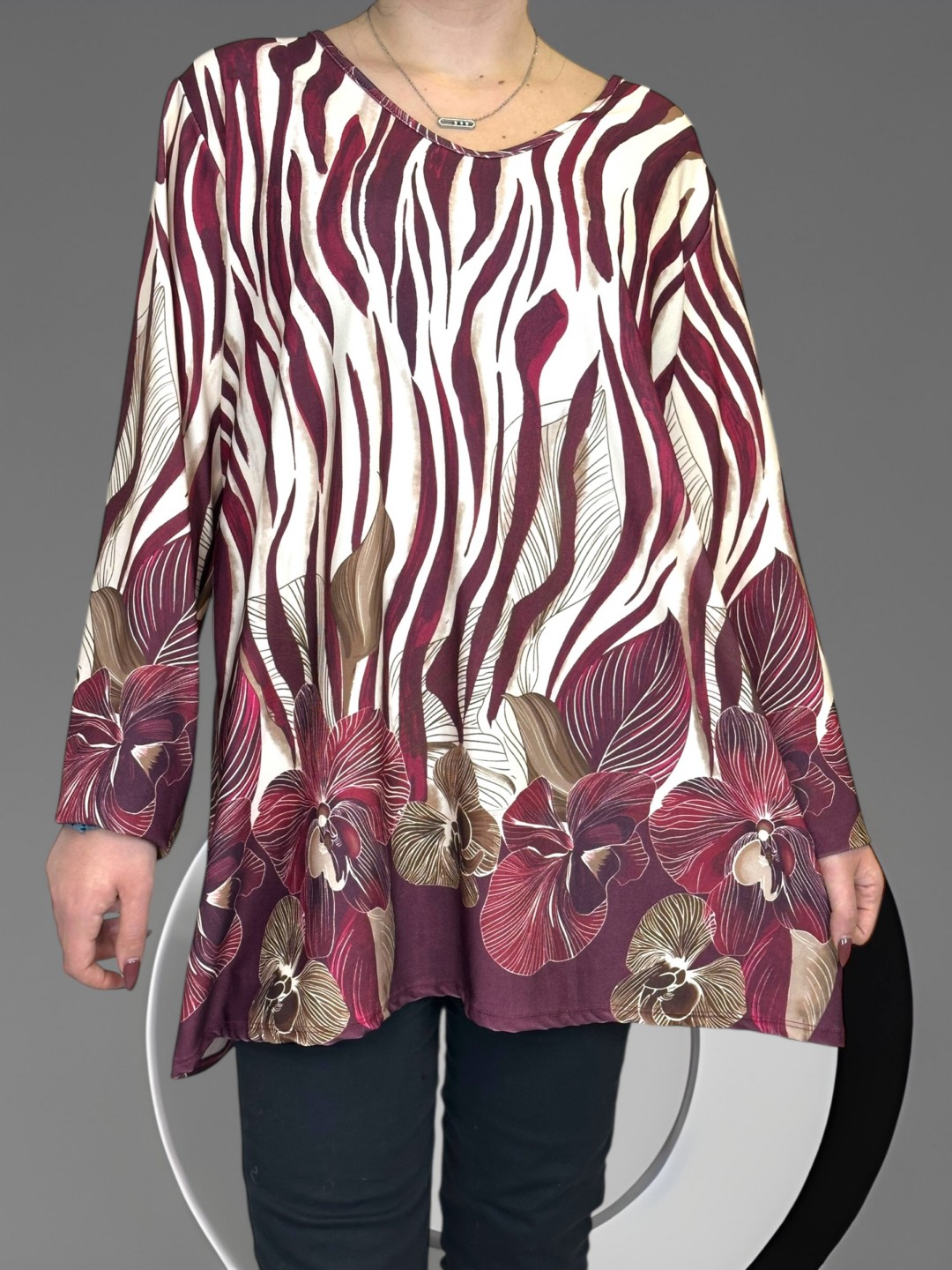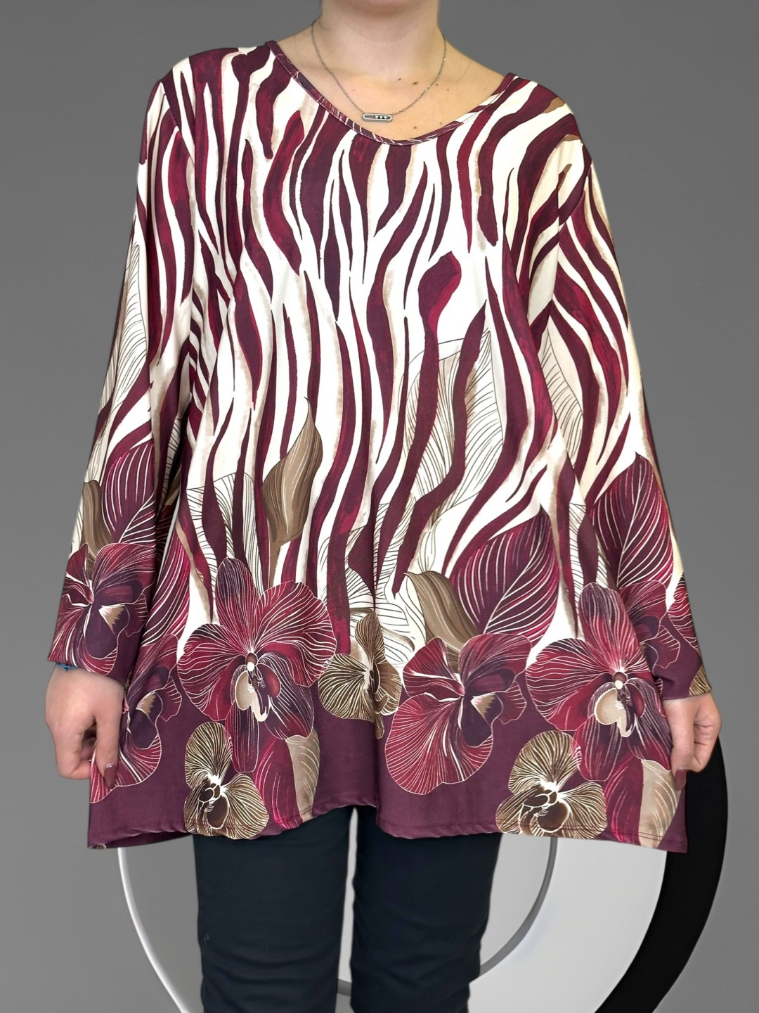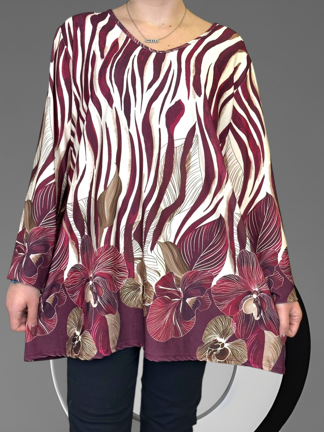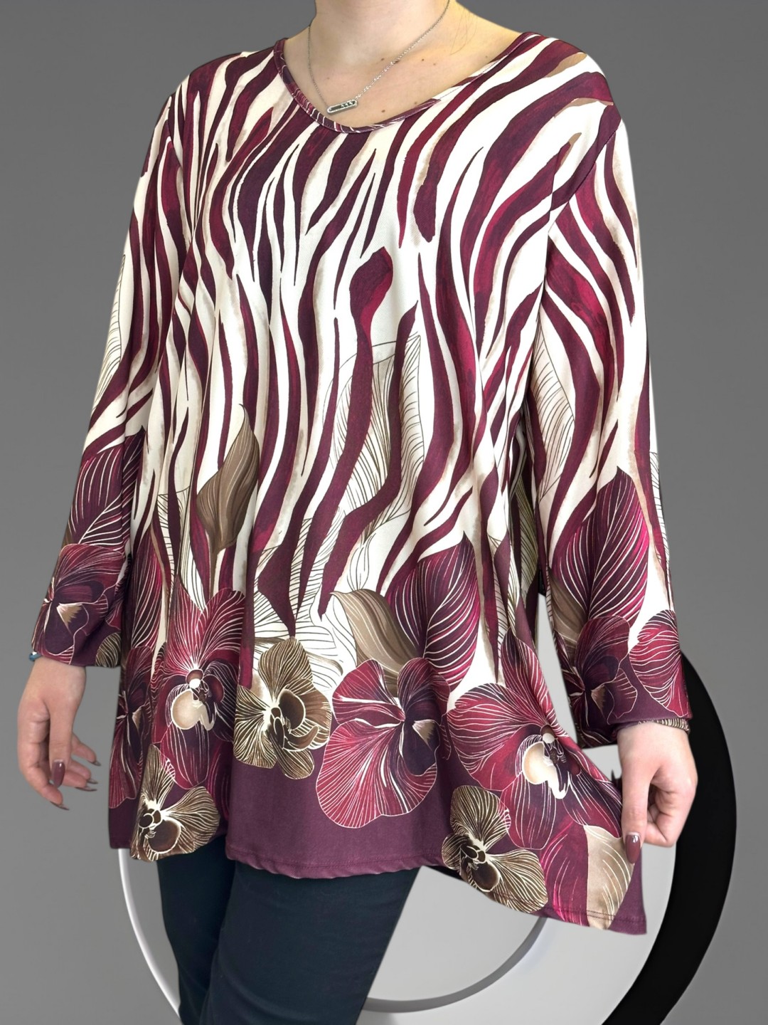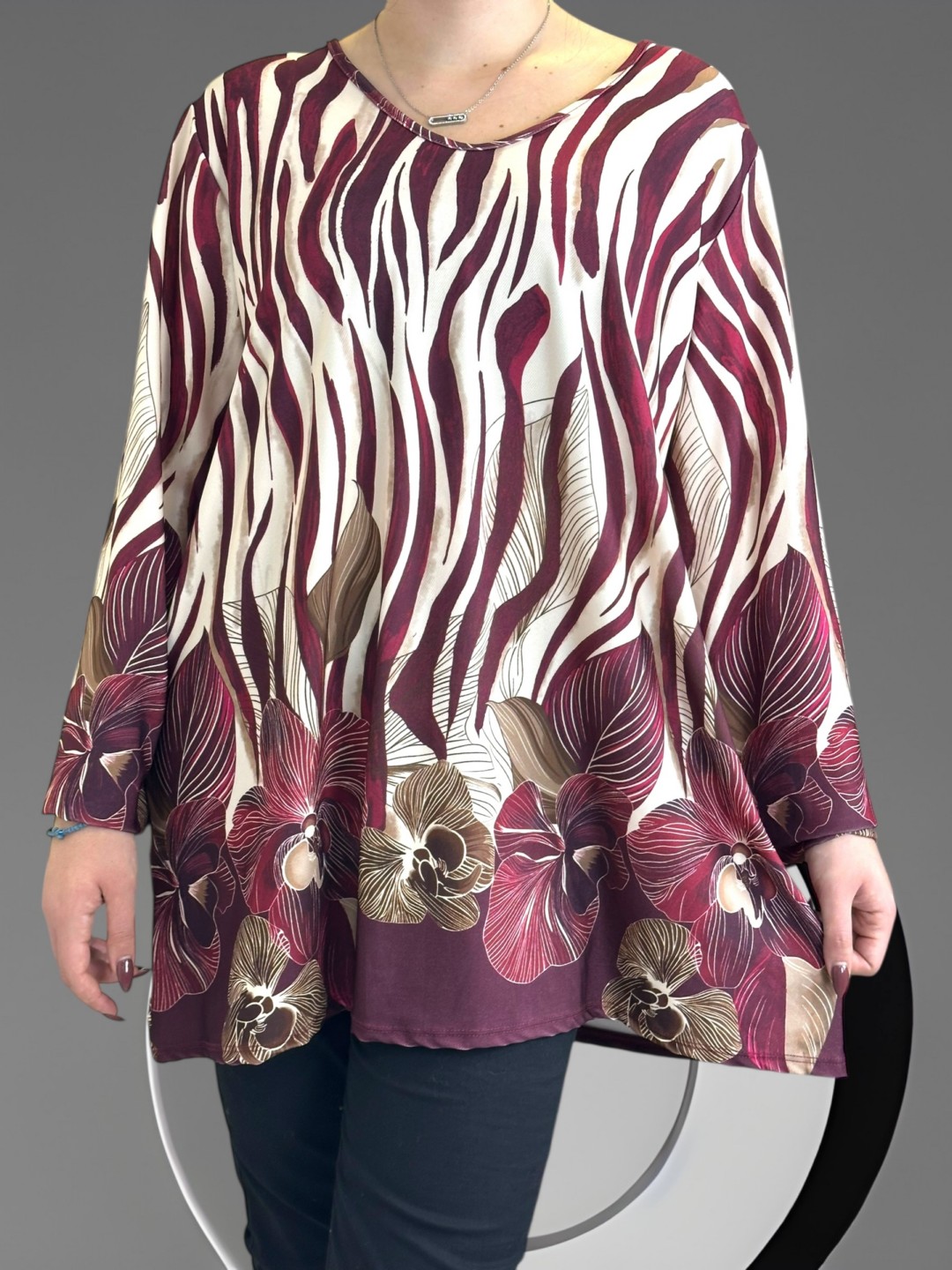 Αποκτήστε την κομψή plus size μπλούζα, κατασκευασμένη από 50% viscoza και 50% poliester, παρέχοντας εξαιρετική άνεση και ελαστικότητα. Σε One size για κάθε σωματότυπο. Ιδανική για όλες τις περιστάσεις!