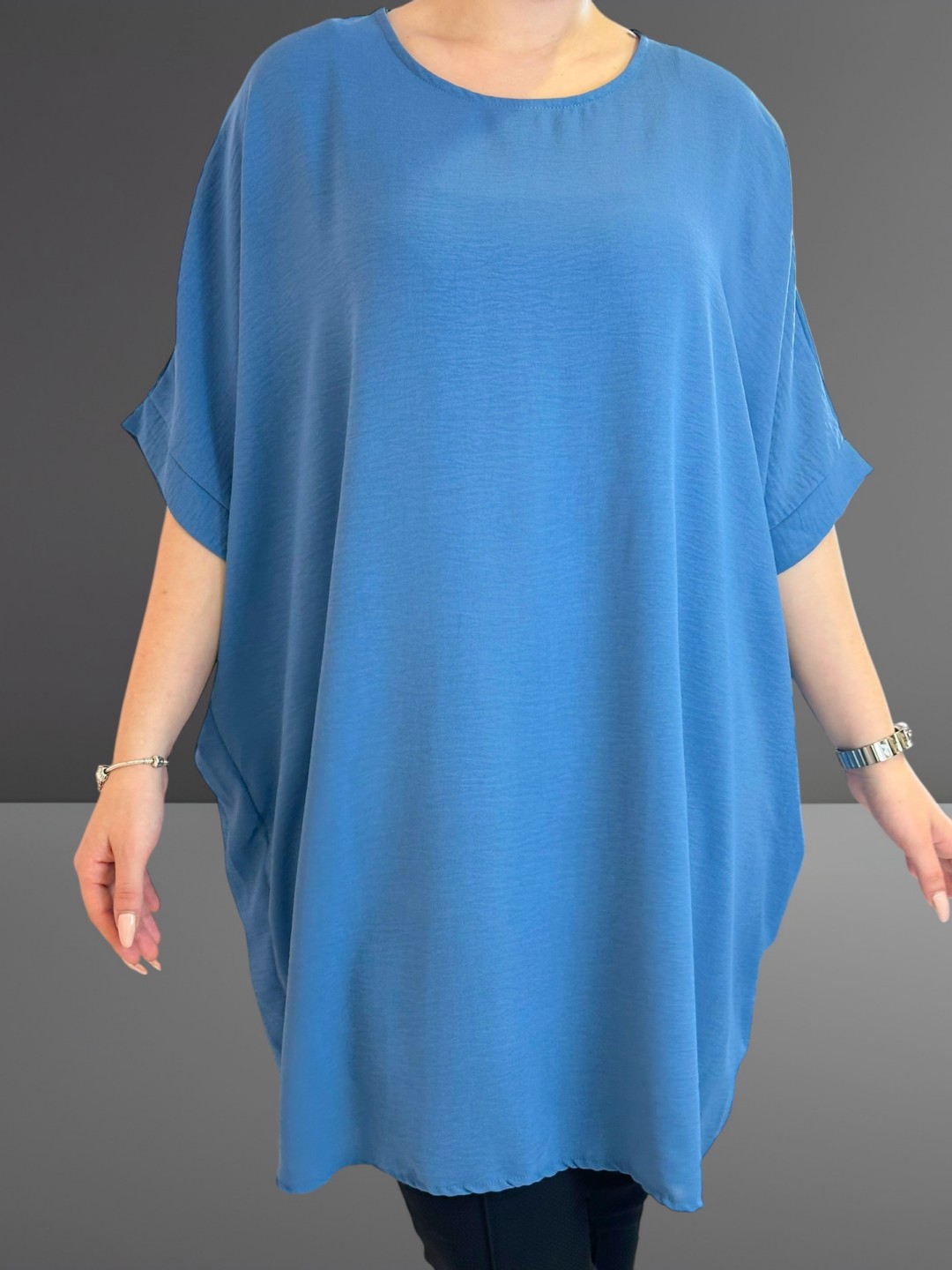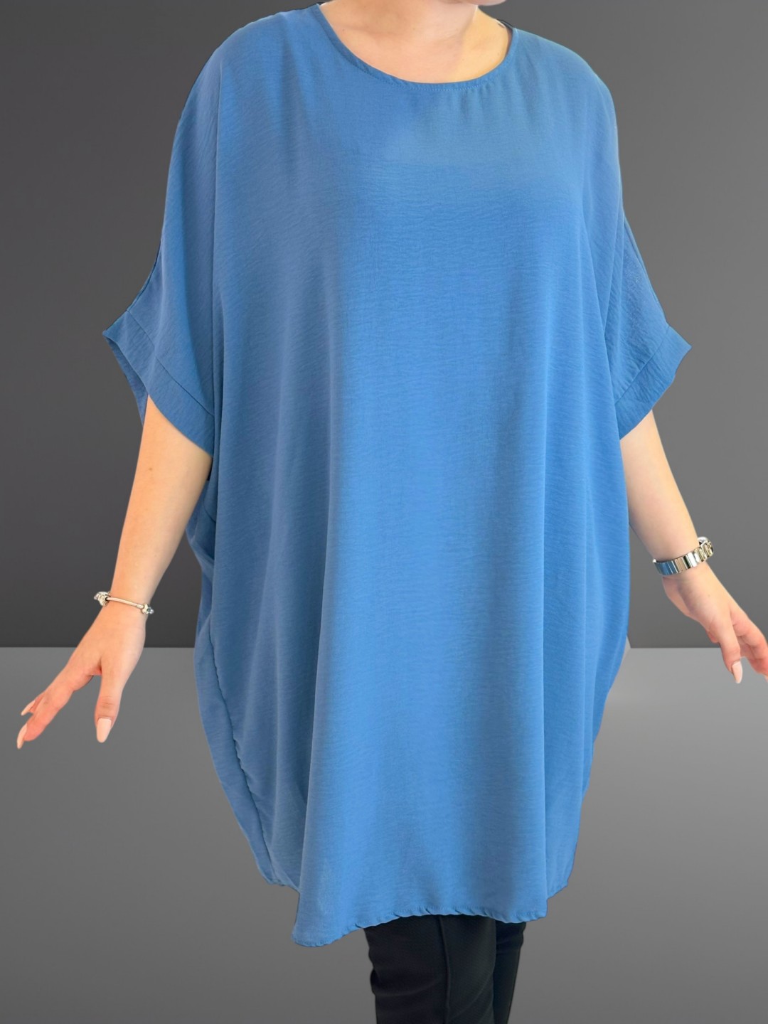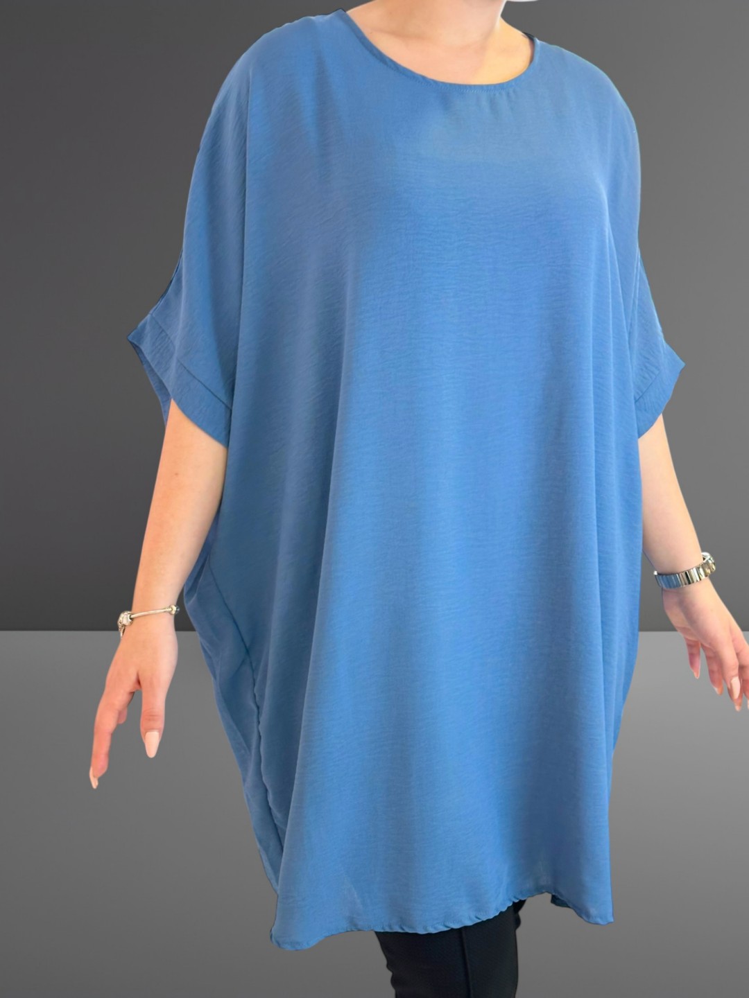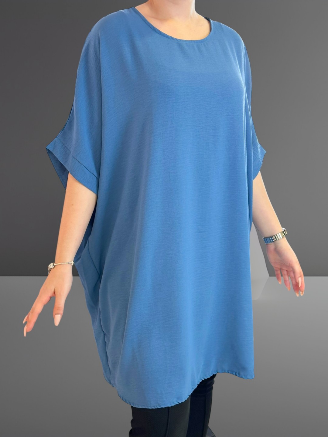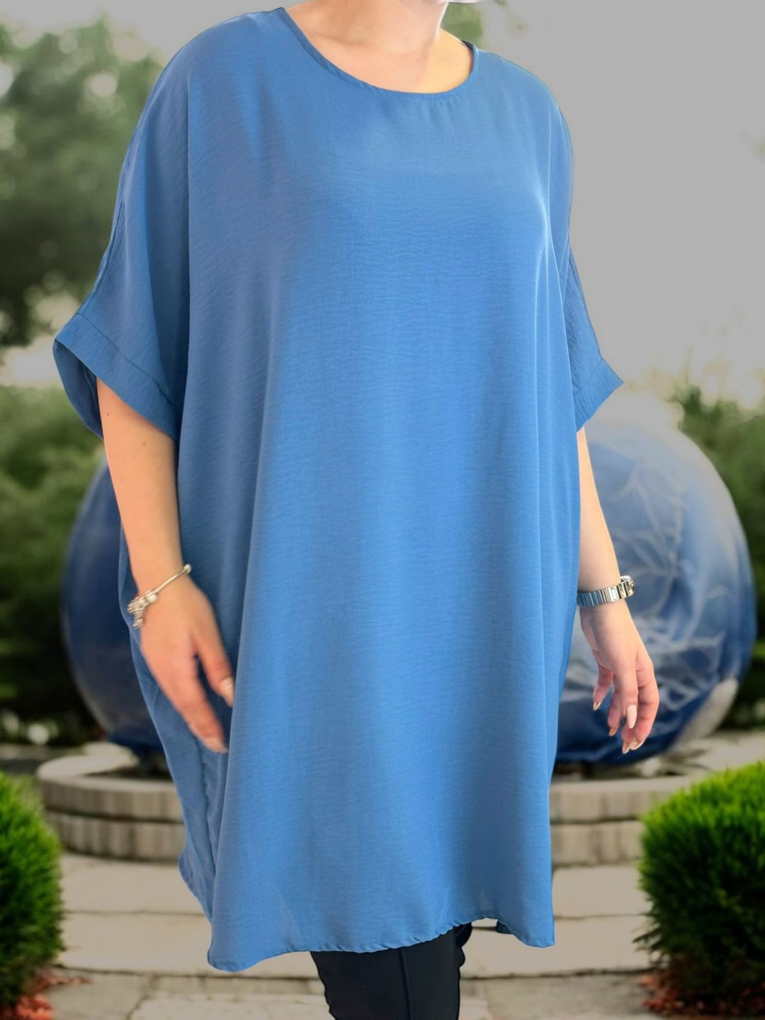 Χαρίστε στον εαυτό σας ένα αέρινο μπλουζοφόρεμα plus size από απαλή ζορζέτα. Εξαιρετικά άνετο, με 95% βισκόζη και 5% ελαστάν, προσφέρει τέλεια εφαρμογή. Διαθέσιμο σε One size.