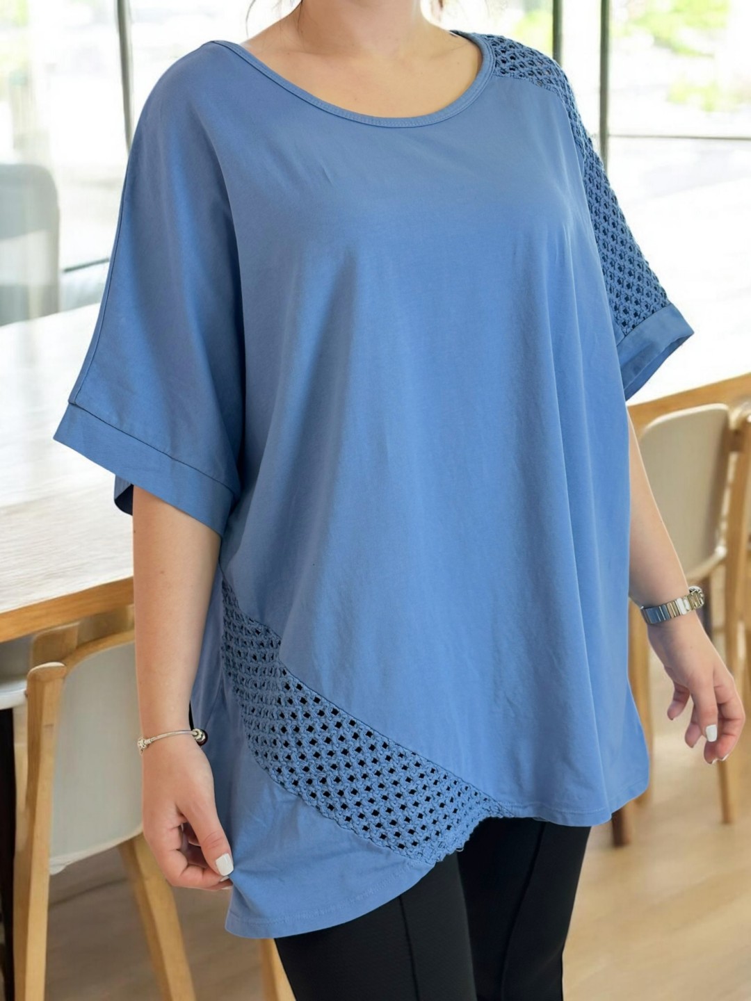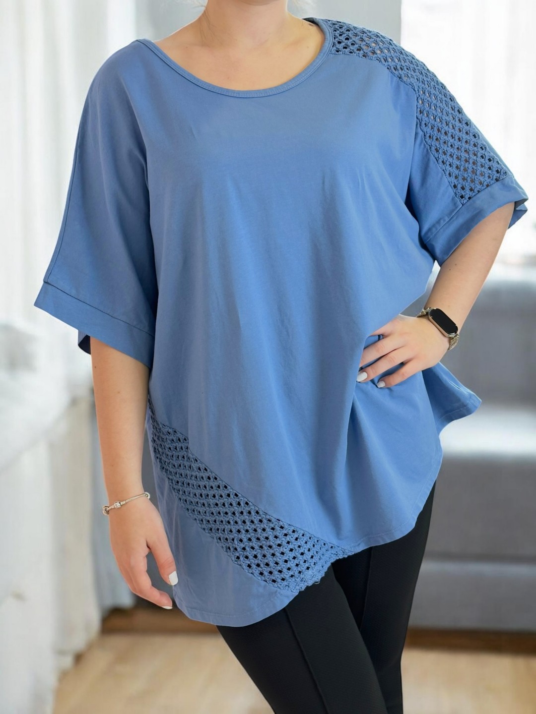 Κομψή μπλούζα με διαφάνεια στα μανίκια και στο πλάι