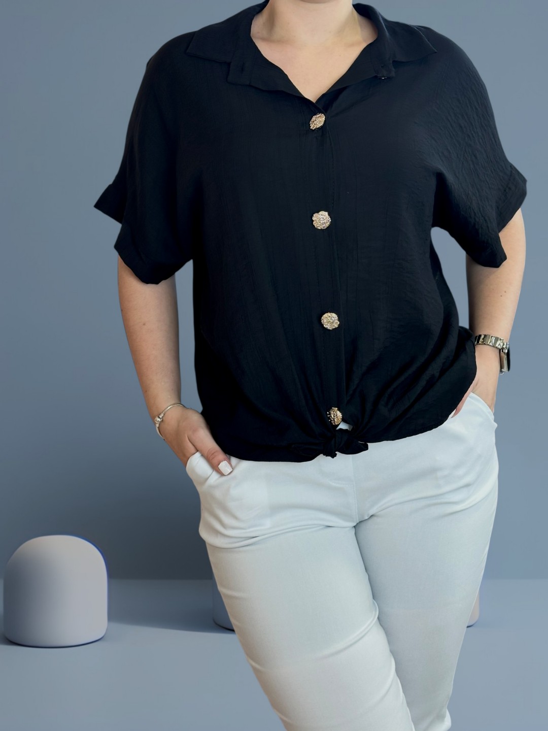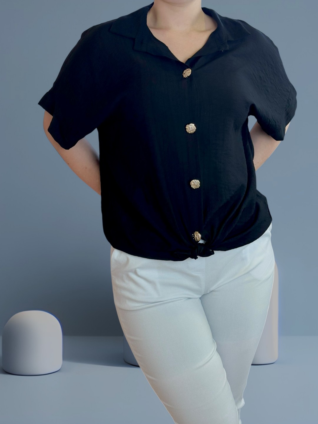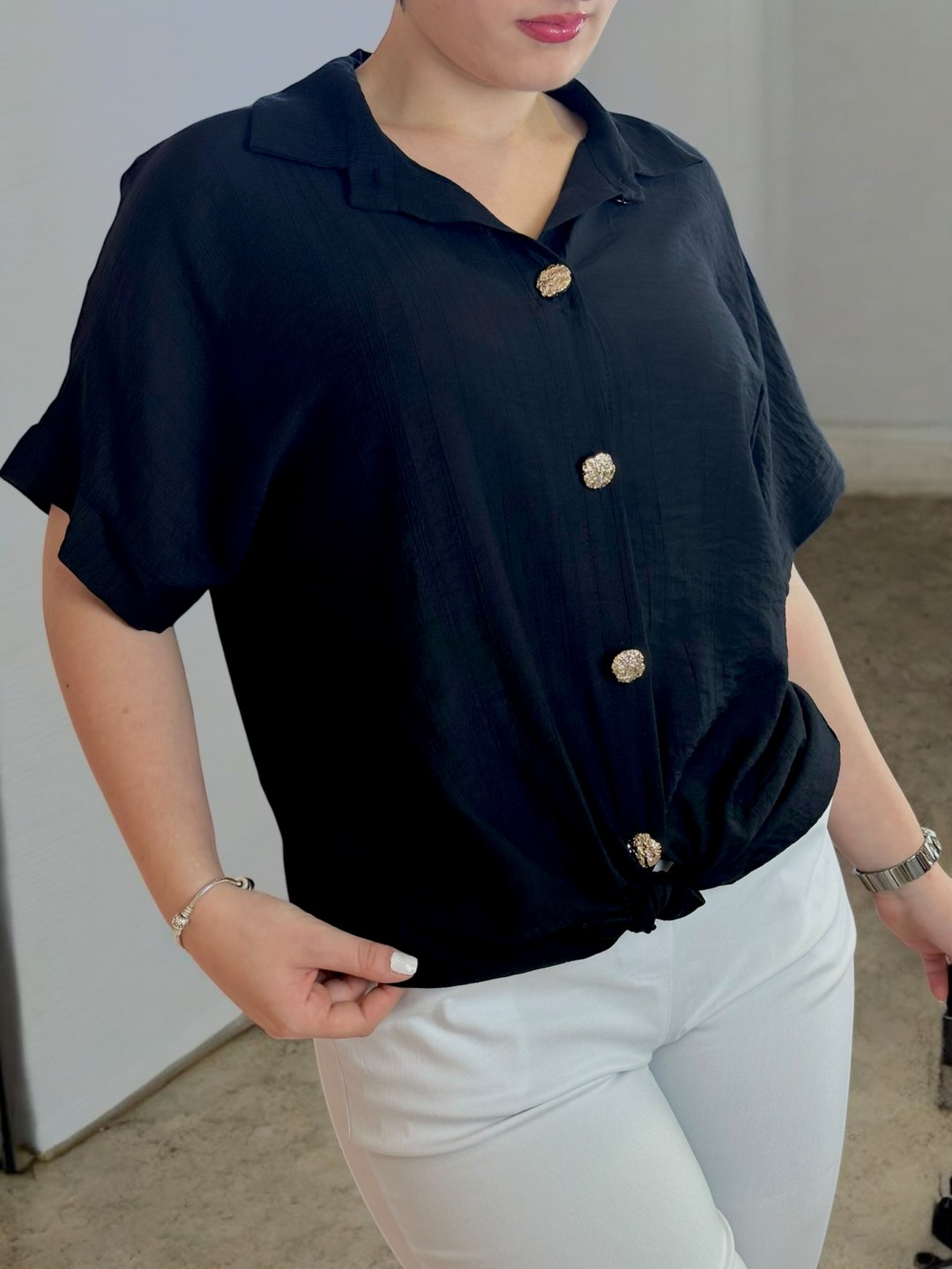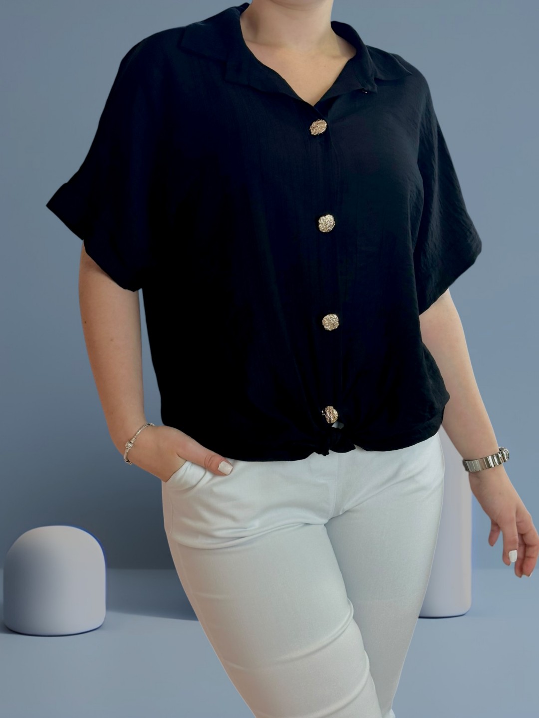Μεταμορφώστε το στυλ σας με αυτό το γυναικείο πουκάμισο plus size με δέσιμο. Φτιαγμένο από 84% βισκόζη και 16% polimide, σας προσφέρει τον απόλυτο συνδυασμό άνεσης και εφαρμογής. Διαθέσιμο σε One Size.