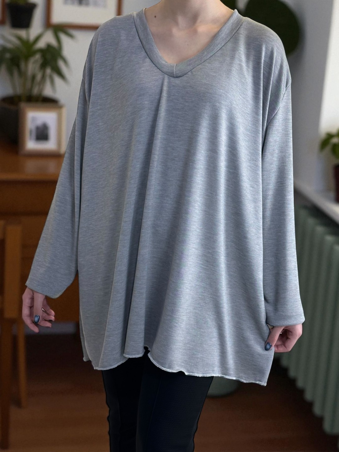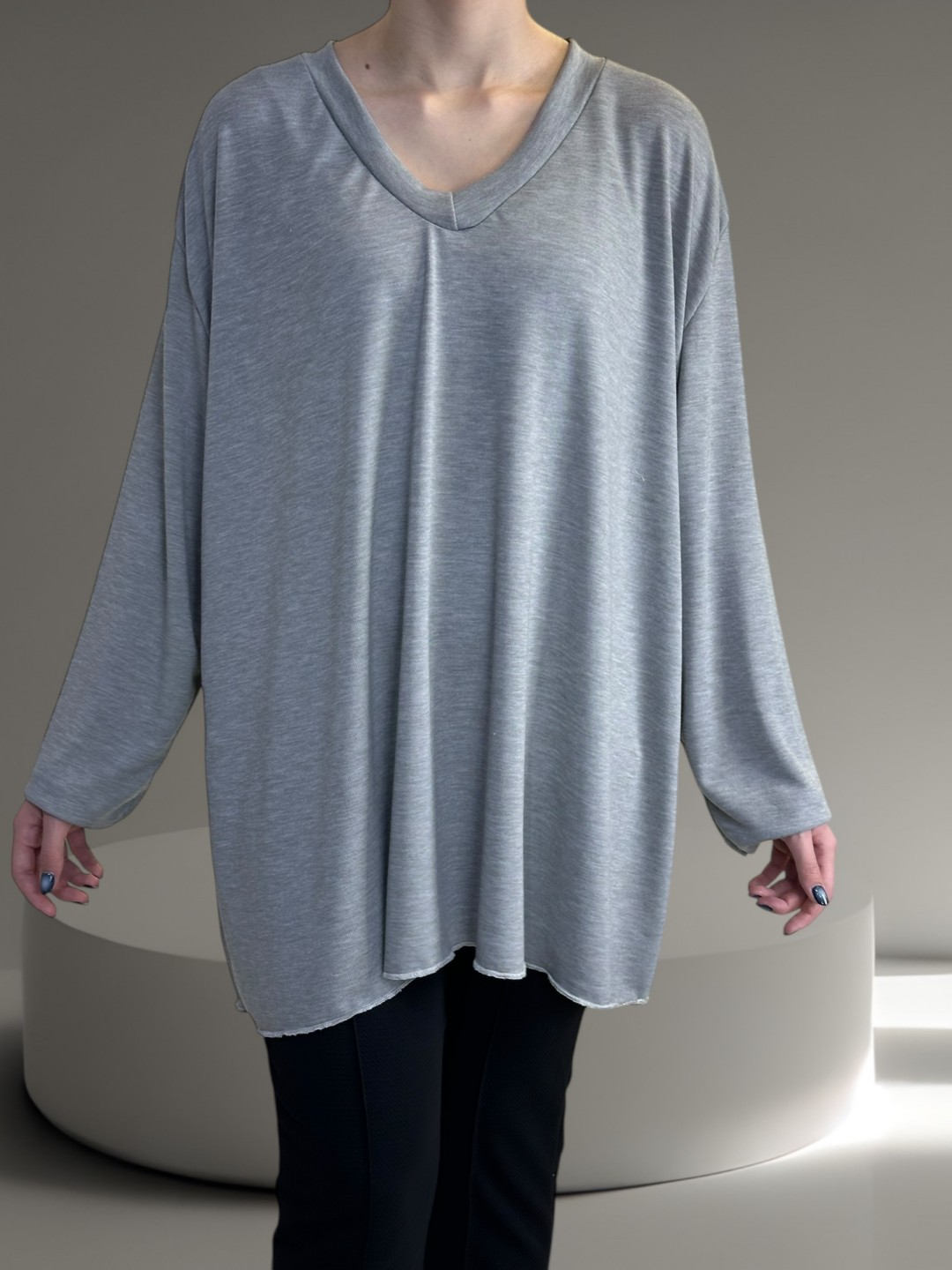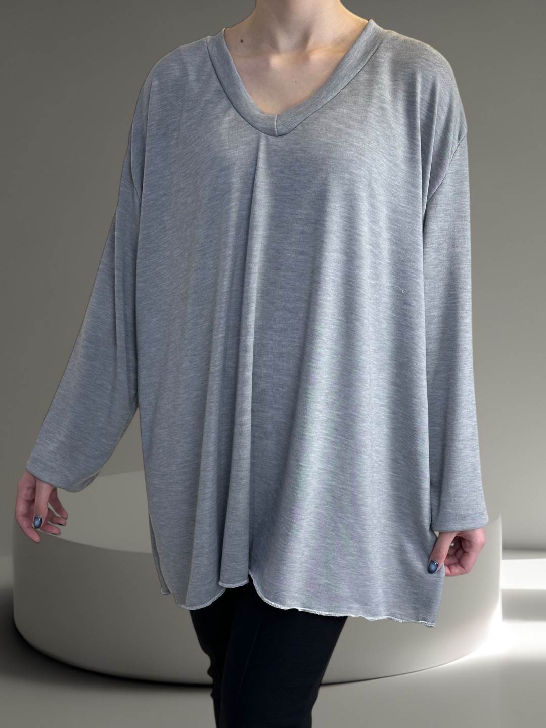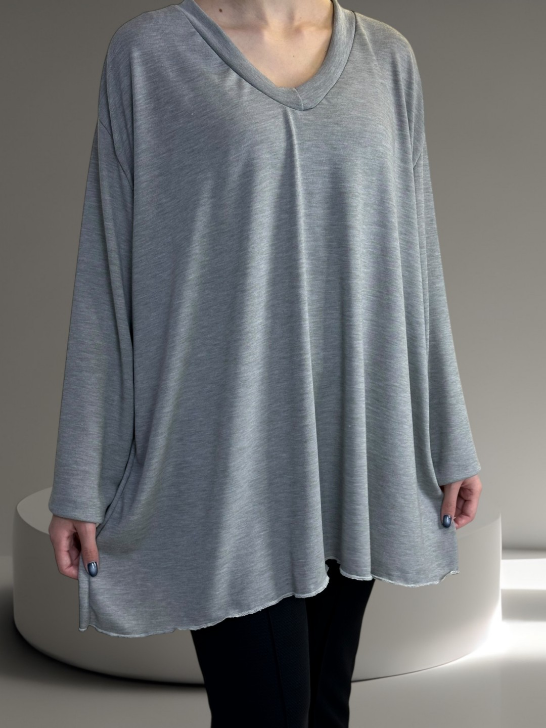 Ελκυστική και αέρινη, η ελαστική μπλούζα με V απευθύνεται στις γυναίκες που επιθυμούν καθημερινή κομψότητα. Ευφυές μίγμα υλικών για άνεση και αντοχή. Για plus size γυναίκες, διατίθεται σε one size μέγεθος.