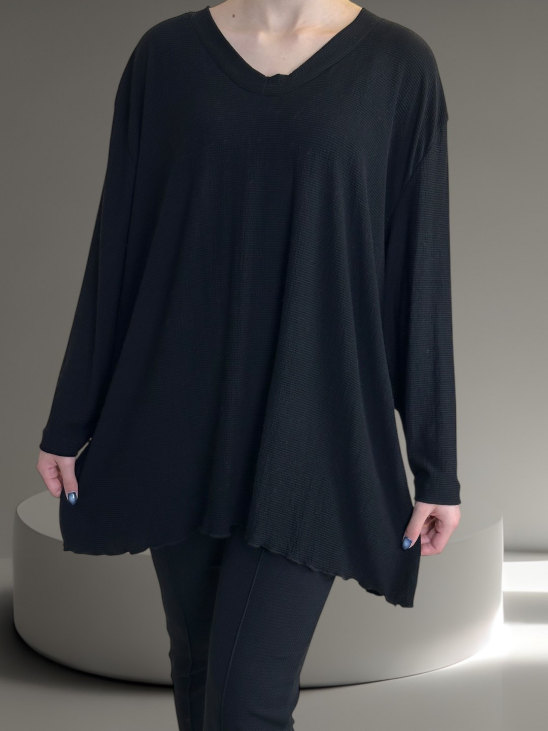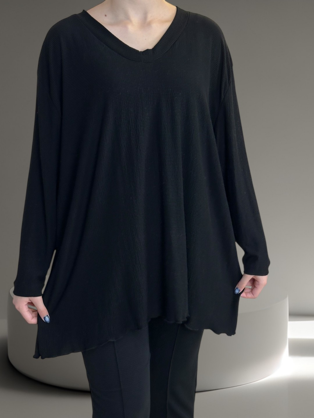 Κάντε δική σας την καθημερινή κομψότητα με την ελαστική μπλούζα V-neck plus size. Μια μοναδική μπλούζα από 5% ελαστάν, 50% ακρυλικό, 25% βισκόζη και 20% πολυεστέρας που προσφέρει μια άνετη και ζεστή εφαρμογή. Μεγέθη One size.