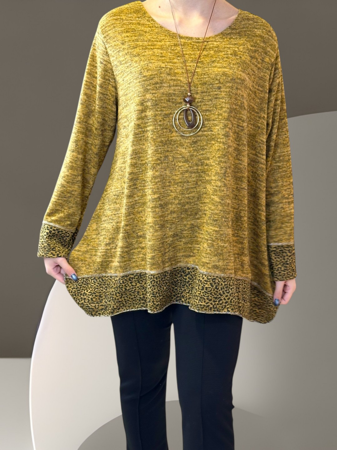Αναδείξτε την κομψότητά σας με αυτή την μπλούζα plus size με κοσμηματικό κολιέ. Μια πολυτελής επιλογή από 95% viscose και 5% elastane, εξασφαλίζοντας άνεση και εφαρμογή. Διατίθεται σε One size μέγεθος!