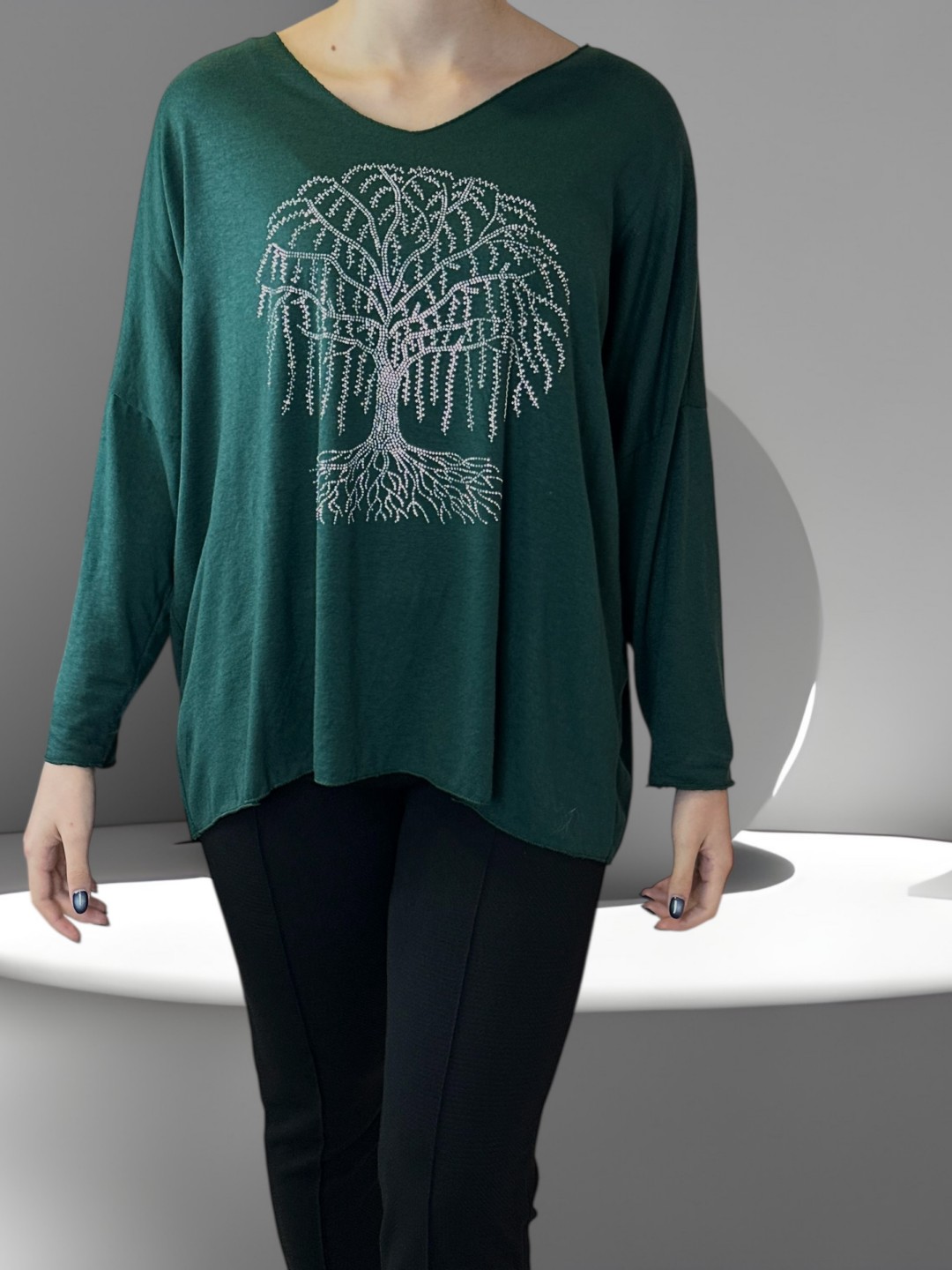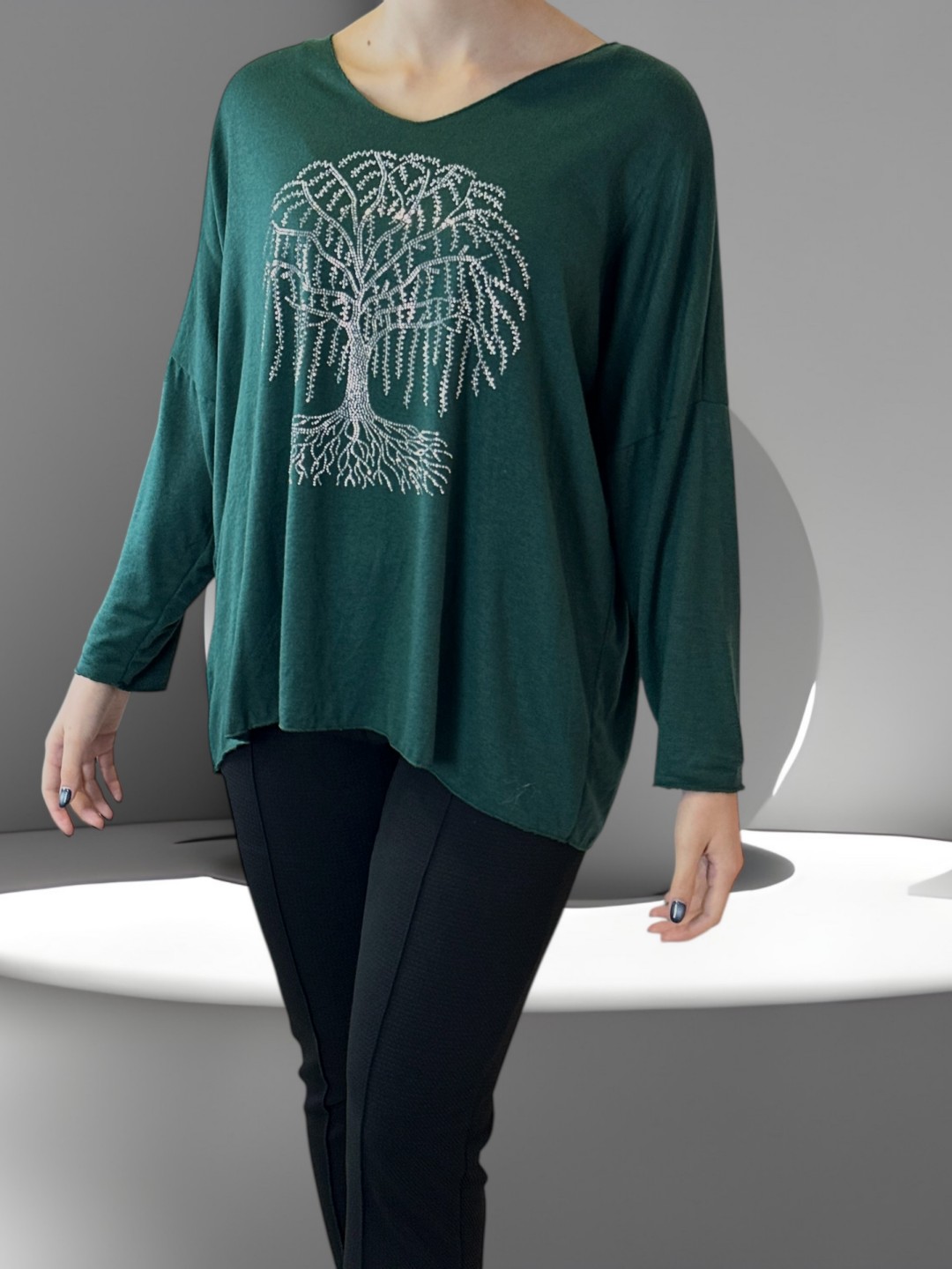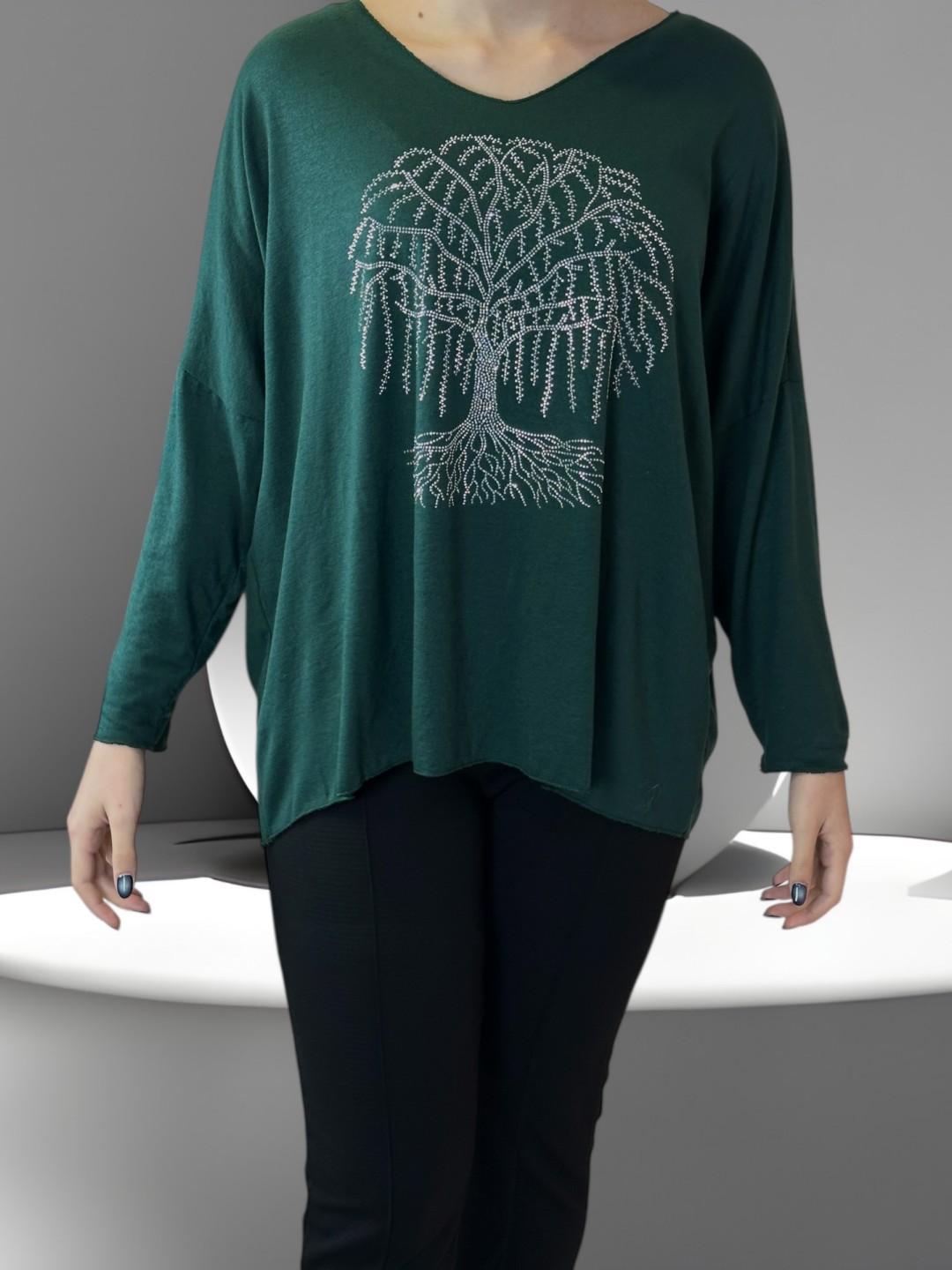 Αναδείξτε την θηλυκότητά σας με αυτή την chic μπλούζα plus size με στρας σχέδιο δέντρου. Σε One size που ταιριάζει σε όλα τα σωματότυπα, είναι τόσο ευκολοφόρετη όσο και εντυπωσιακή!
