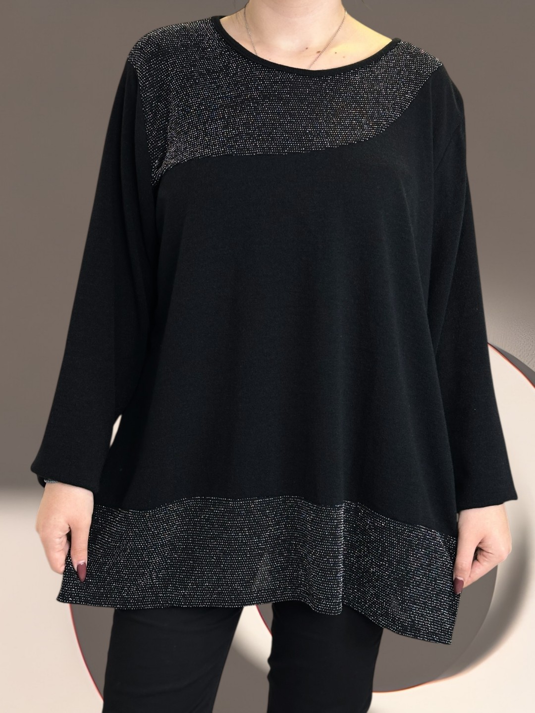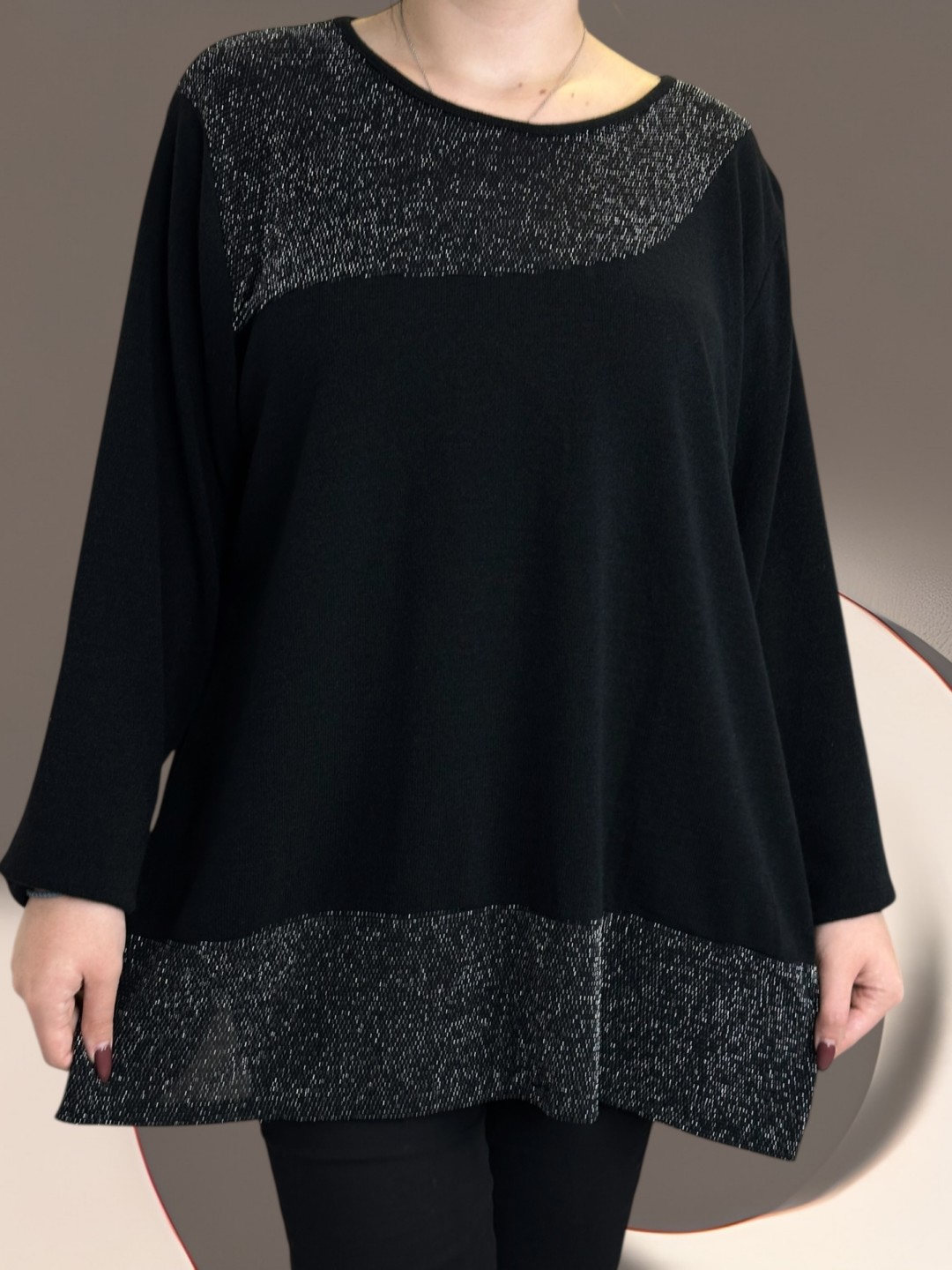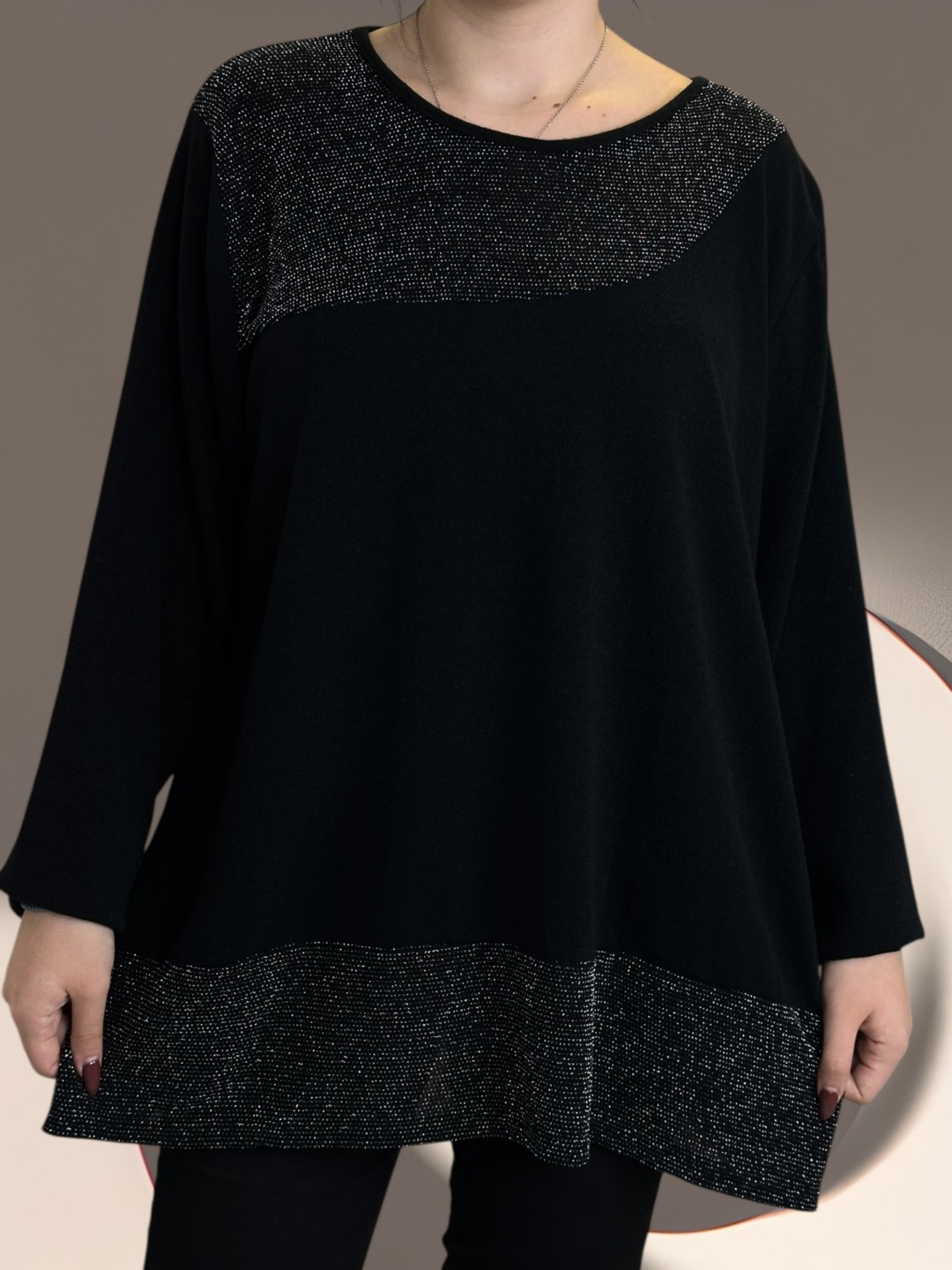 Αναβαθμίστε το καθημερινό σας στυλ με την μπλούζα plus size με διακριτική λάμψη lurex. Εξαιρετικά άνετη χάρη στην σύνθεση της 15% viscoza, 5% ελασταν και 50% poliester, προσφέροντας ελευθερία κινήσεων. Ιδανική επιλογή για όλες τις ώρες. One size για κάθε τύπο σώματος.