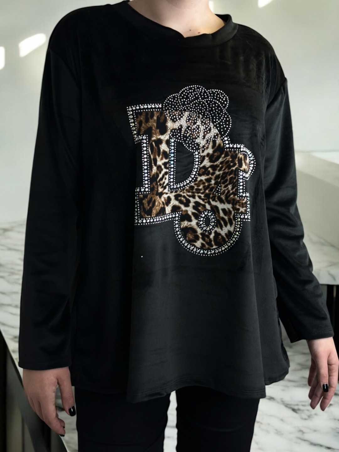 Μπλούζα με γράμματα από βελούδινη