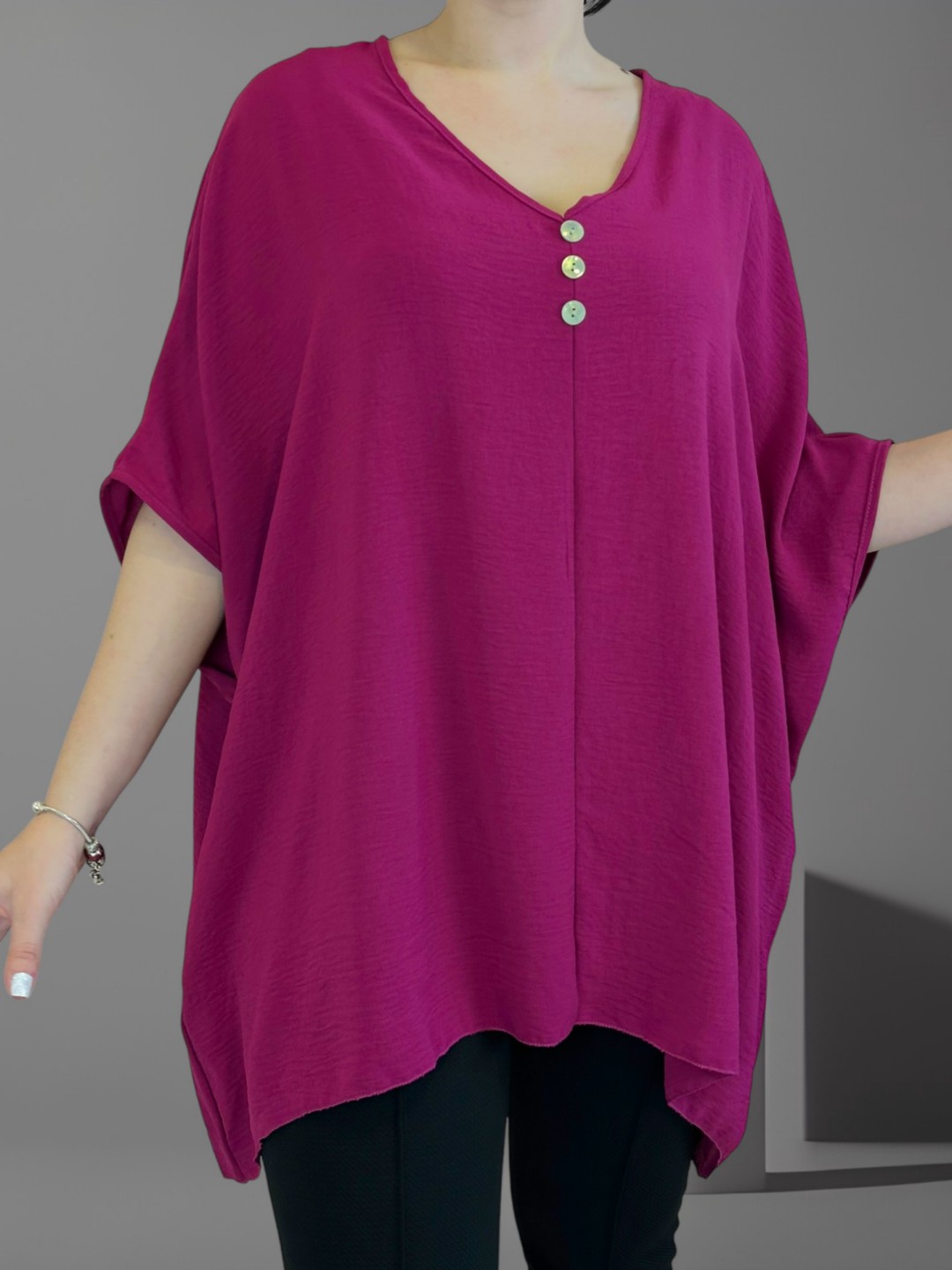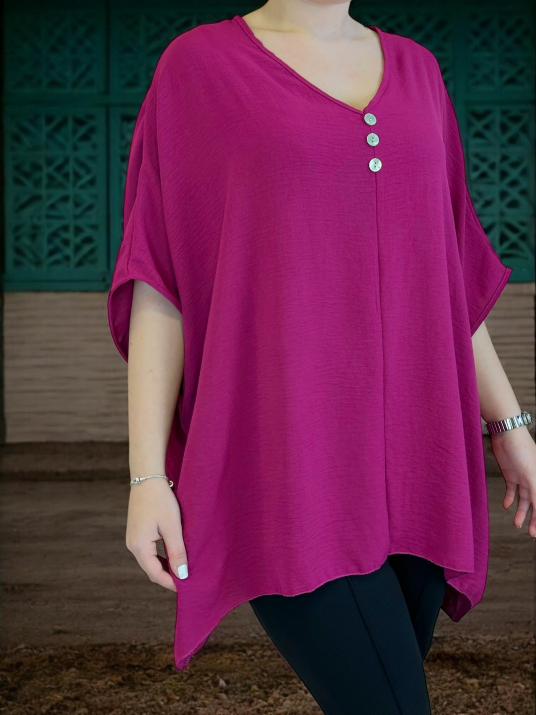 Κομψή μπλούζα plus size, με ξεχωριστή λεπτομέρεια κουμπιών στο μπροστινό μέρος. Ιδανική για να αναδείξει τη θηλυκότητά σας, προσφέρει άνεση και στυλ. Διατίθεται σε μέγεθος Οne size για πρακτικότητα.
