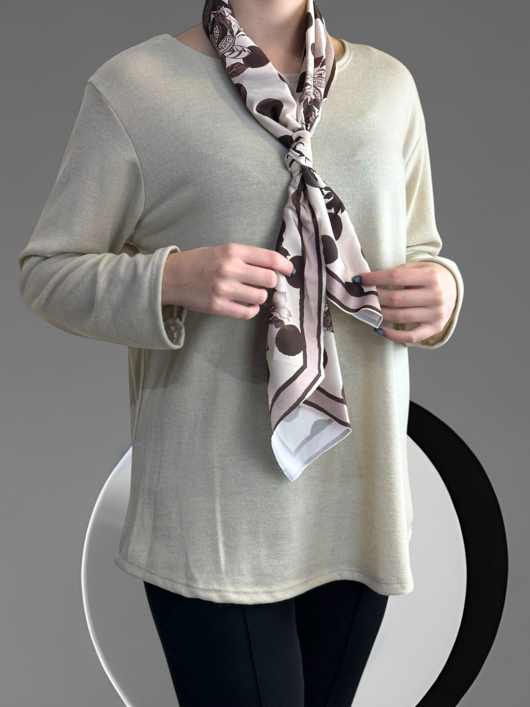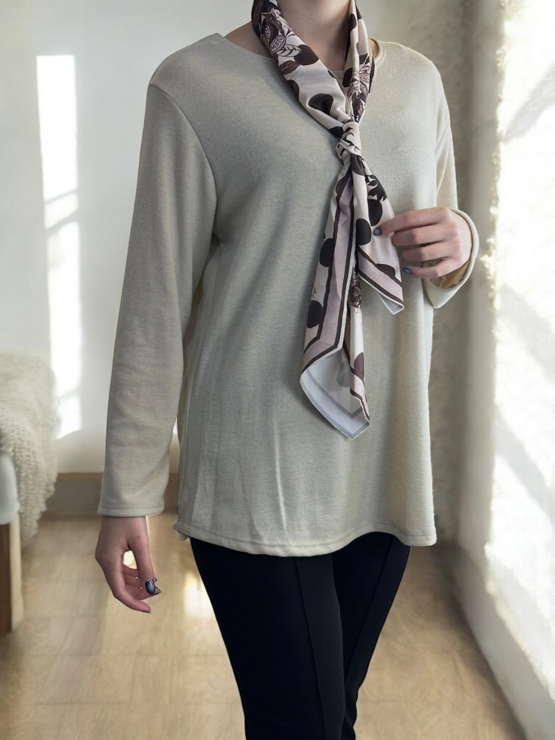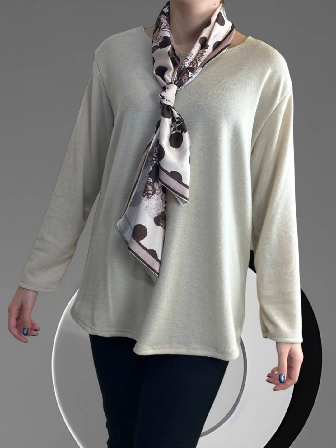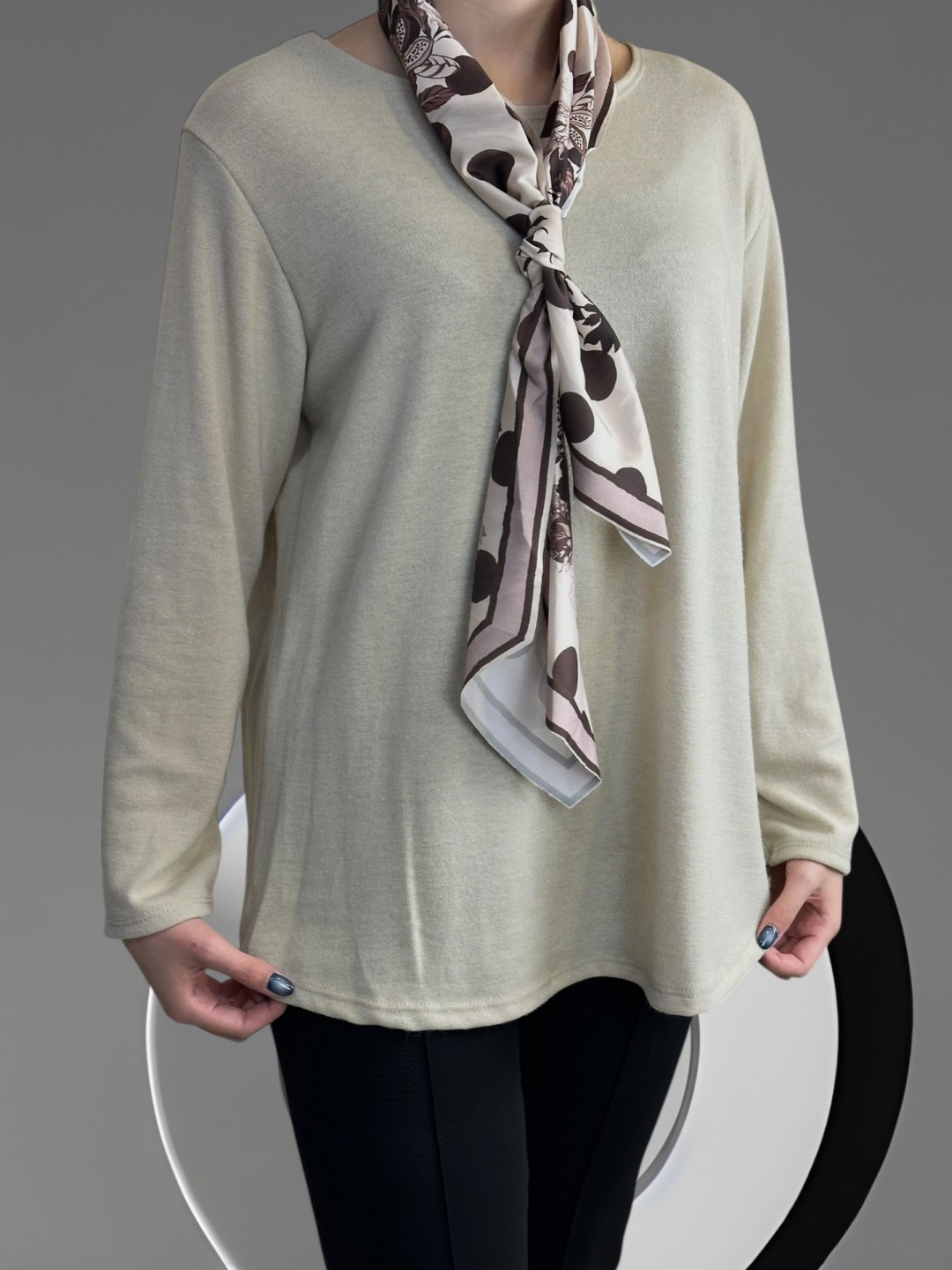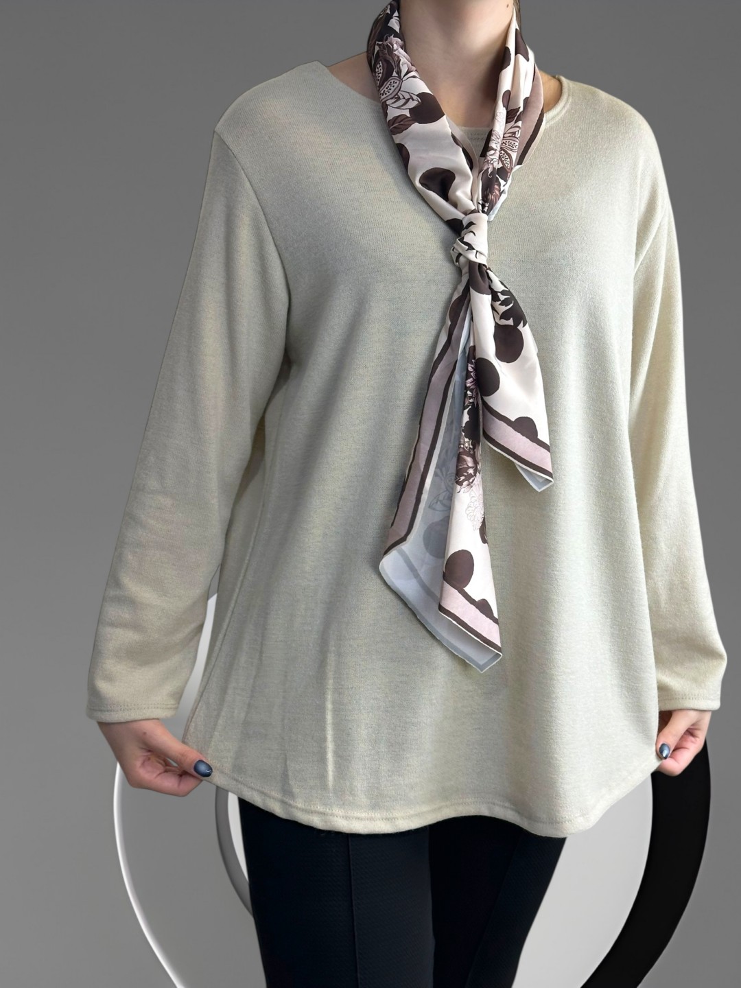 Μπλούζα με λαιμόκοψη και φουλάρι