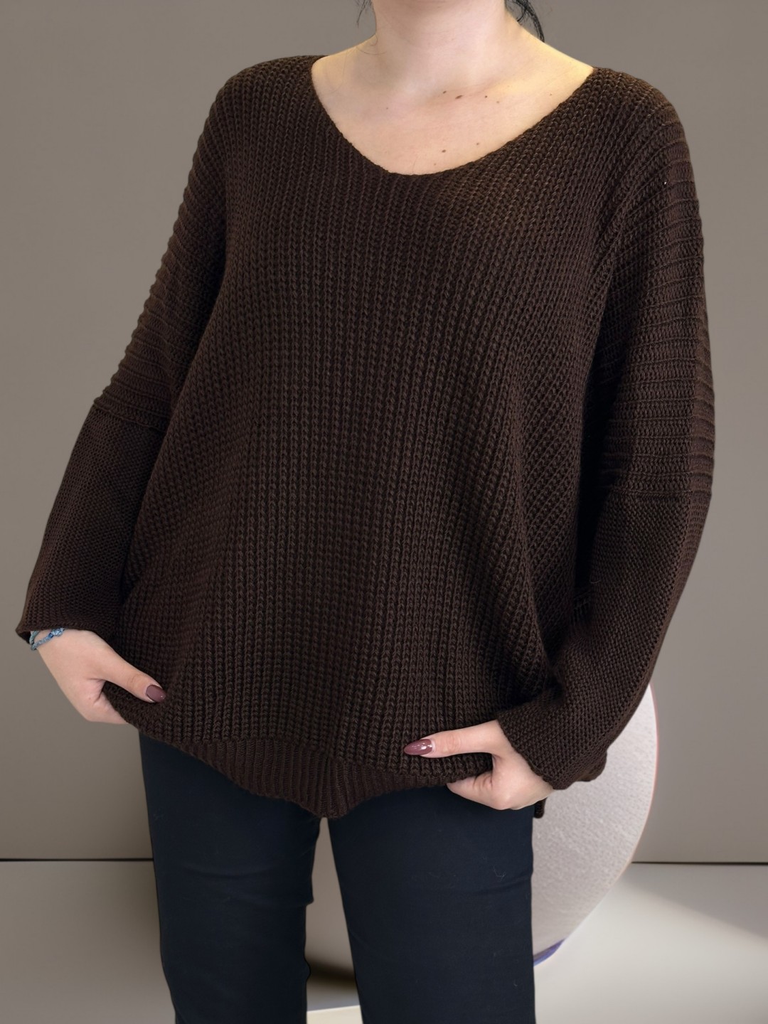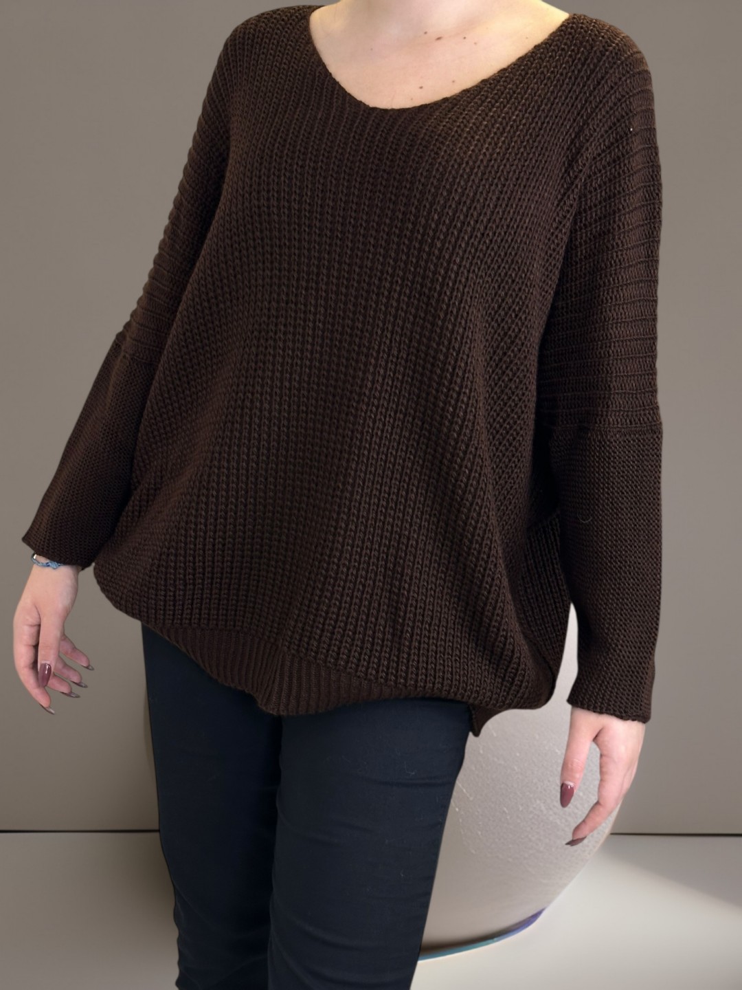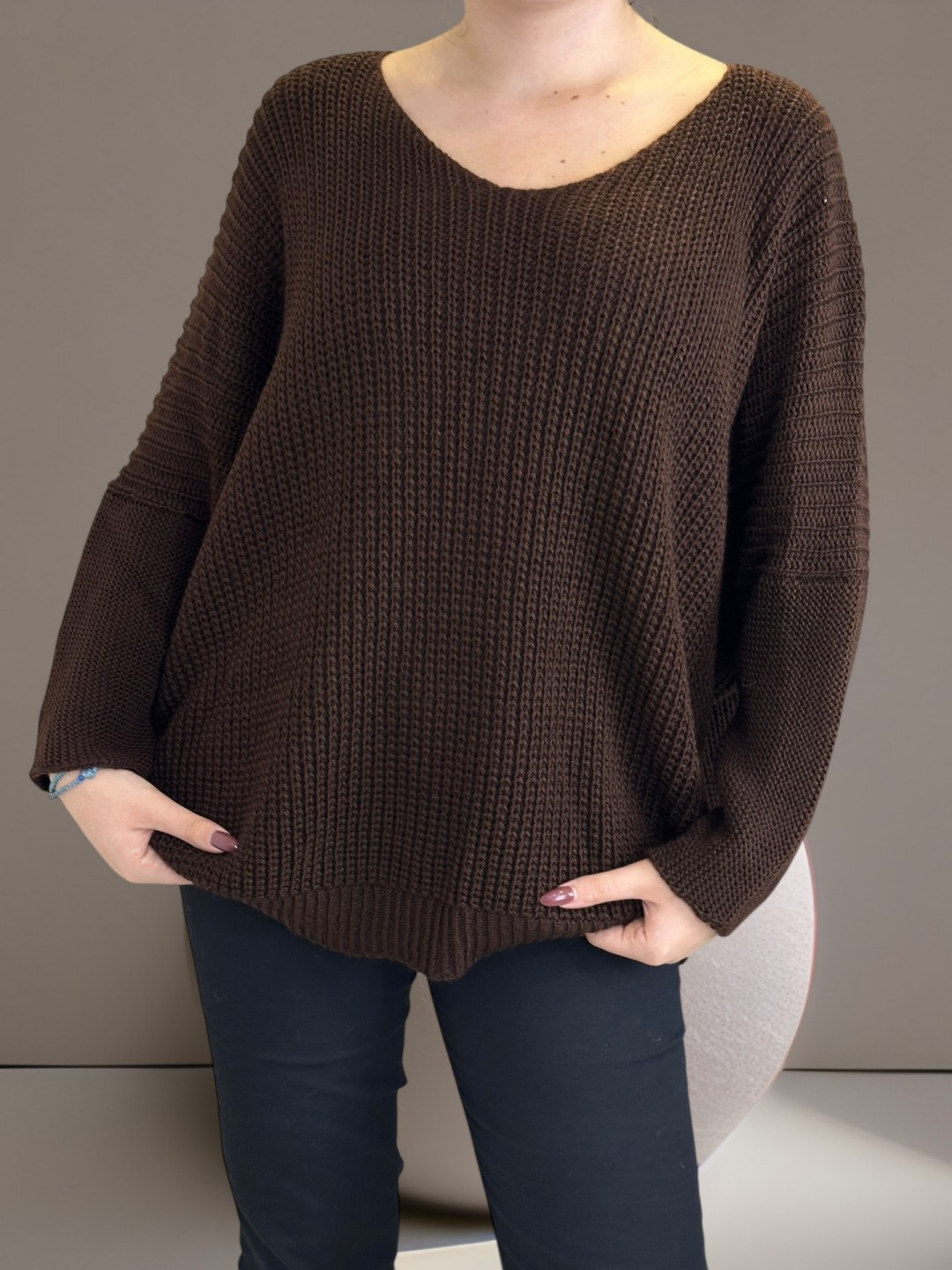 Μπλούζα πλεκτή plus size για εντυπωσιακό layering. Με V-λαιμόκοψη που αναδεικνύει τον λαιμό σας. Είναι κατασκευασμένη από 100% acrilico, εξασφαλίζοντας απαλότητα και άνεση. Μέγεθος One Size.