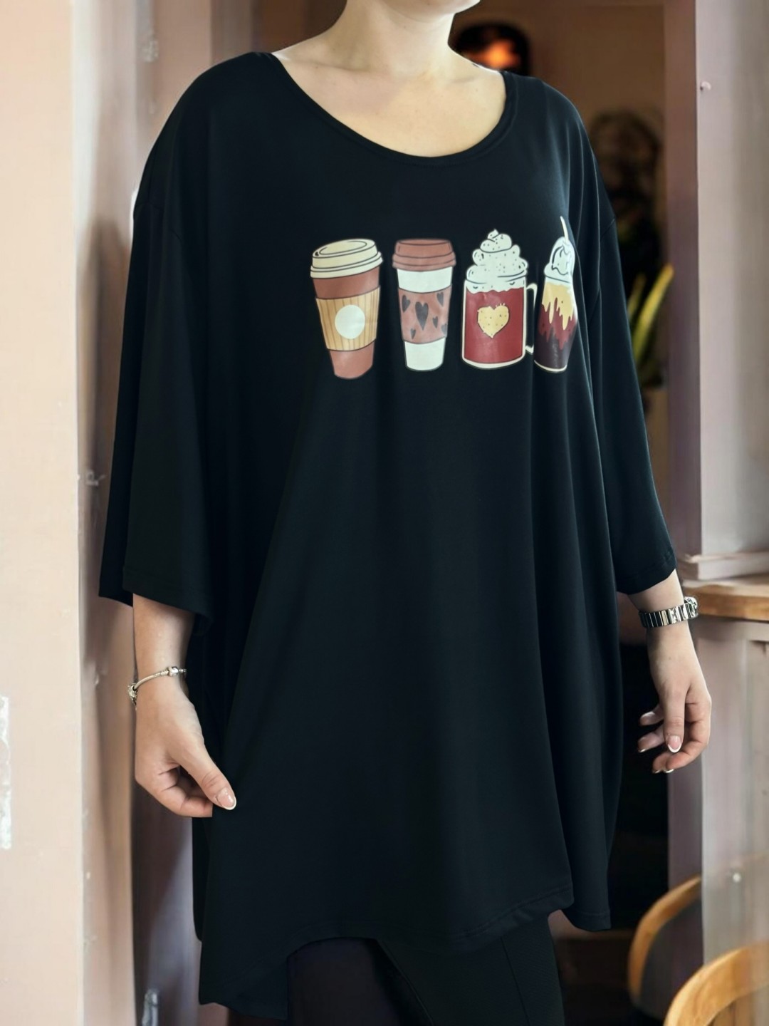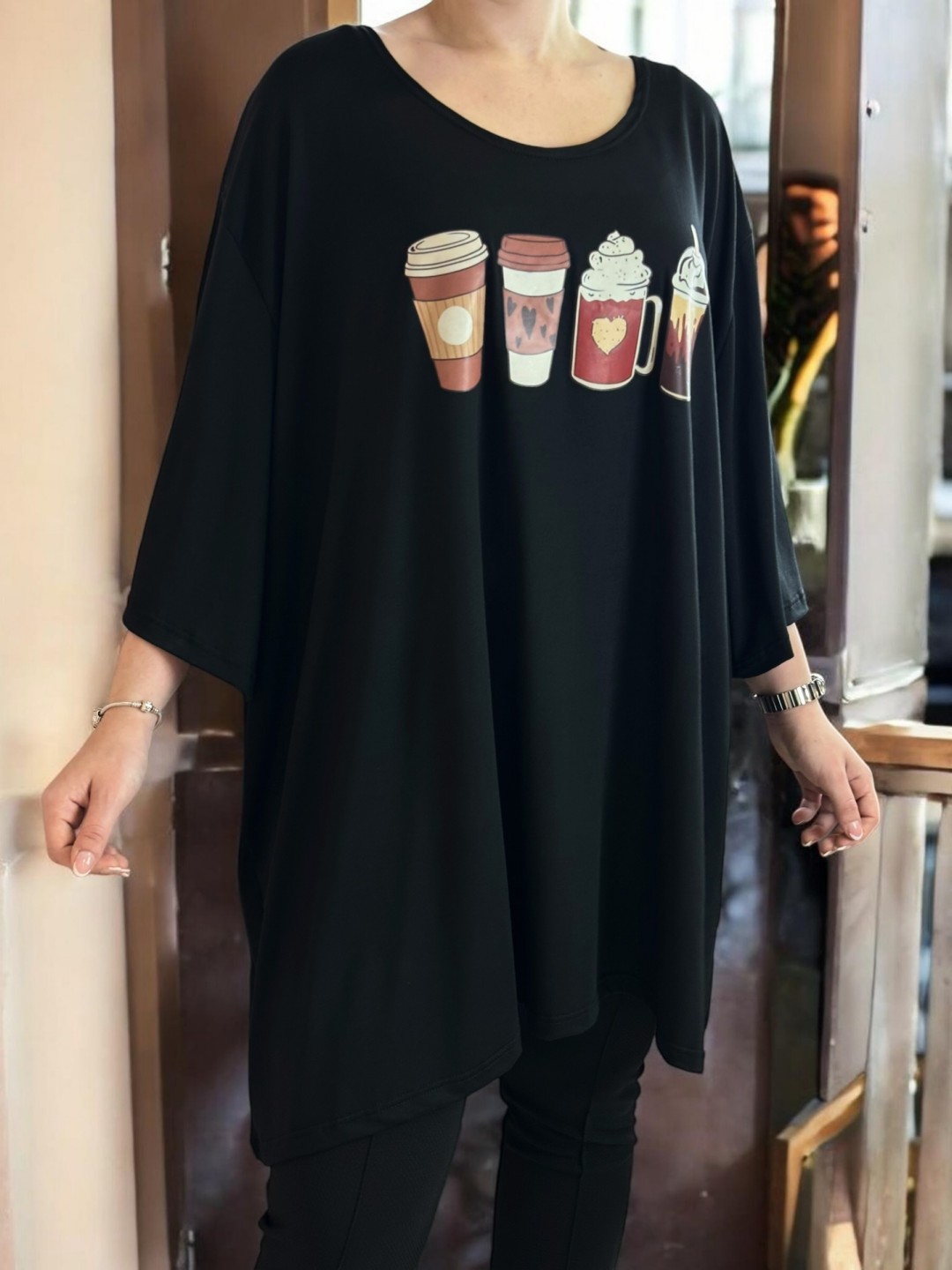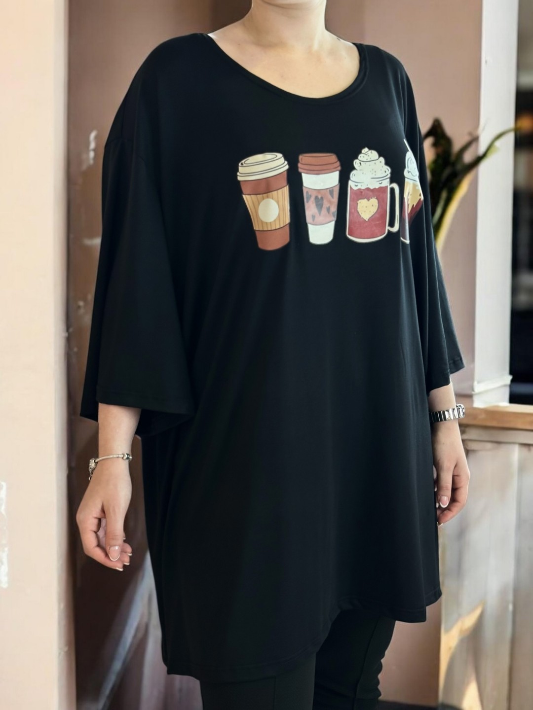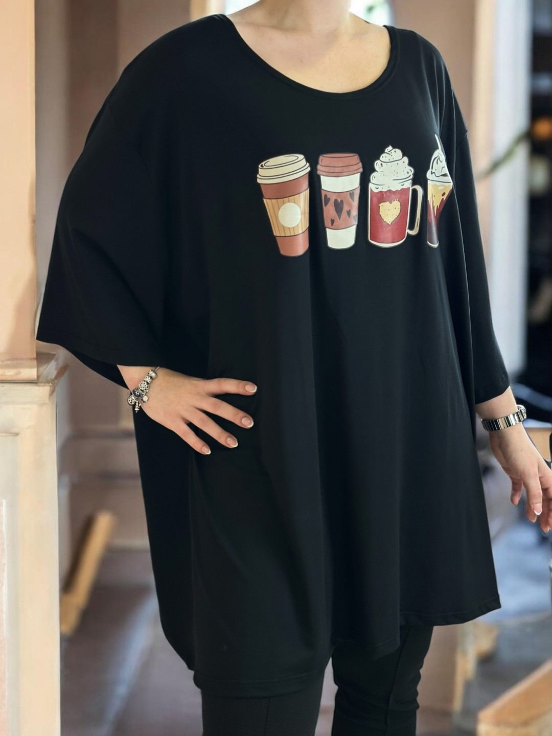 Μπλουζοφόρεμα με χαρούμενο σχέδιο καφέδων