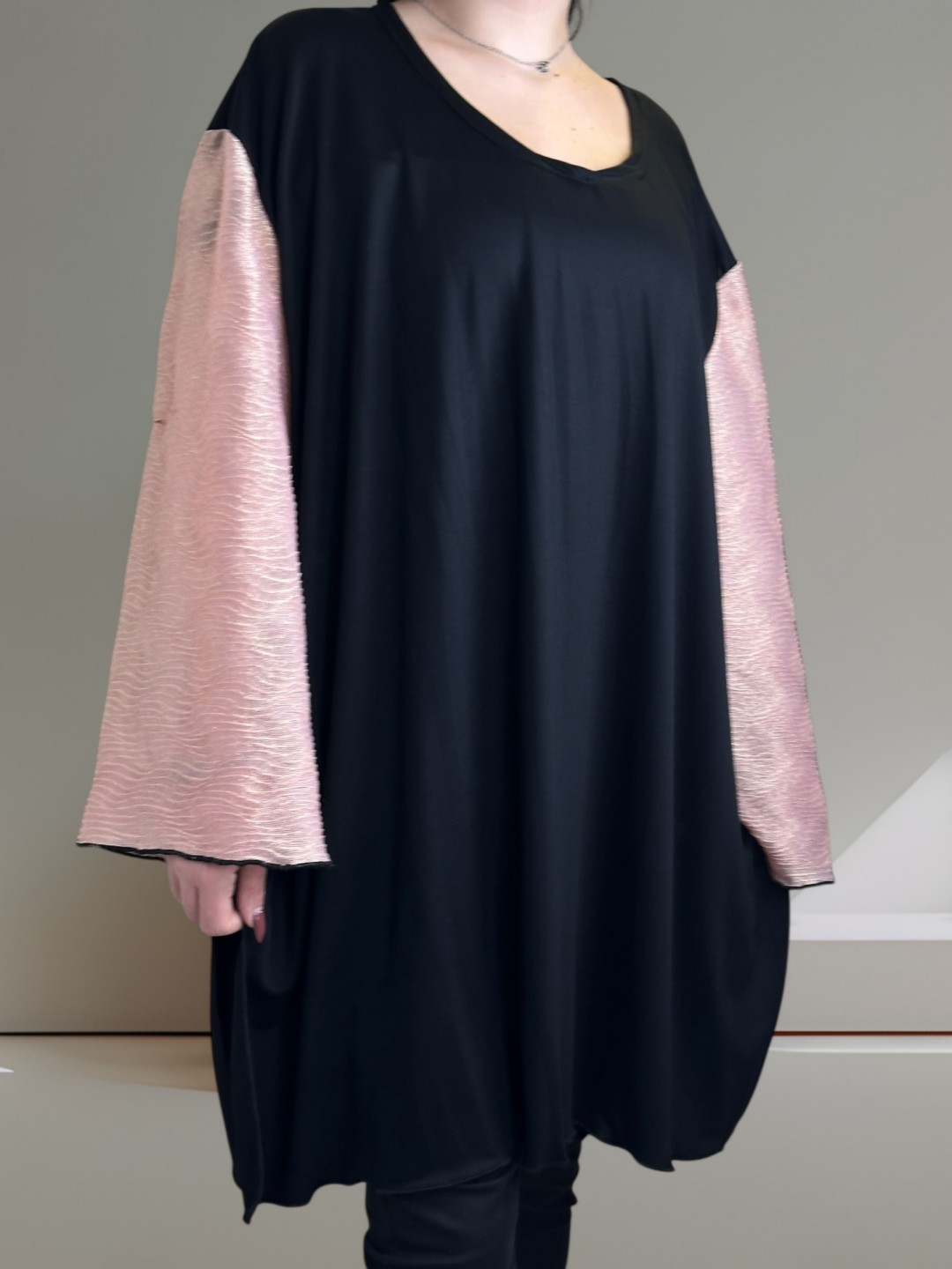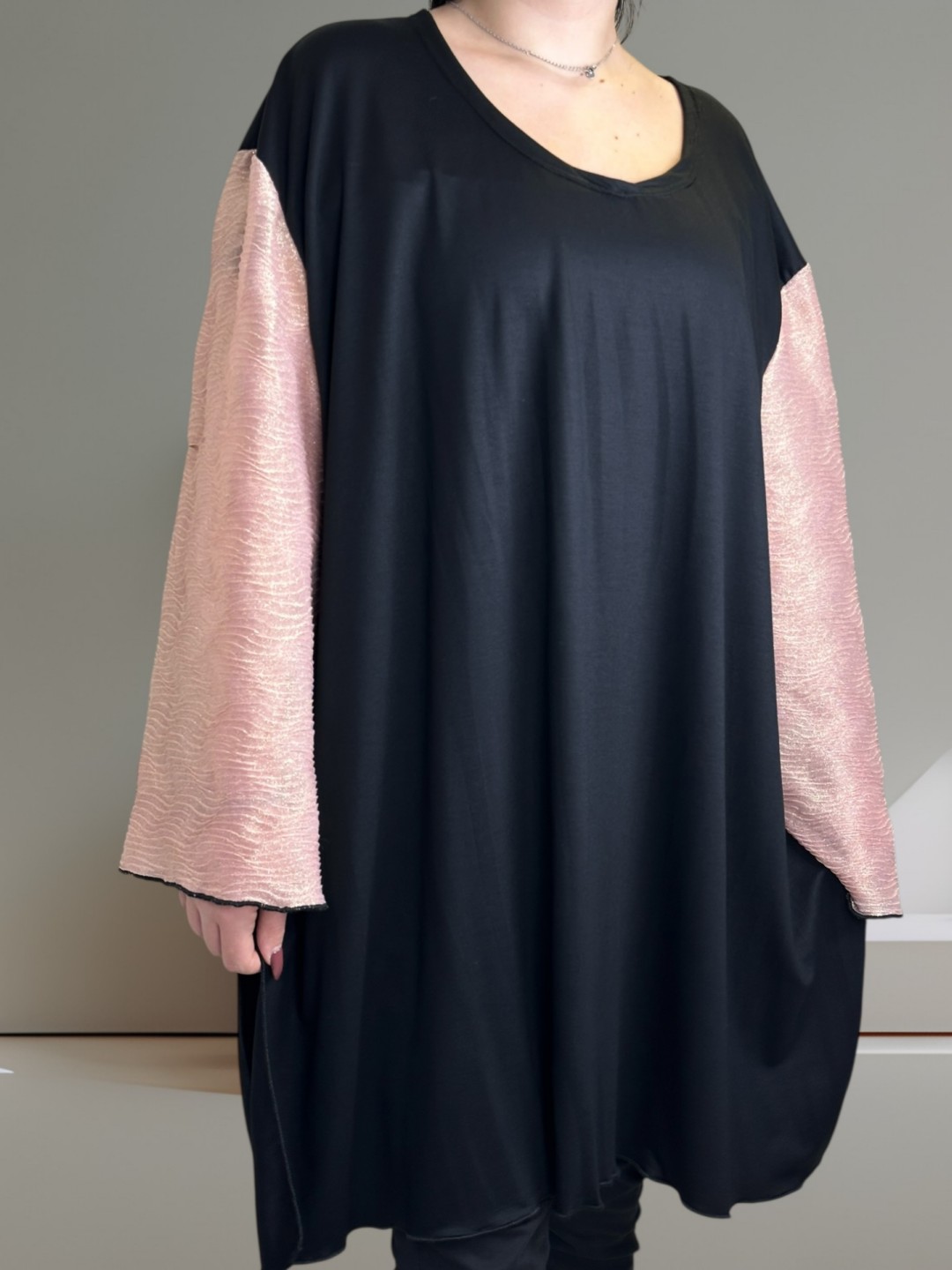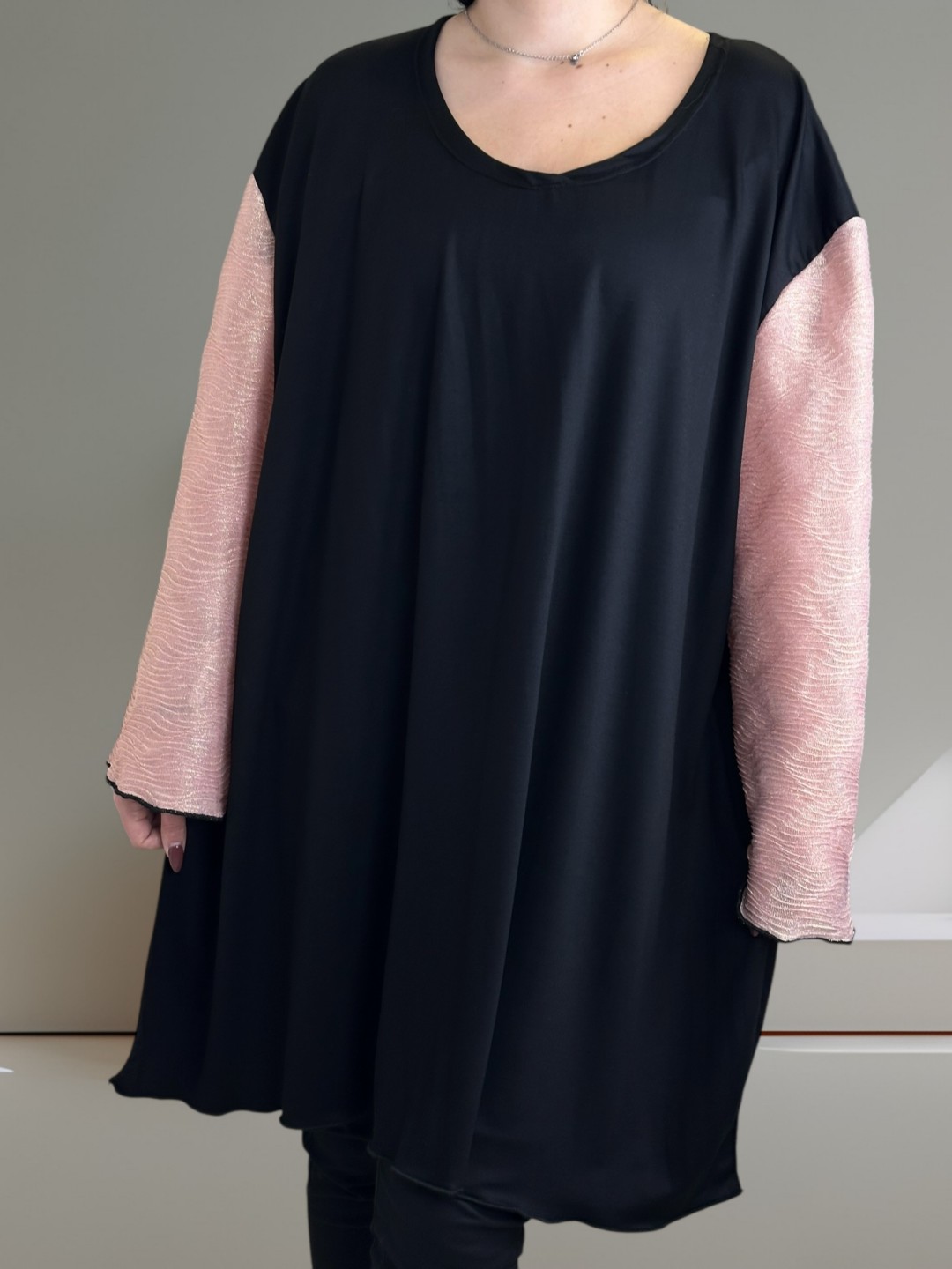 Μπλουζοφόρεμα με ροζ μανίκια και λάμψη λουρέξ
