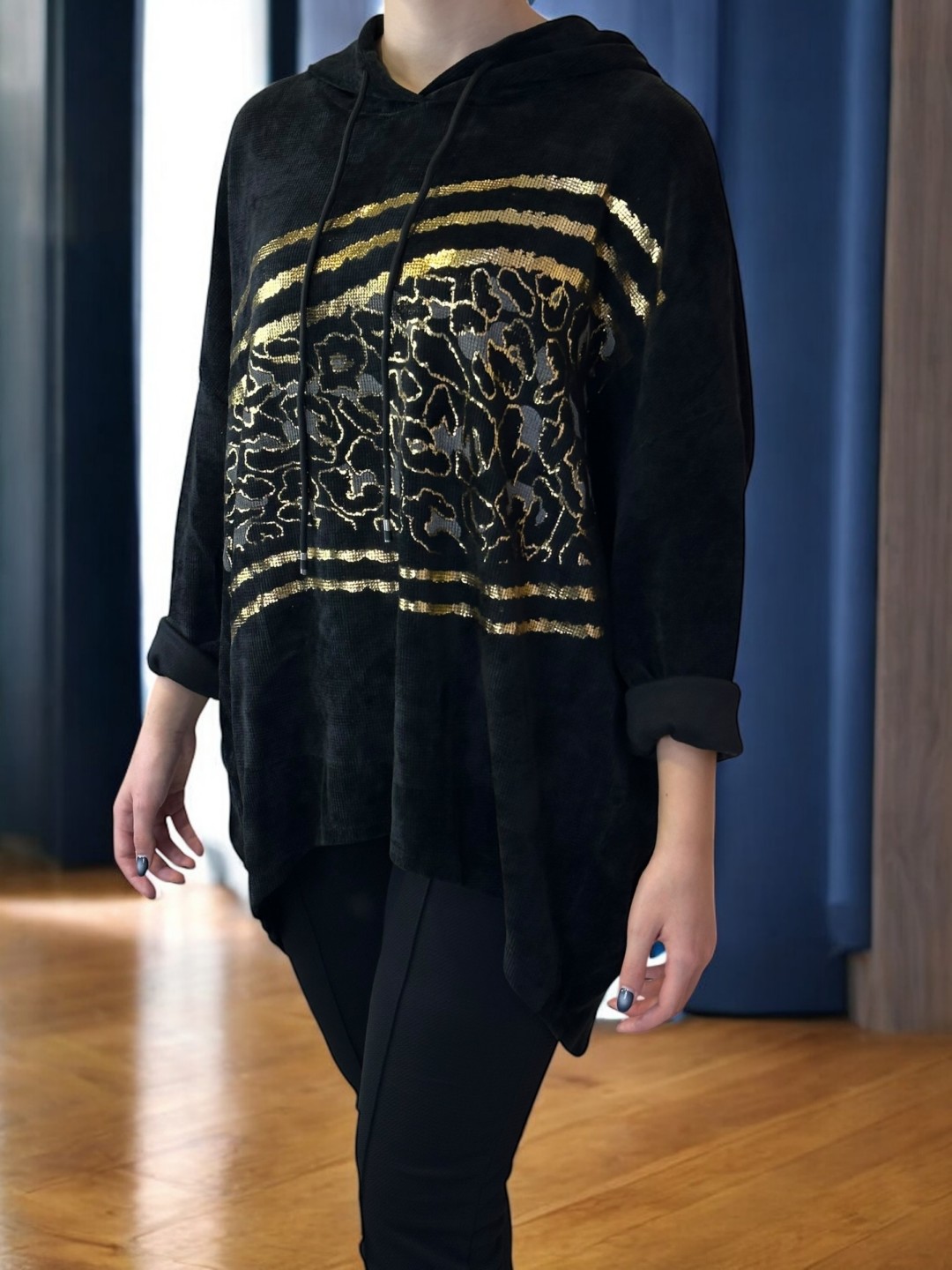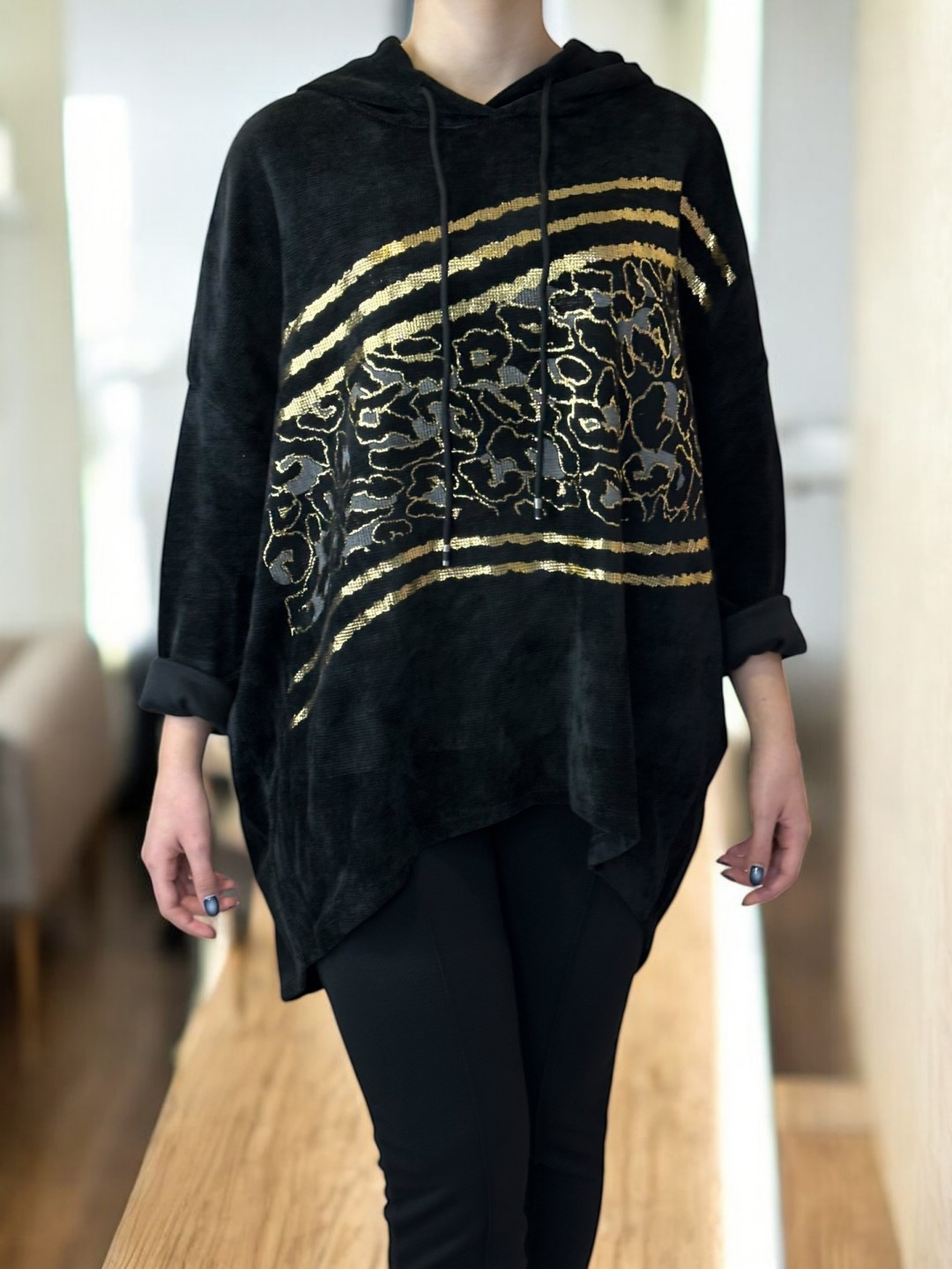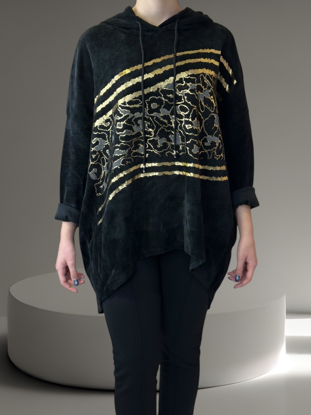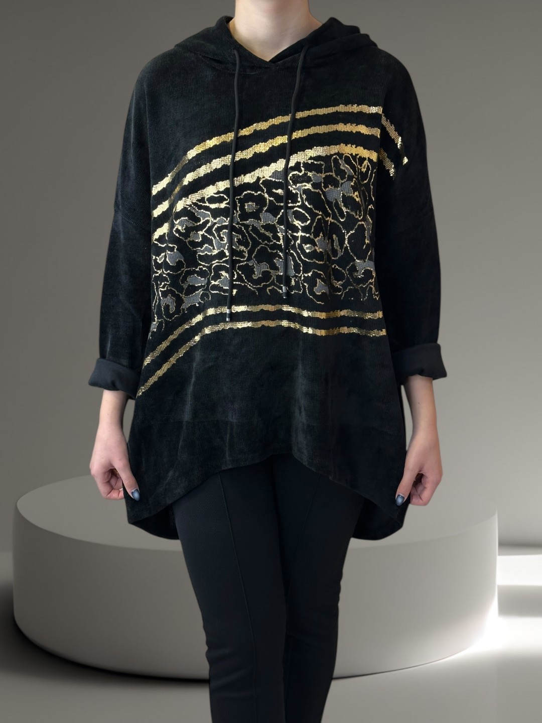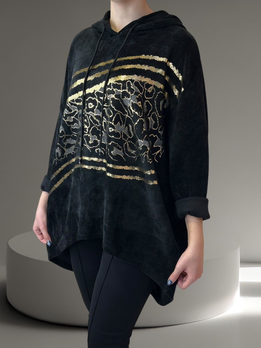 Αναβαθμίστε τη ντουλάπα σας με αυτό το γυναικείο φούτερ plus size! Έχει μοντέρνα στάμπα και κουκούλα για ένα χαλαρό καθημερινό look. Διατίθεται σε one size για να ταιριάζει απόλυτα σε κάθε σωματότυπο.