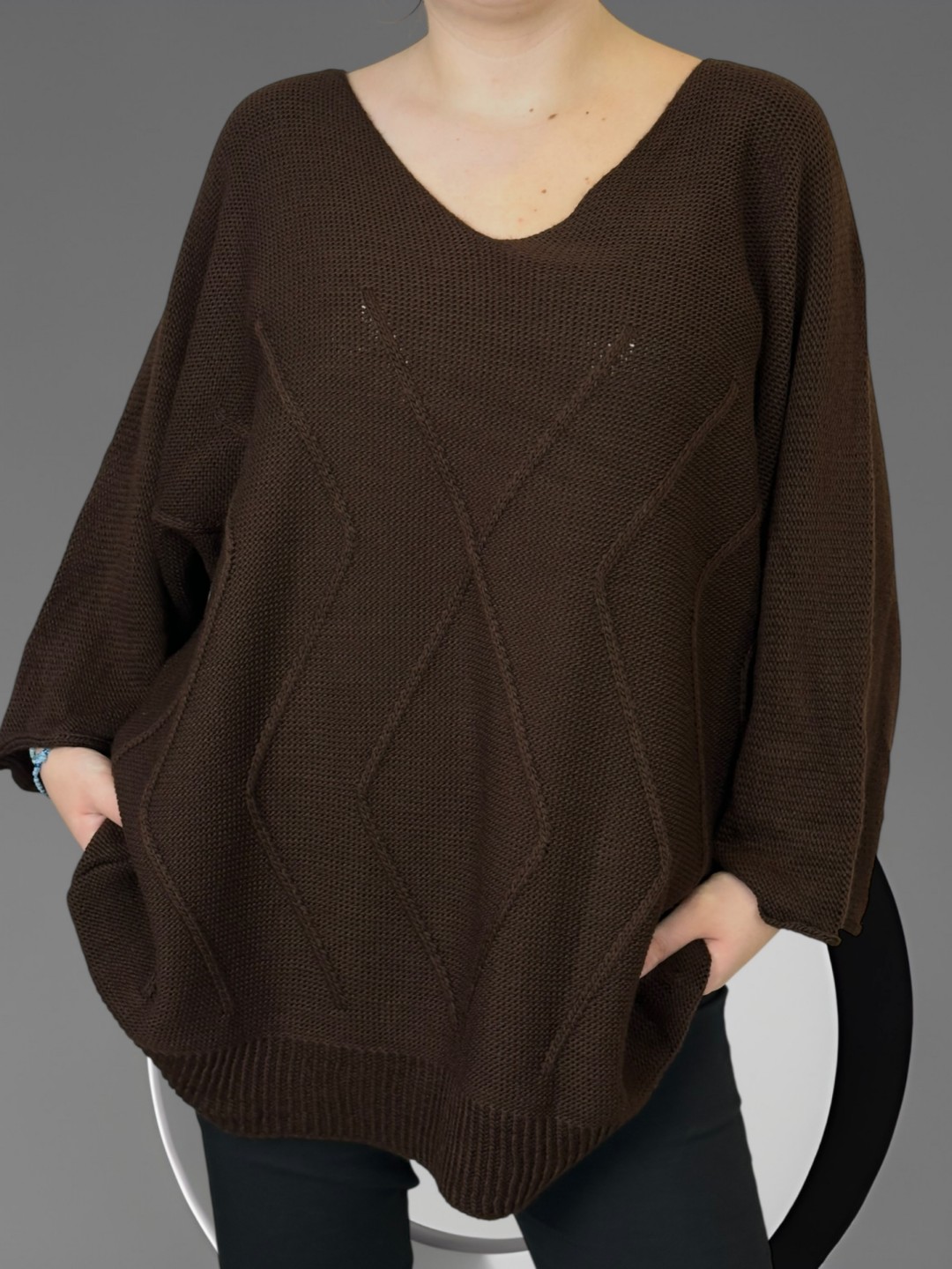 Ζεστάνετε στην κομψότητα με το γυναικείο πλεκτό πουλόβερ Cosy Glam plus size. Σχεδιασμένο για τέλεια εφαρμογή σε όλα τα μεγέθη, το One size υπόσχεται στυλ και άνεση με την πρώτη εφαρμογή.