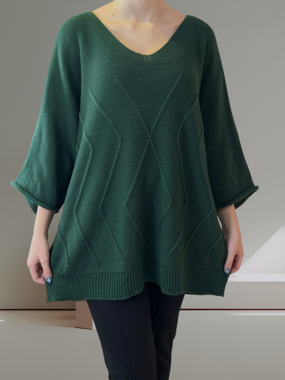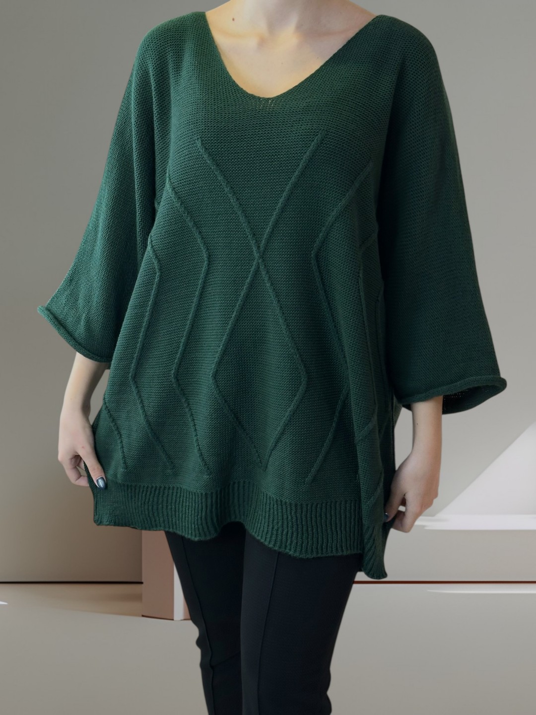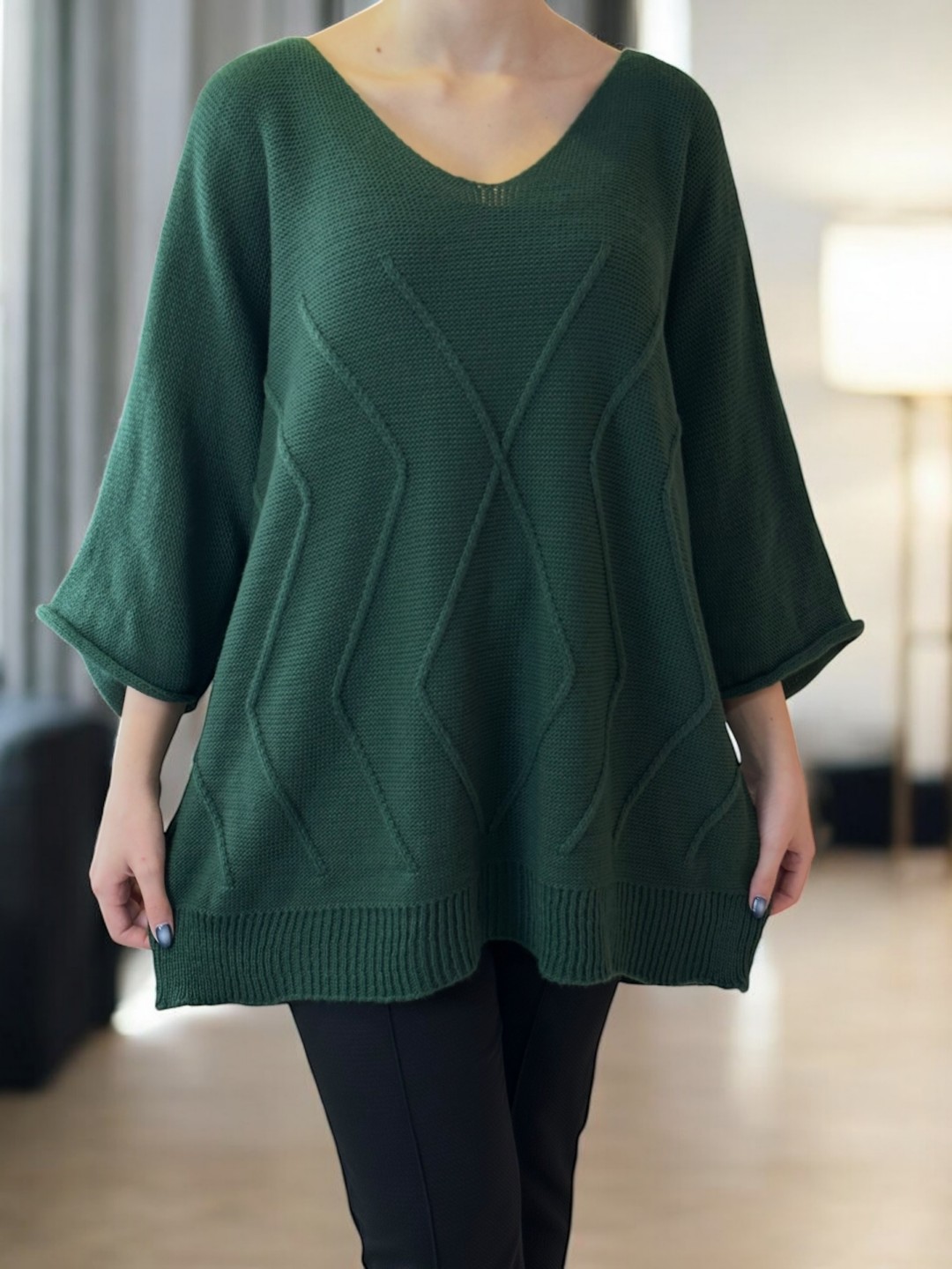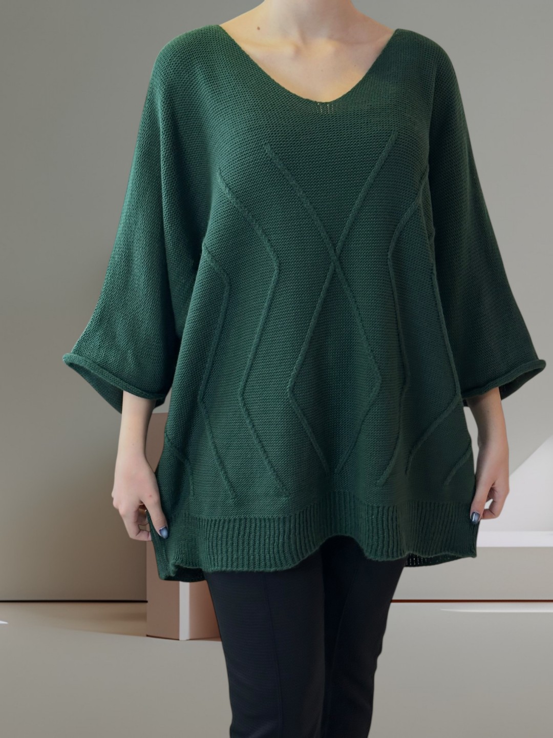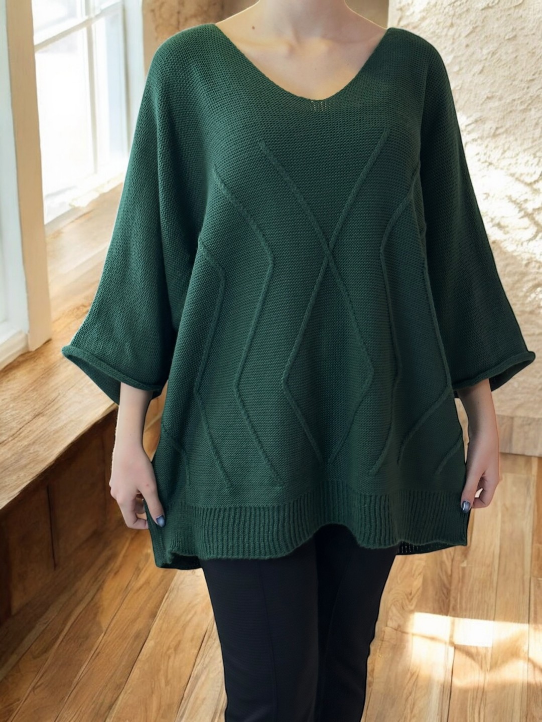 Για εσάς που αναζητάτε γοητεία και άνεση, το Cosy πλεκτό plus size πουλόβερ είναι το τέλειο κομμάτι! Σχεδιασμένο με 100% acrilico υλικό, προσφέρει ζεστασιά και στυλ σε κάθε σας εμφάνιση. Διαθέσιμο σε One size!