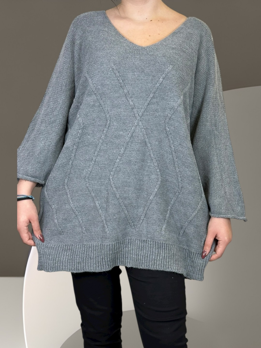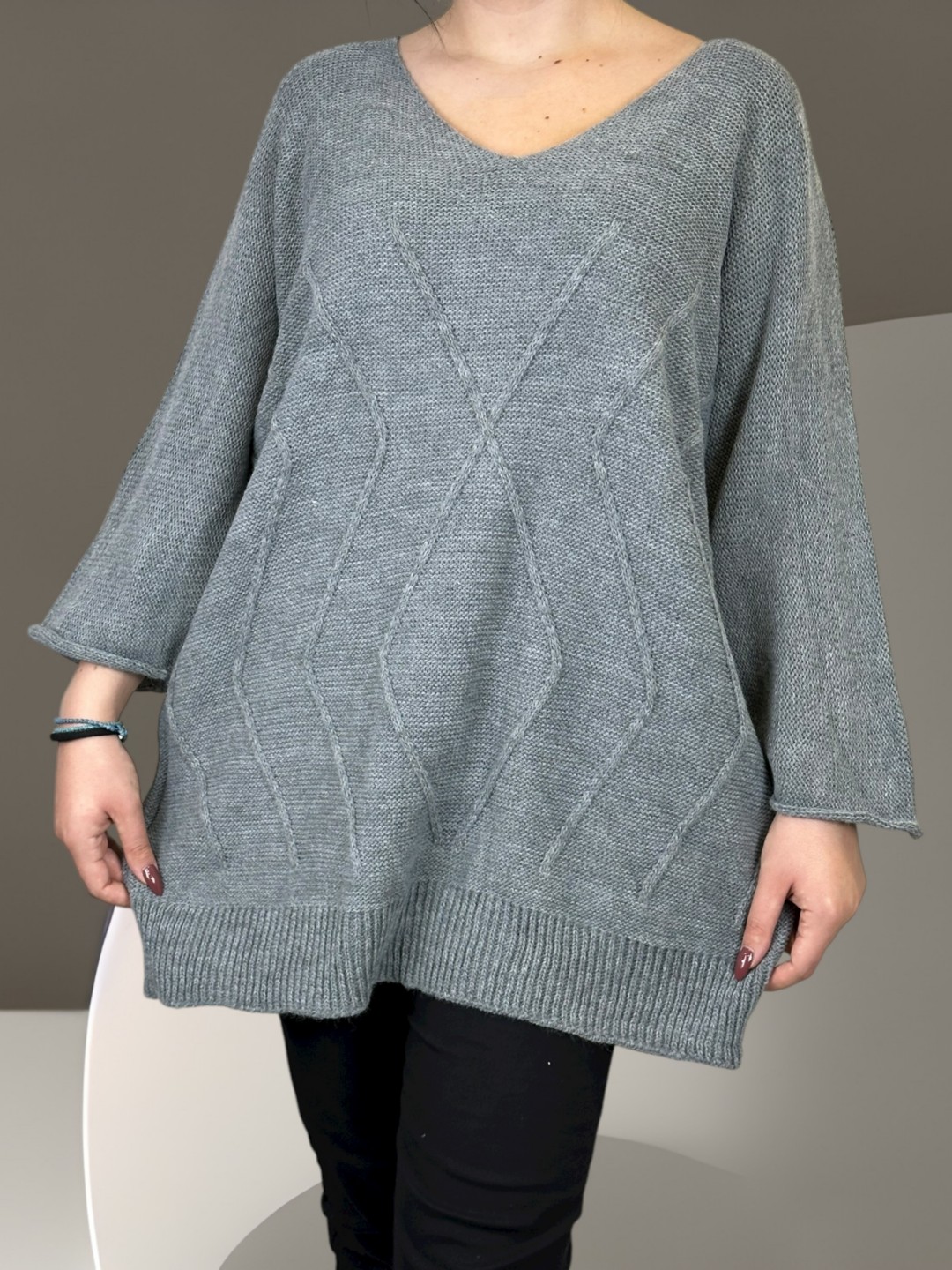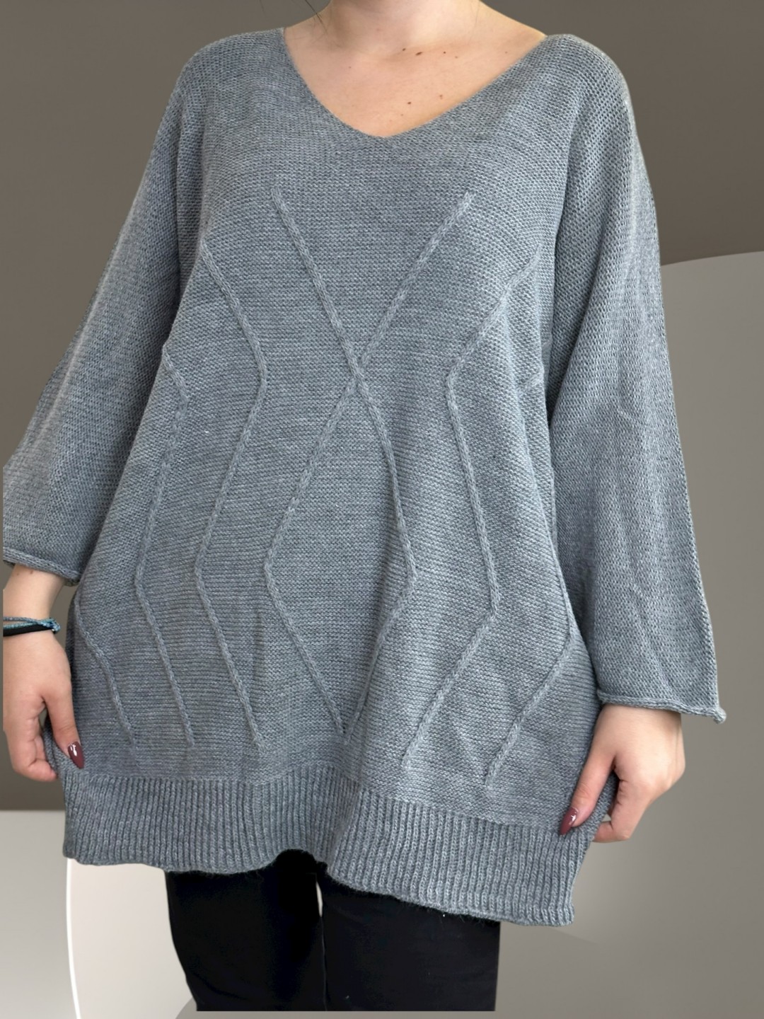 Κάντε δικό σας το cosy πλεκτό πουλόβερ plus size, που είναι ιδανικό για κάθε κουρασμένη μέρα ή για να κερδίσετε εντυπώσεις. Με 100% σύνθεση από acrilico, αυτό το πουλόβερ θα σας κρατήσει ζεστή και άνετη όλο το χειμώνα. Διαθέσιμο σε One Size.
