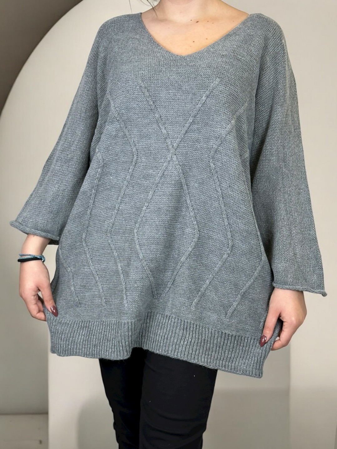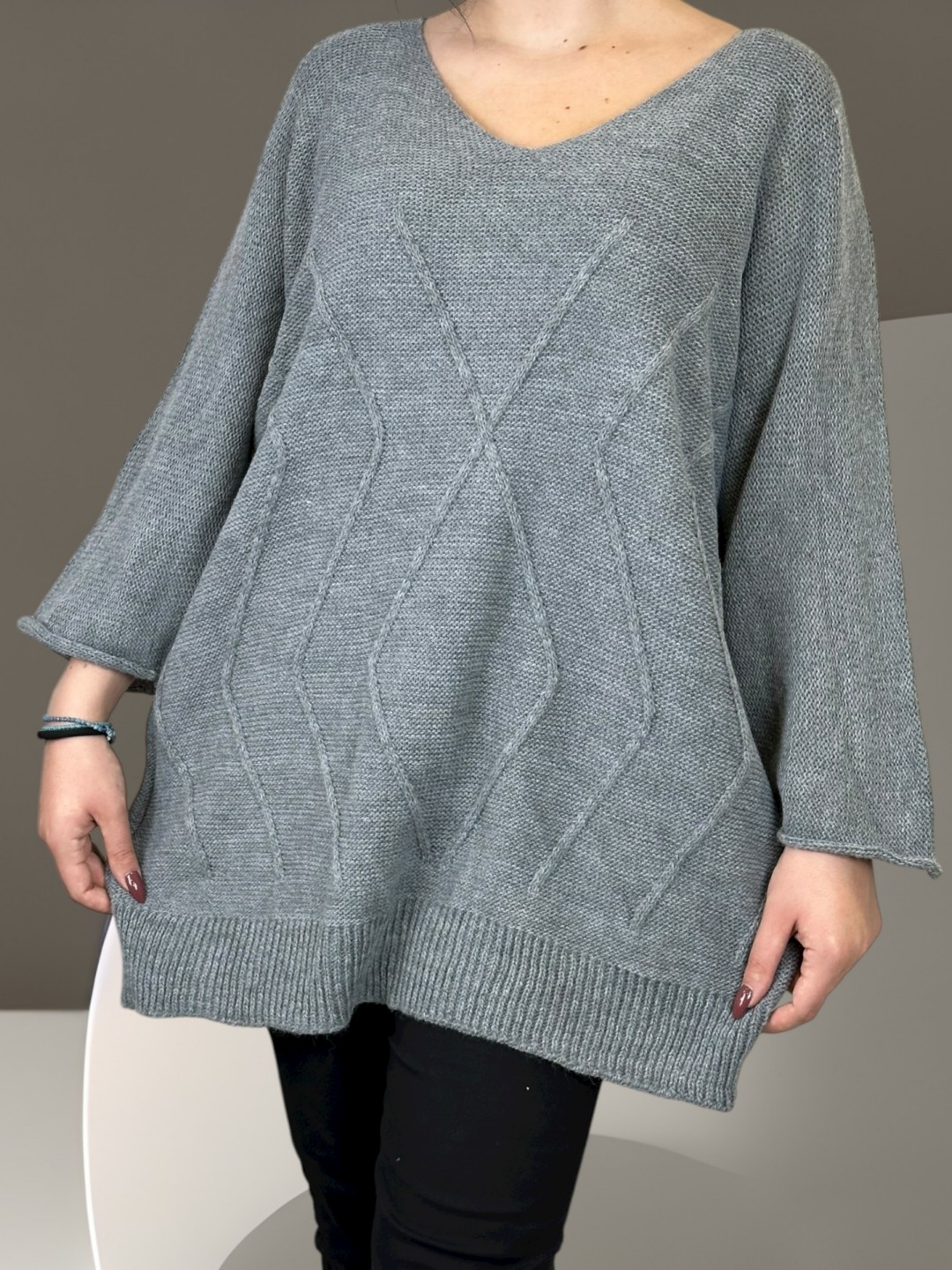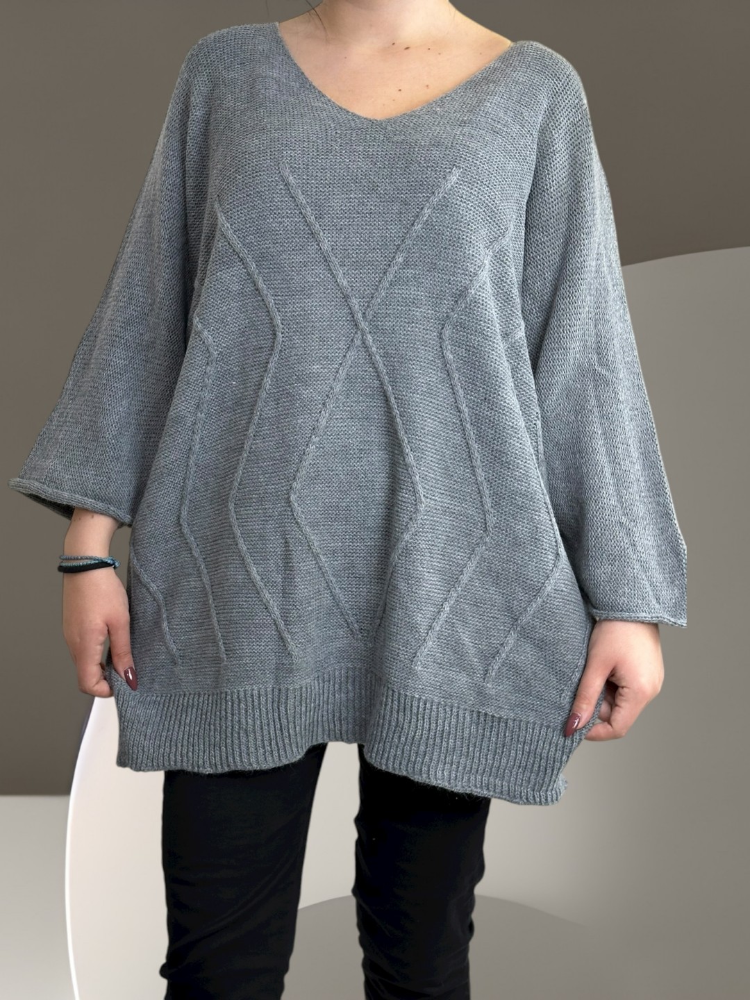 Κάντε δικό σας το cosy πλεκτό πουλόβερ plus size, που είναι ιδανικό για κάθε κουρασμένη μέρα ή για να κερδίσετε εντυπώσεις. Με 100% σύνθεση από acrilico, αυτό το πουλόβερ θα σας κρατήσει ζεστή και άνετη όλο το χειμώνα. Διαθέσιμο σε One Size.