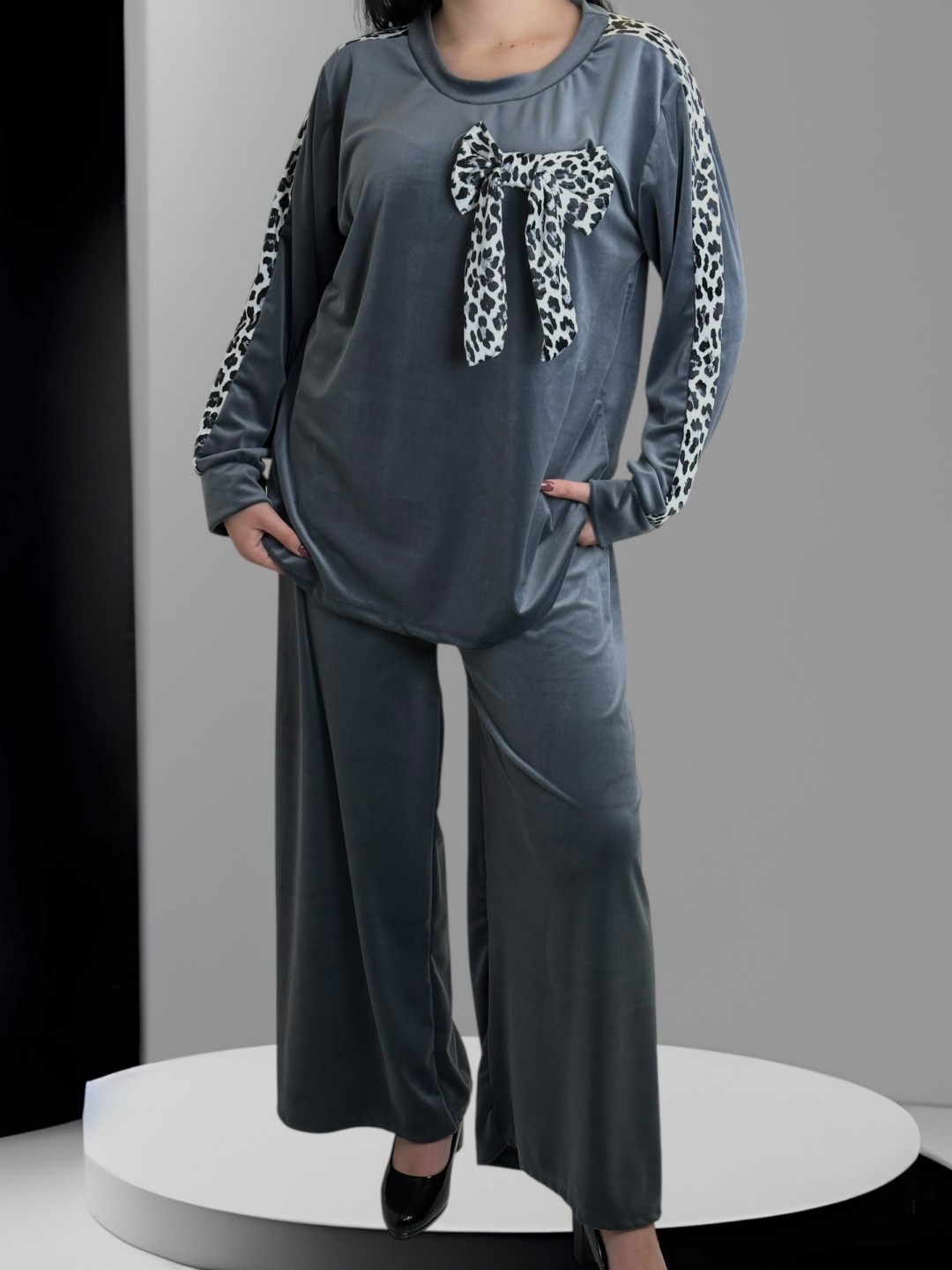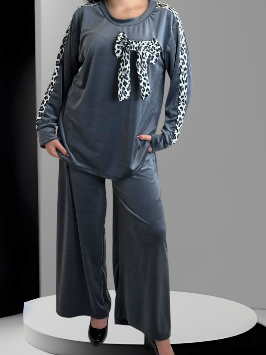 Cozy βελούδινο σετ με κορδέλα για stylish εμφανίσεις