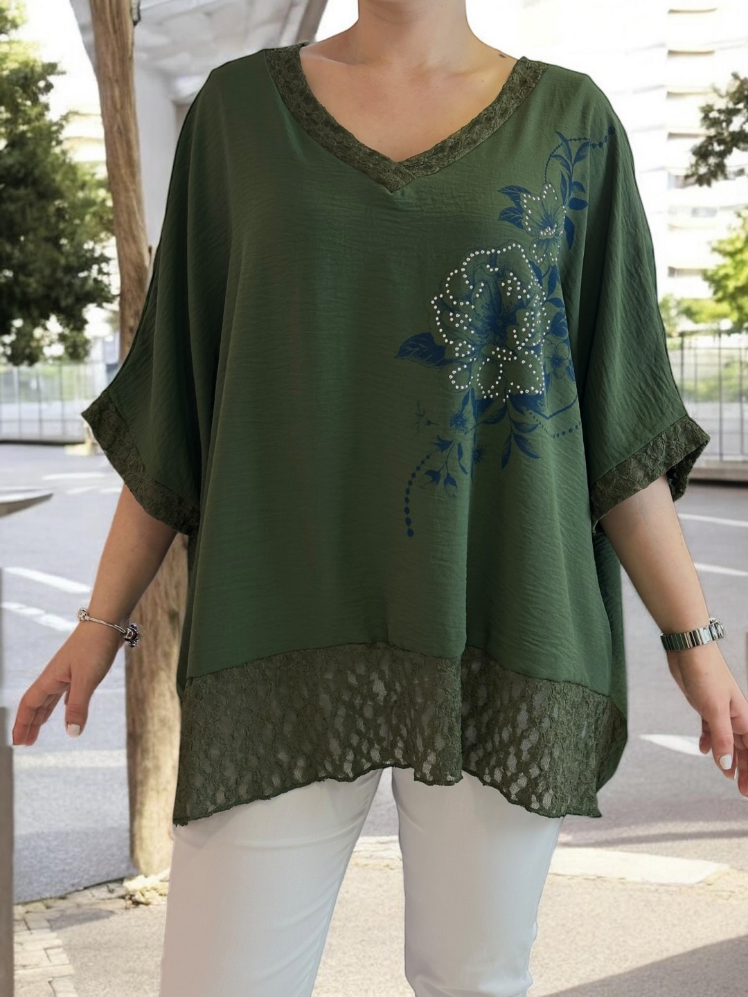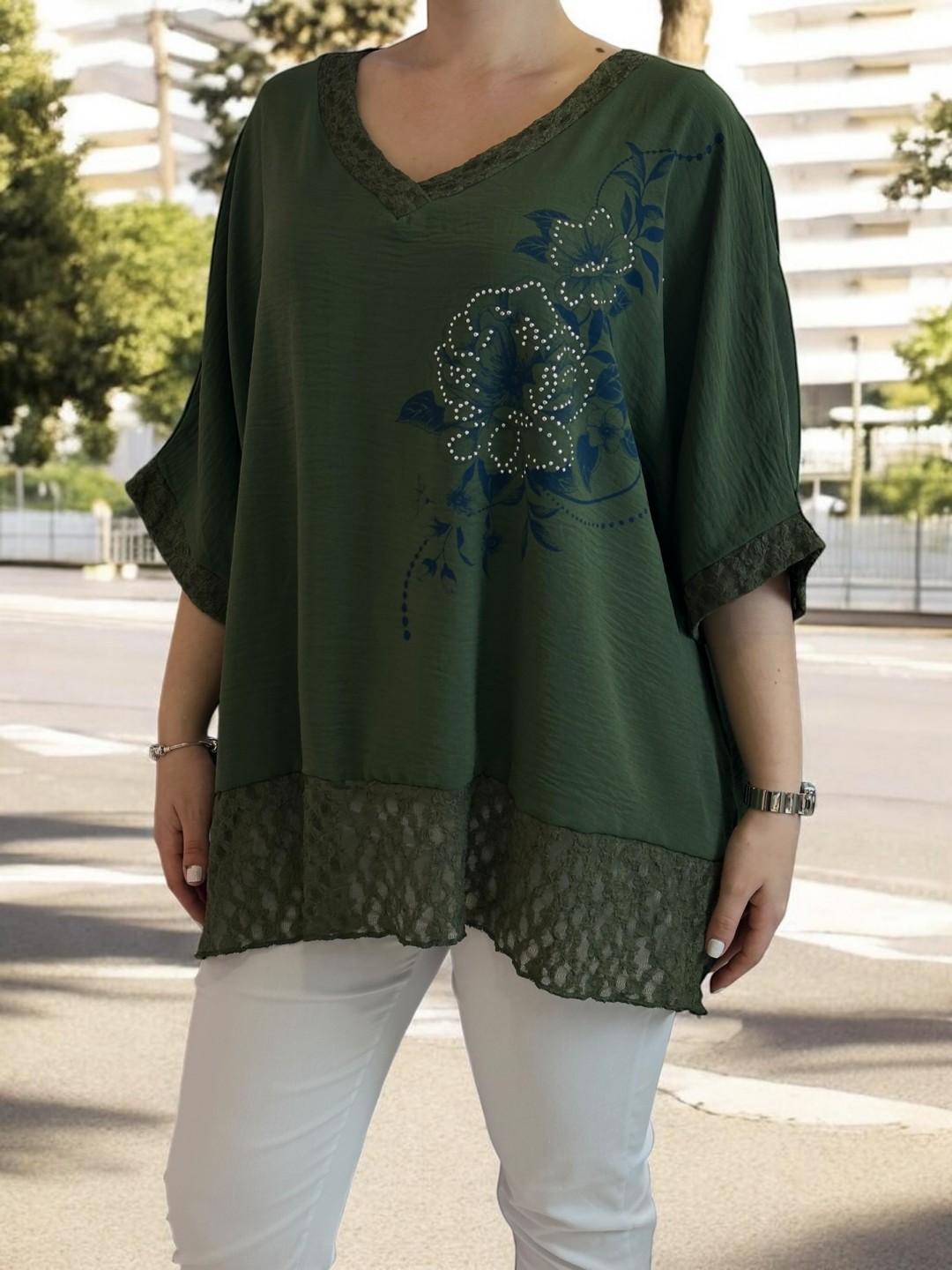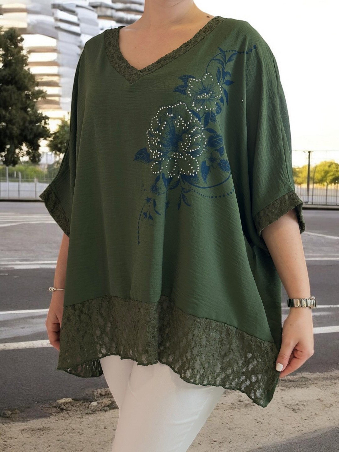 Delicate μπλούζα με floral μοτίβο και lace τελείωμα