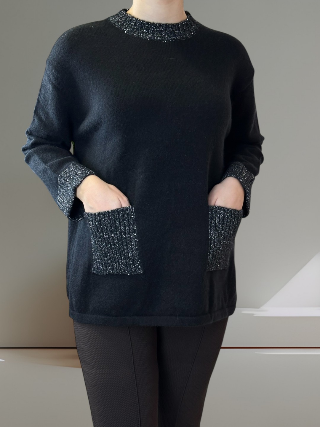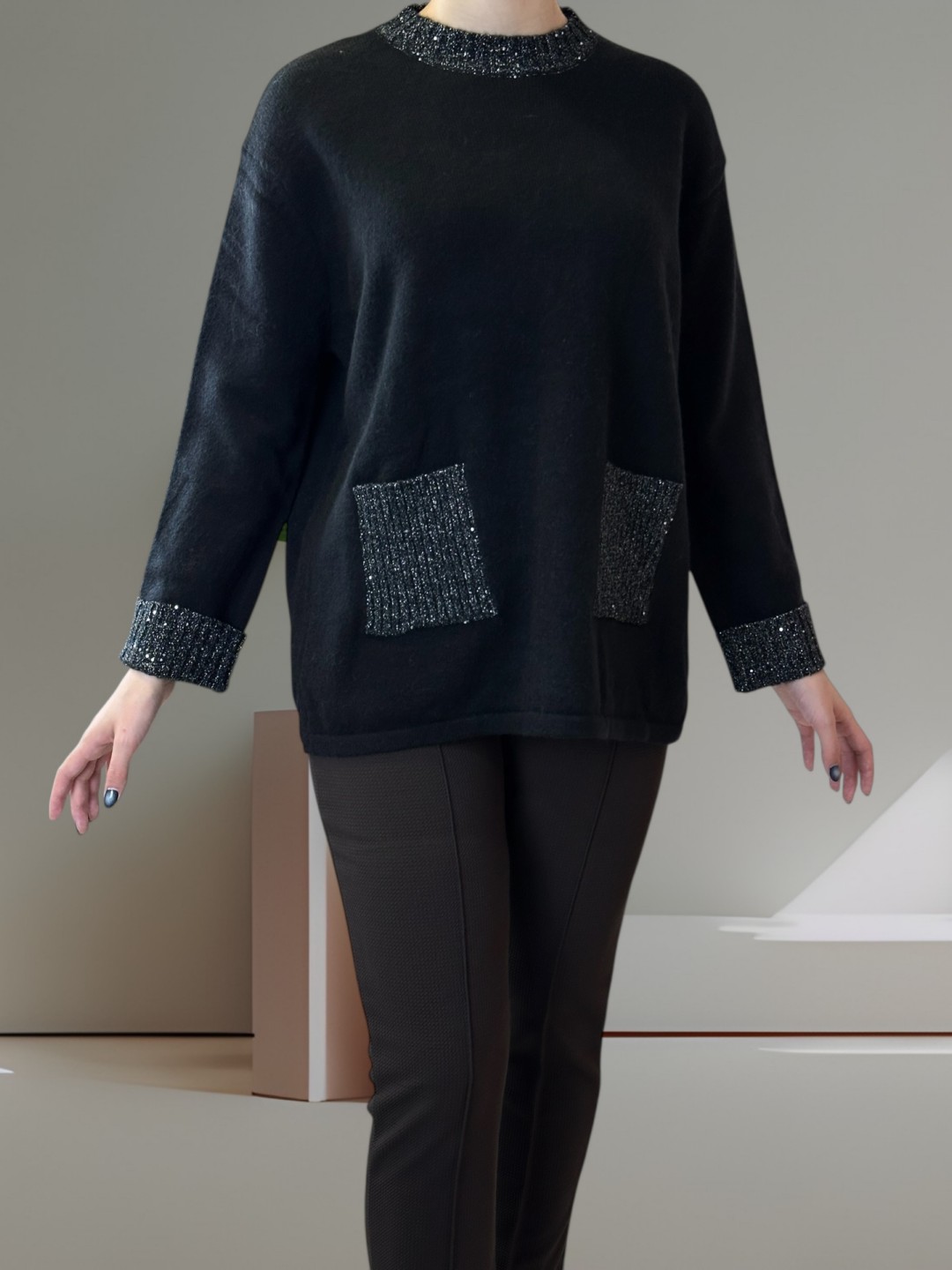 Εντυπωσίασε με την Deluxe Μπλούζα Plus Size – με λαμπερές ασημένιες λεπτομέρειες που απογειώνουν το στυλ σου! Διαθέτει κομψές τσέπες και απαλό ύφασμα. One size – ταιριάζει σε όλες!