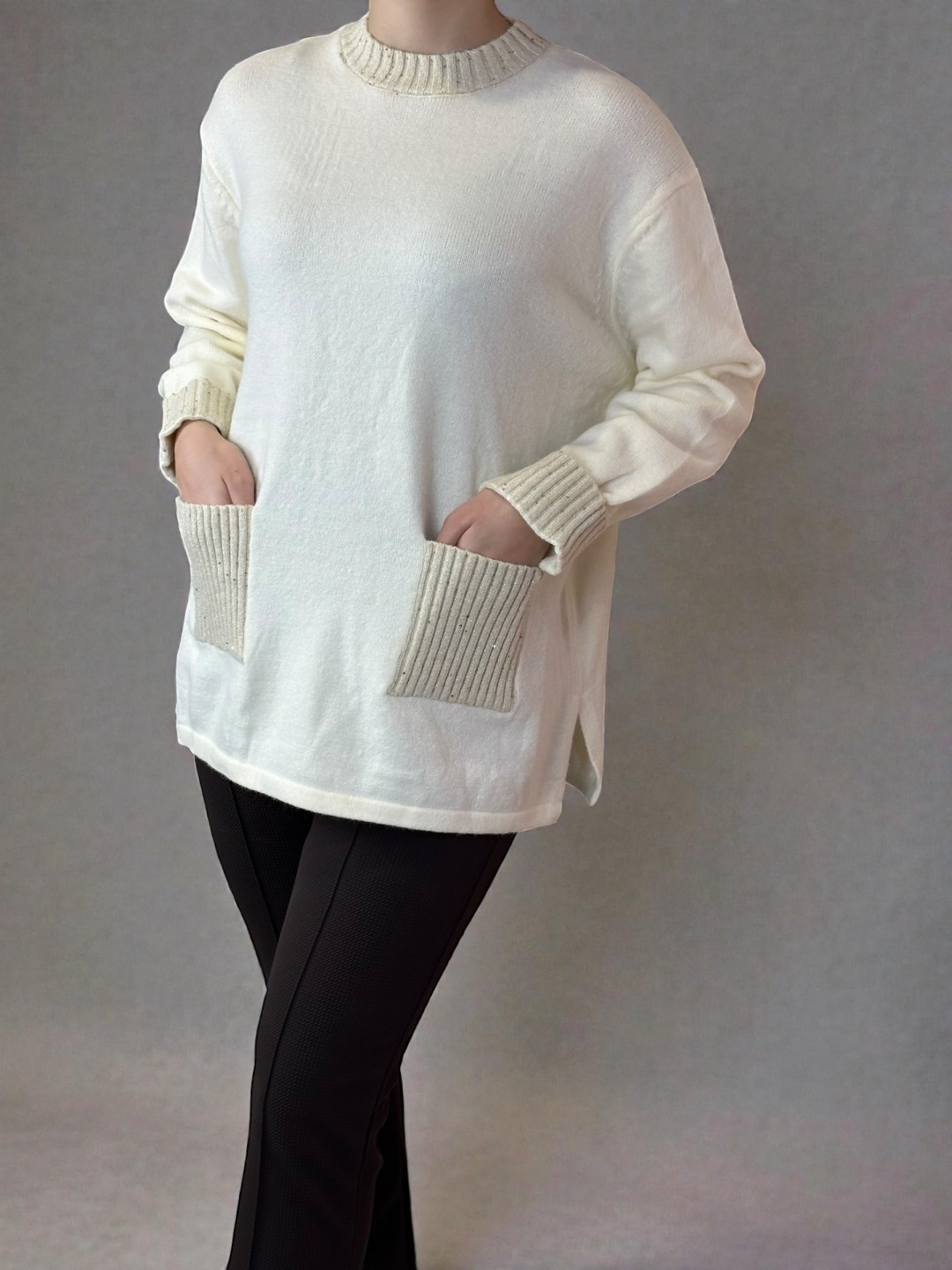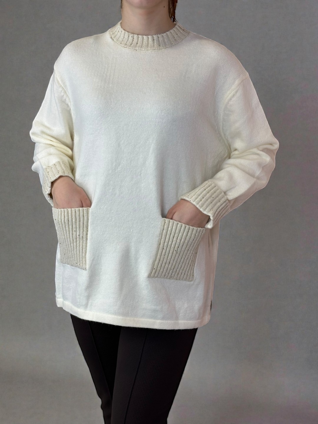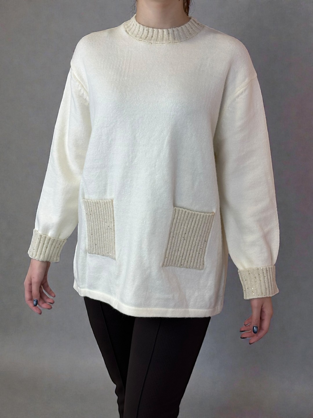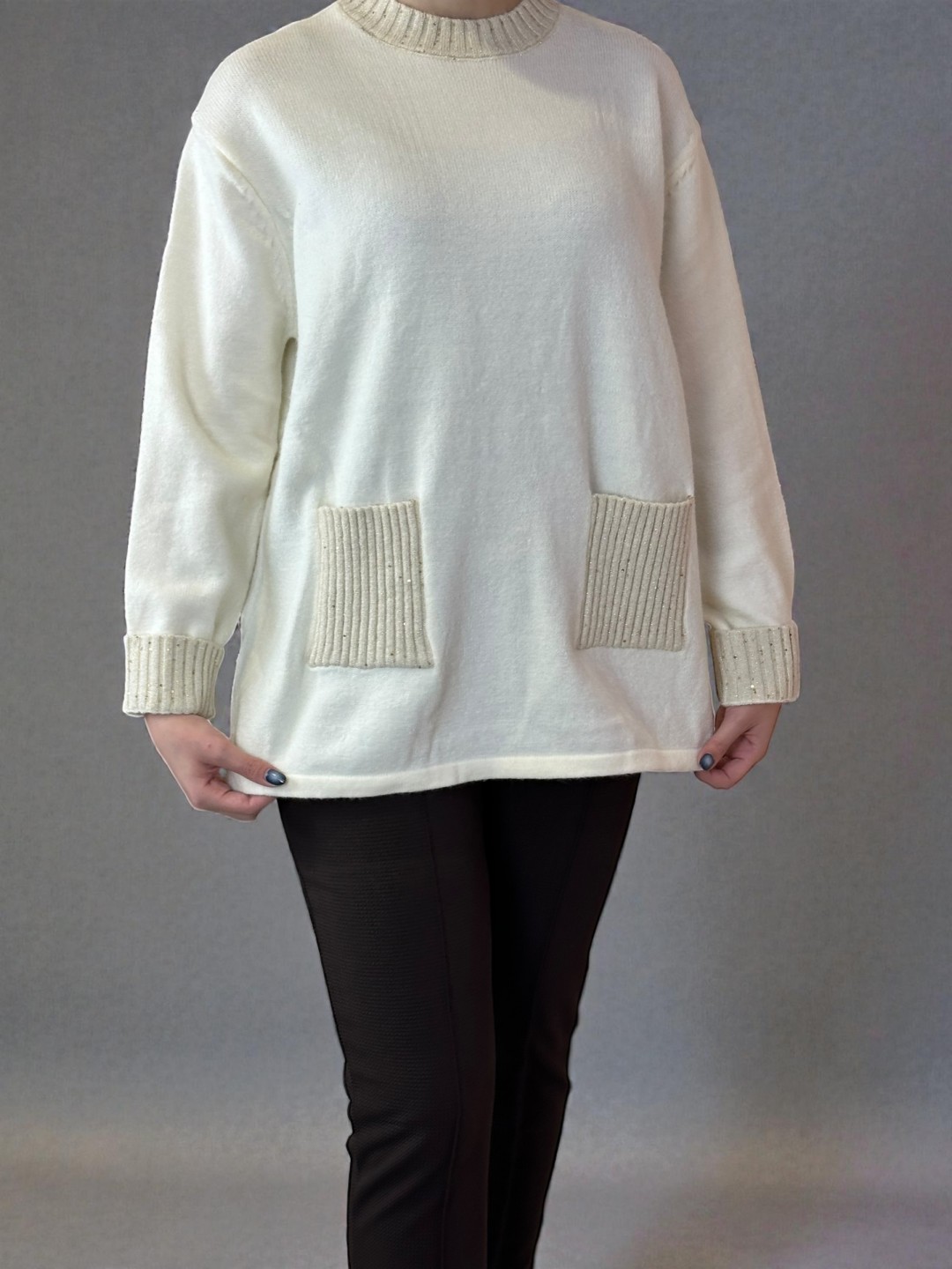 Αναβάθμισε την γκαρνταρόμπα σου με αυτήν τη διαχρονική Deluxe μπλούζα plus size. Με κομψές ασημένιες λεπτομέρειες και πρακτικές τσέπες, χαρίζει στιλ και άνεση. Διαθέσιμο σε μέγεθος One size, προσαρμόζεται εύκολα σε κάθε σιλουέτα.