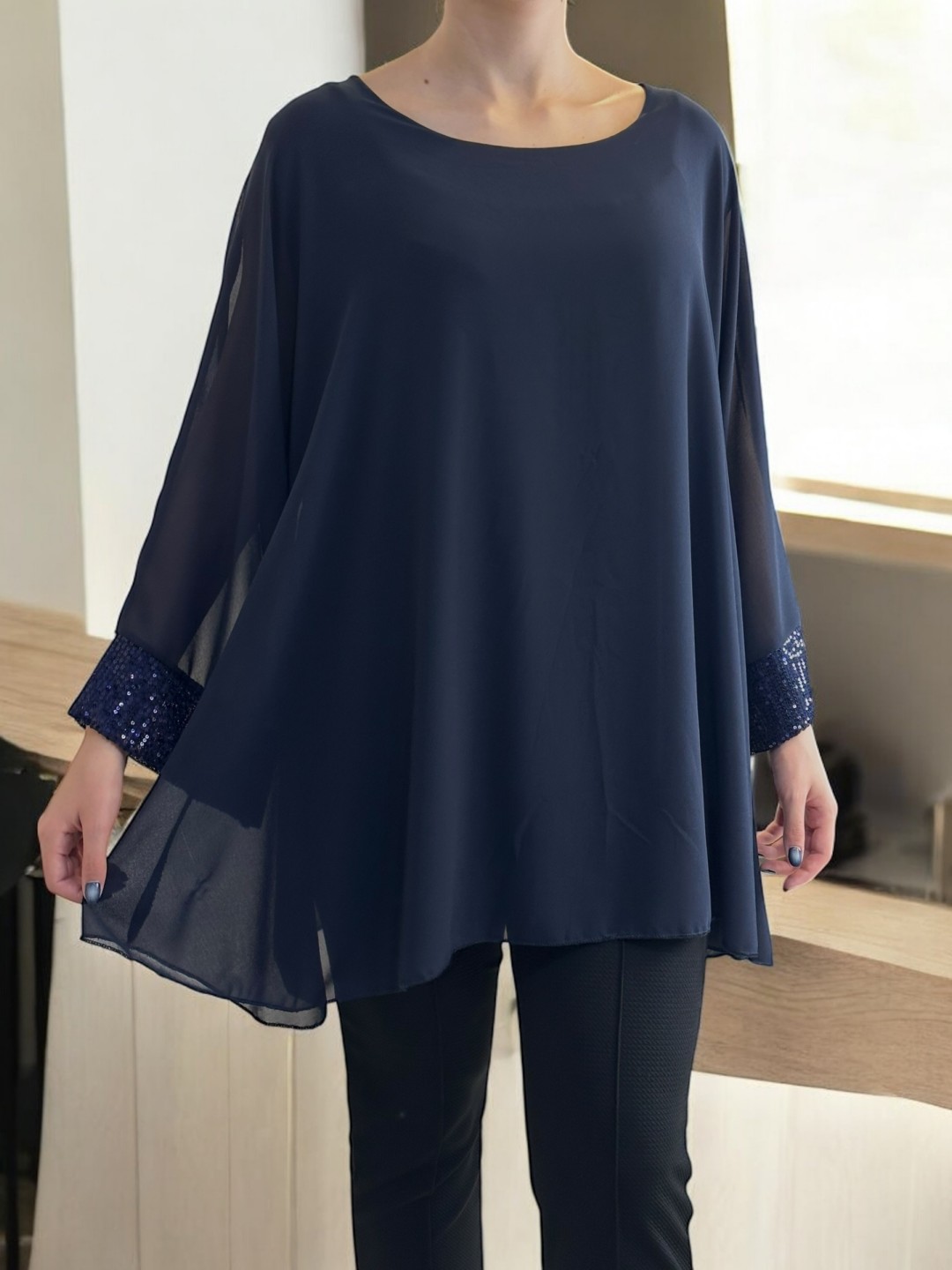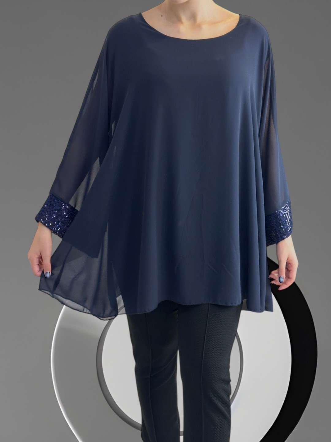 Elegant Μπλούζα από Μουσελίνα με Λαμπερές Παγιέτες