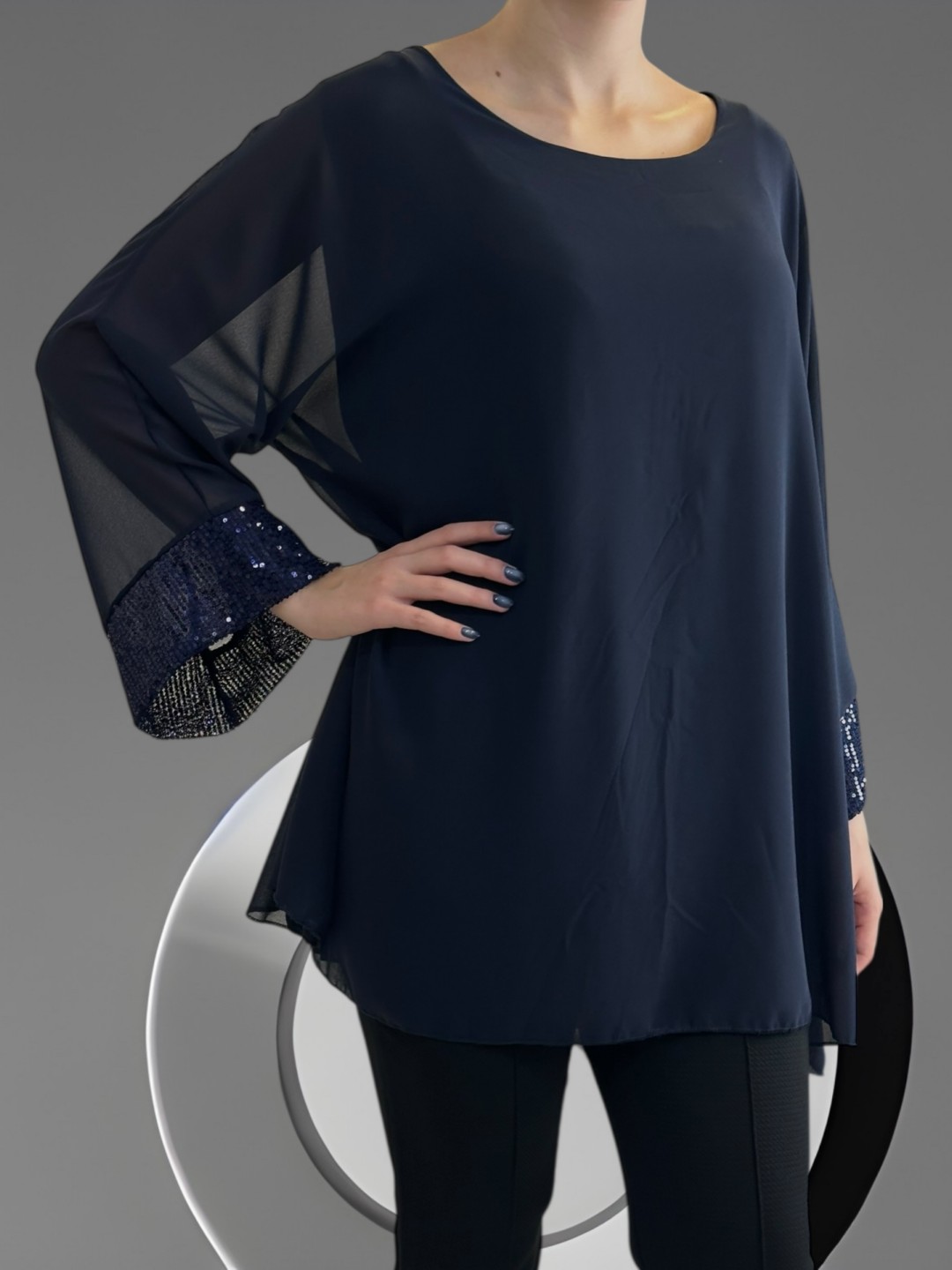 Elegant Μπλούζα από Μουσελίνα με Λαμπερές Παγιέτες