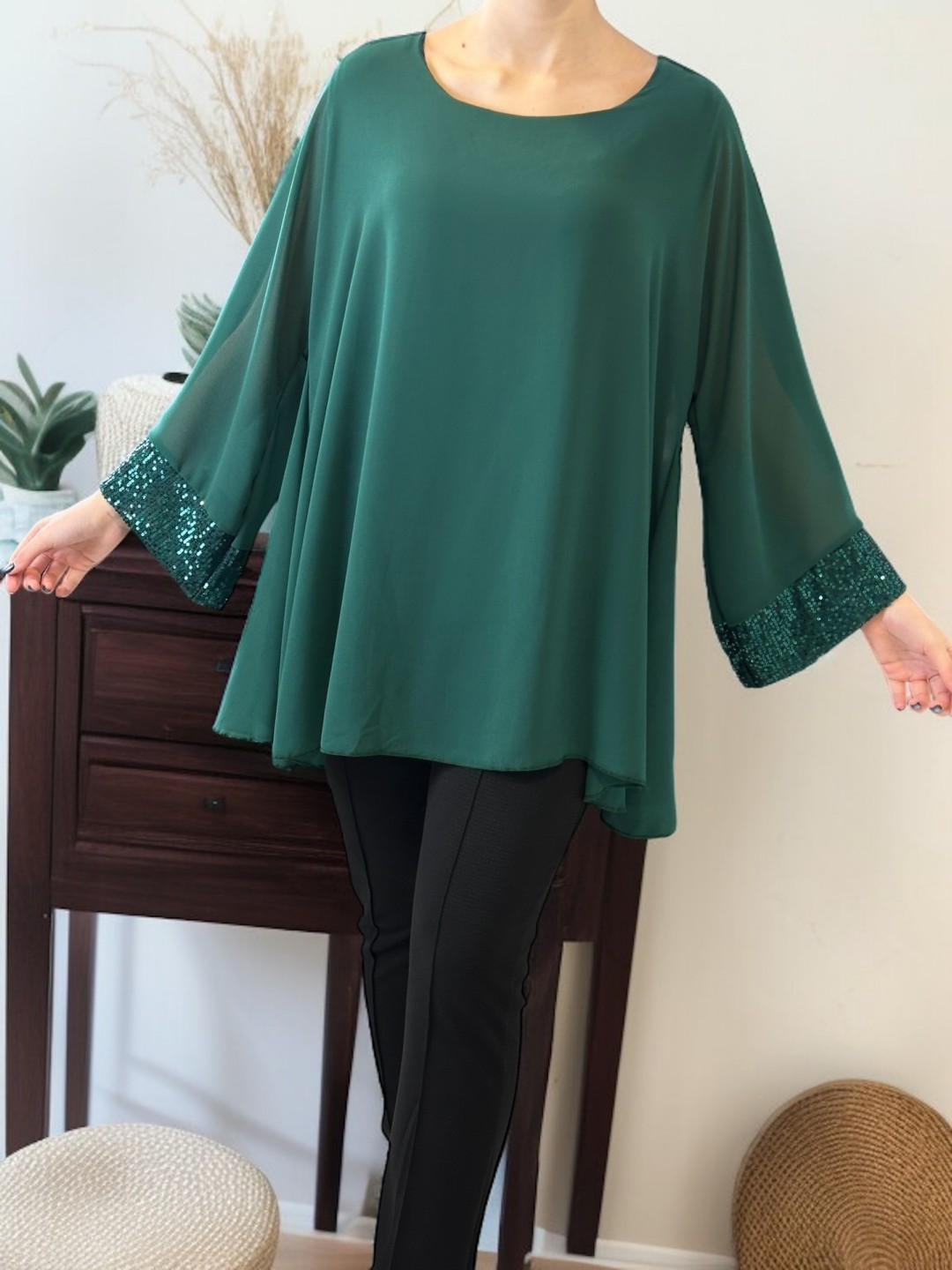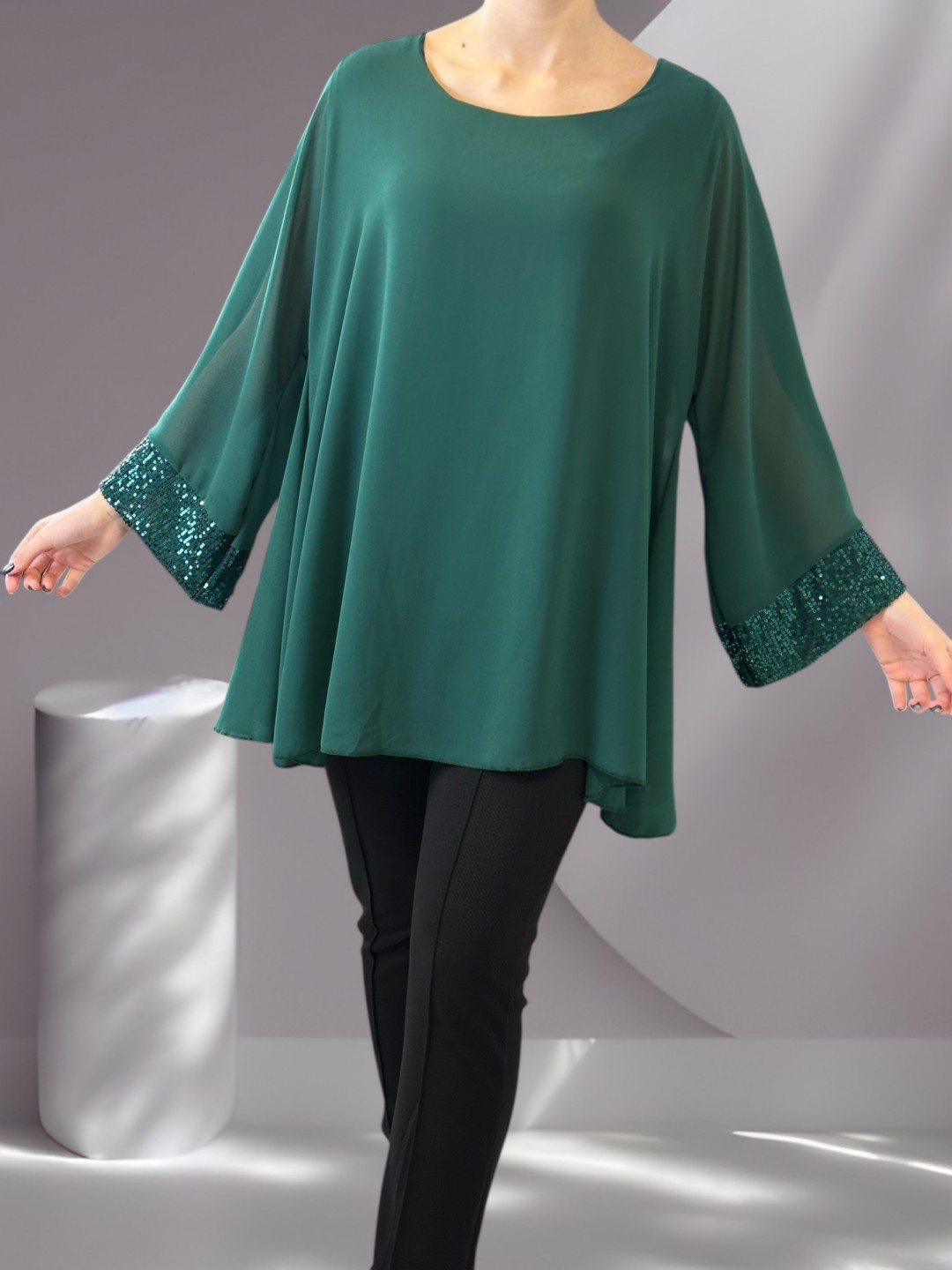 Elegant Μπλούζα από Μουσελίνα με Λαμπερές Παγιέτες