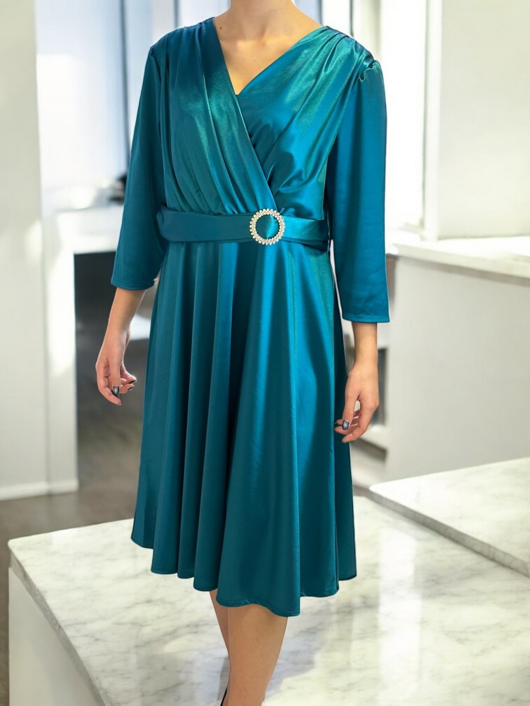 Elegant Κρουαζέ Αμπιγιέ Φόρεμα με Πλαϊνή Λάμψη Στρας