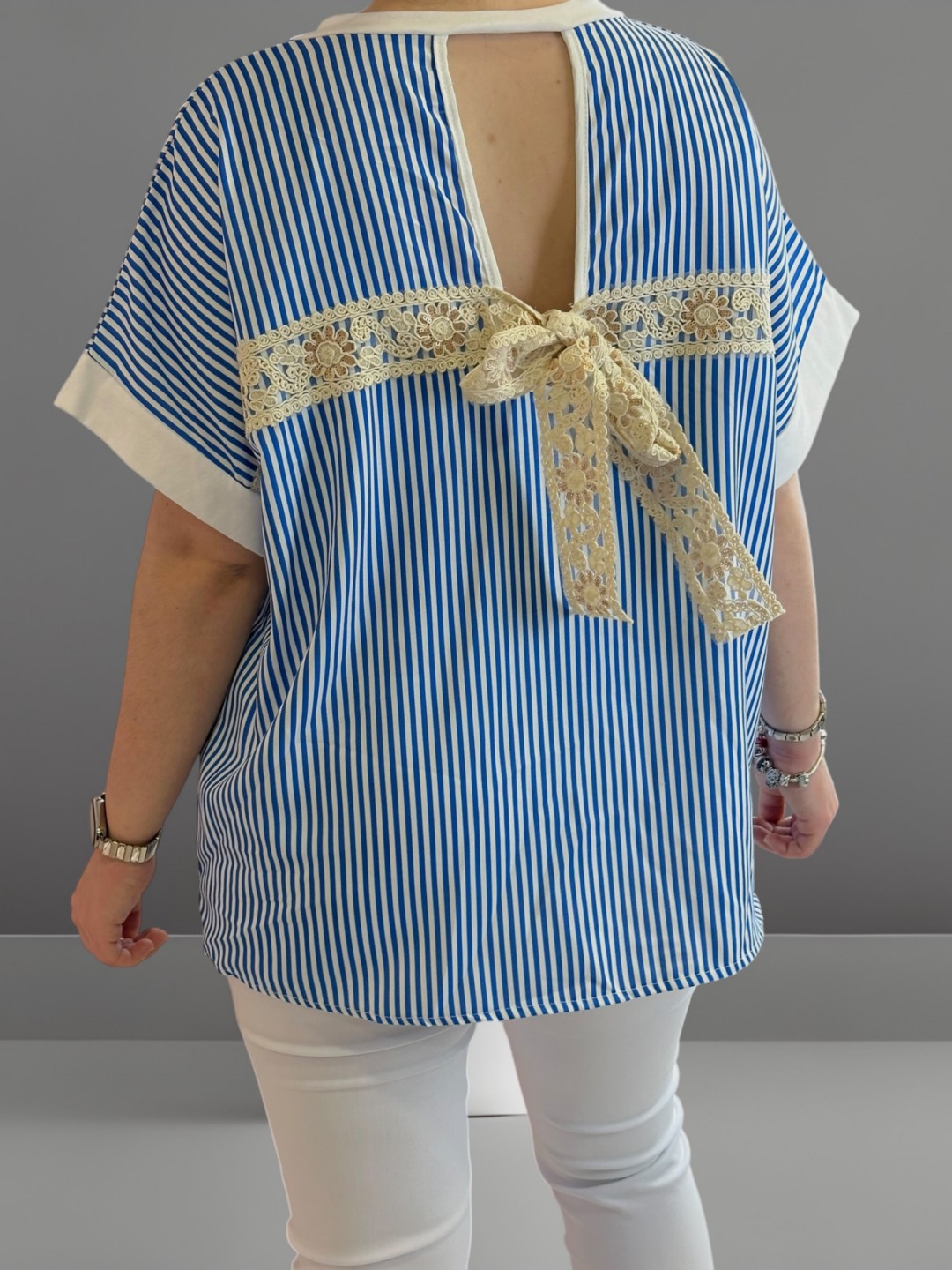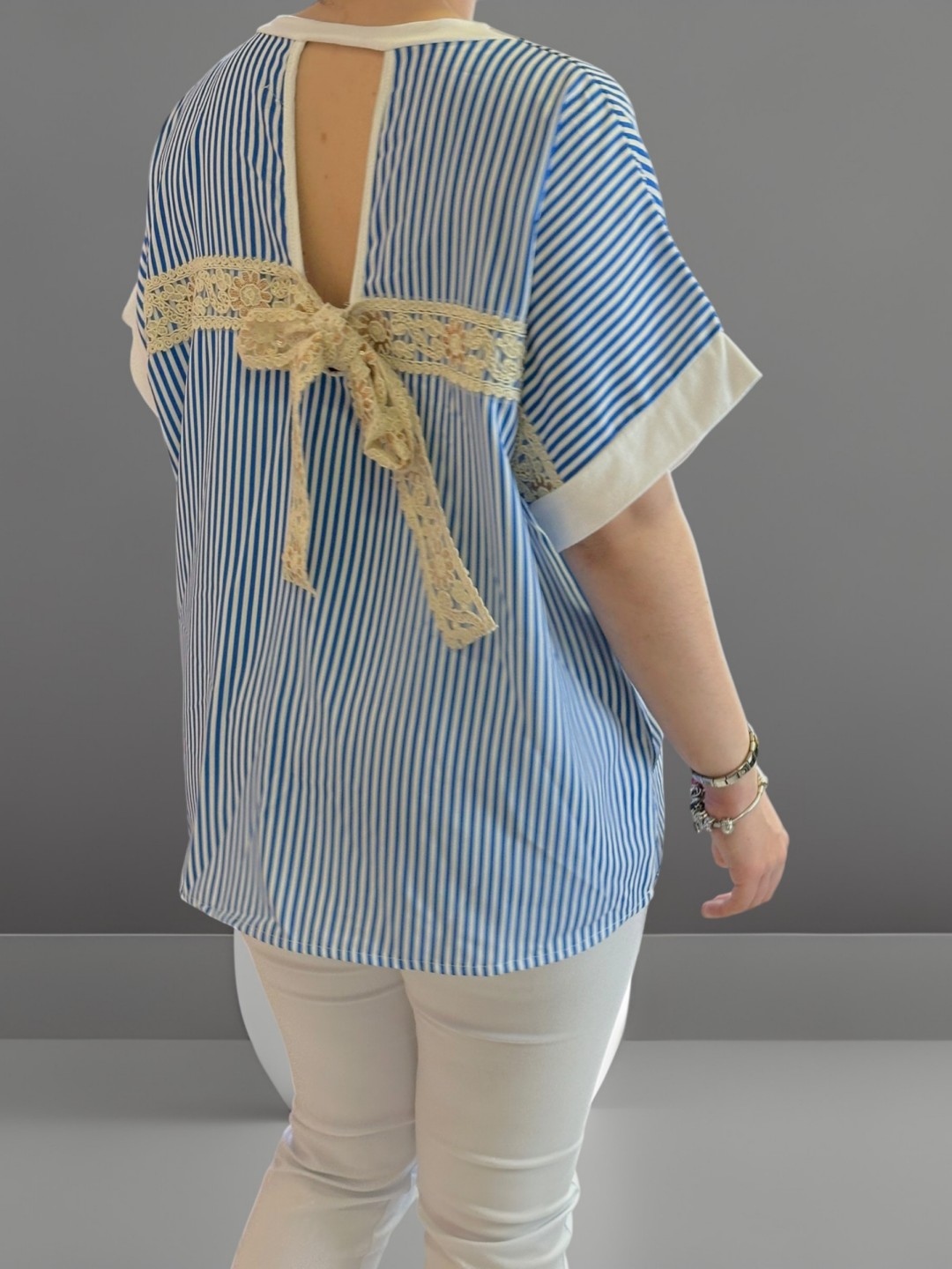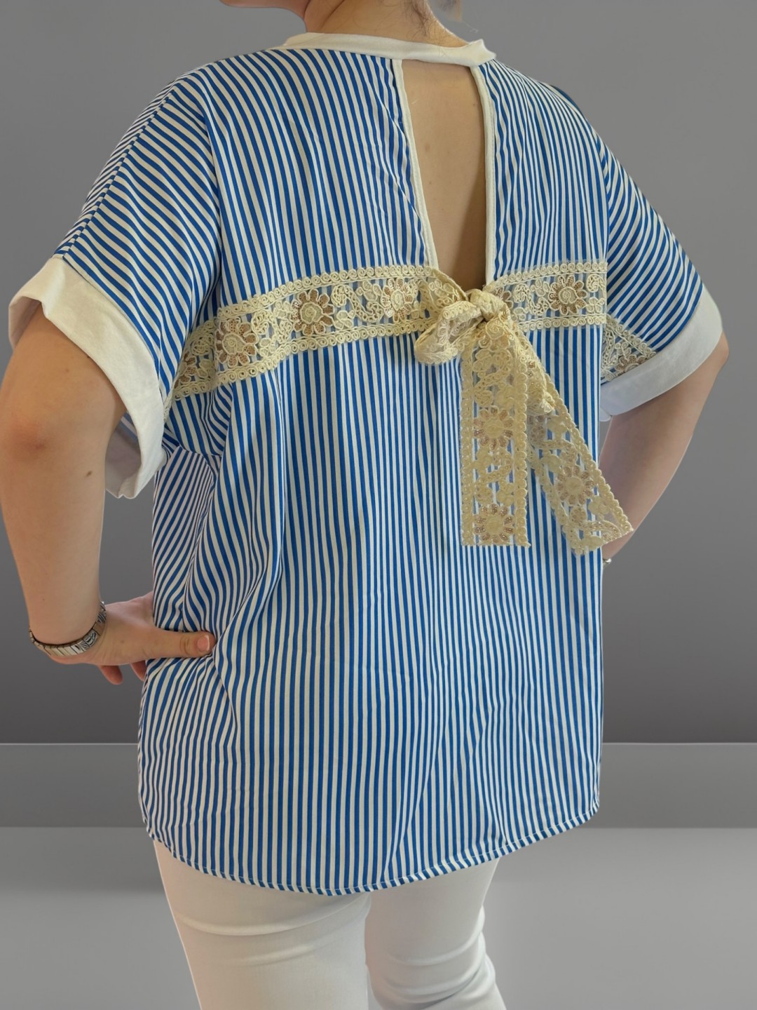 Εlegant ριγέ μπλούζα με φίνα κορδέλα στην πλάτη